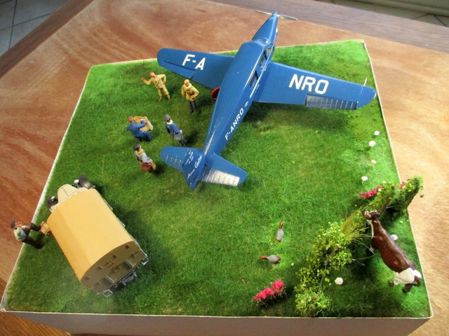La construction de la boite DORA WINGS, très belle boite avec un dessin évocateur. Cette maquette 3 D en plastique injecté est très belle La notice sous forme de petit carnet est bien faite. Quelques jonctions sont perfectibles . La scénette du diorama se déroule à ROUEN BOOS ;pour l échange de courrier . Le petit camion CITROEN avec la publicité de la radio qui équipe les SIMOUN AIR BLEU . La vache NORMANDE et les sarcelles sont là pour rappeler la région .