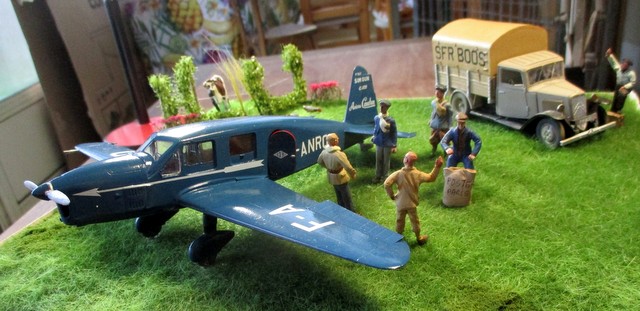 The construction of the box DORA WINGS, very nice box with an evocative design. This 3 D model in injected plastic is very beautiful The manual in the form of a small notebook is well made. Some junctions are perfectible . The stage of the diorama takes place in ROUEN BOOS ;for the exchange of mail . The small CITROEN truck with radio advertising that equips the SIMOUN AIR BLEU . The NORMANDE cow and teals are there to remind the region .