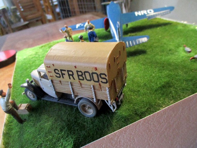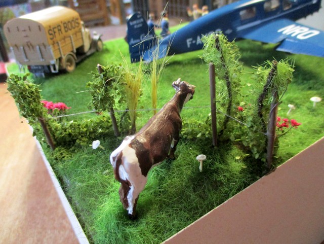 The construction of the box DORA WINGS, very nice box with an evocative design. This 3 D model in injected plastic is very beautiful The manual in the form of a small notebook is well made. Some junctions are perfectible . The stage of the diorama takes place in ROUEN BOOS ;for the exchange of mail . The small CITROEN truck with radio advertising that equips the SIMOUN AIR BLEU . The NORMANDE cow and teals are there to remind the region .
