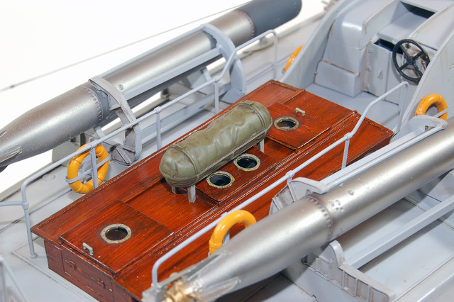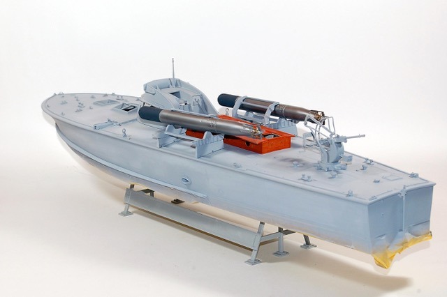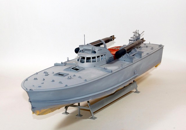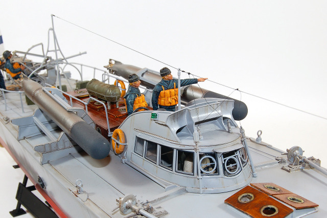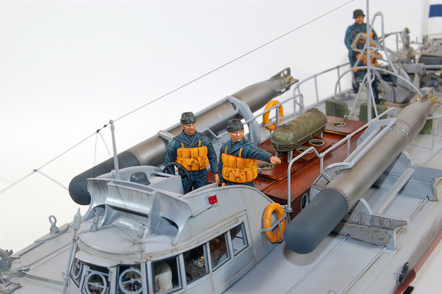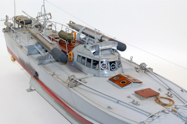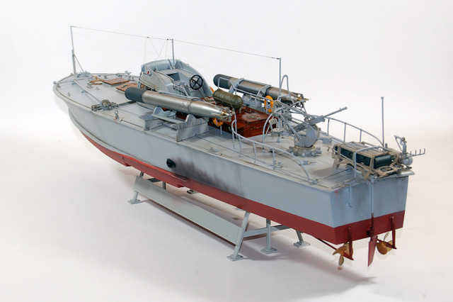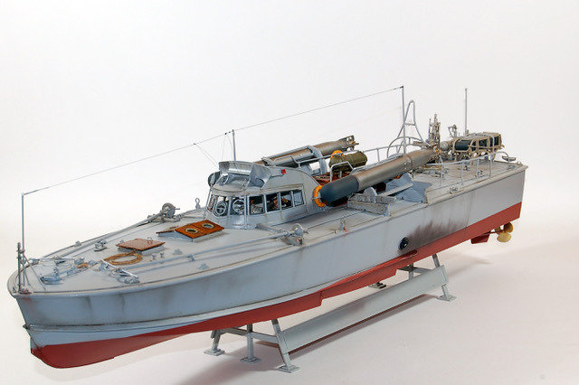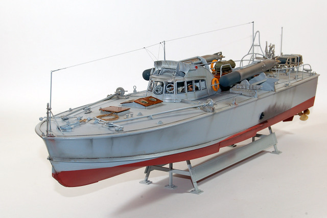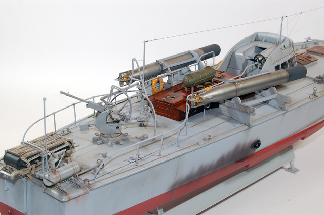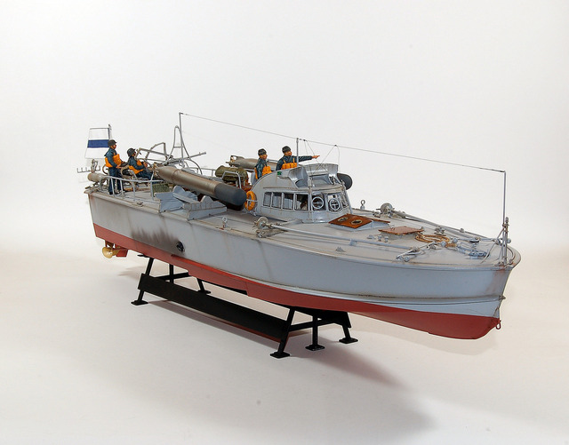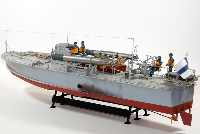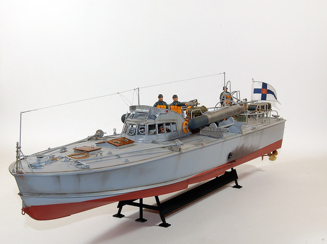 C’est une maquette que j’avais réalisé pour mon ami Finlandais. Les Italiens avaient transporté quelques vedettes lance -torpilles MAS jusqu’au lac de Ladoga pour y intercepter le trafique maritime qui ravitaillait Leningrad. Lorsque les Italiens s’en allérent ils laissérent ces vedettes à la Marine Finlandaise. Les 2A différent de la maquette d’Italeri par les berceaux des torpilles que j’ai réalisé en scratch. L’équipage est équipé à « l’Allemande » mais il s’agit en fait d’équipement de la 1ere Guerre Mondiale achetés par la Finlande, ces vedettes restérent en service jusqu’au milieu des années cinquante.