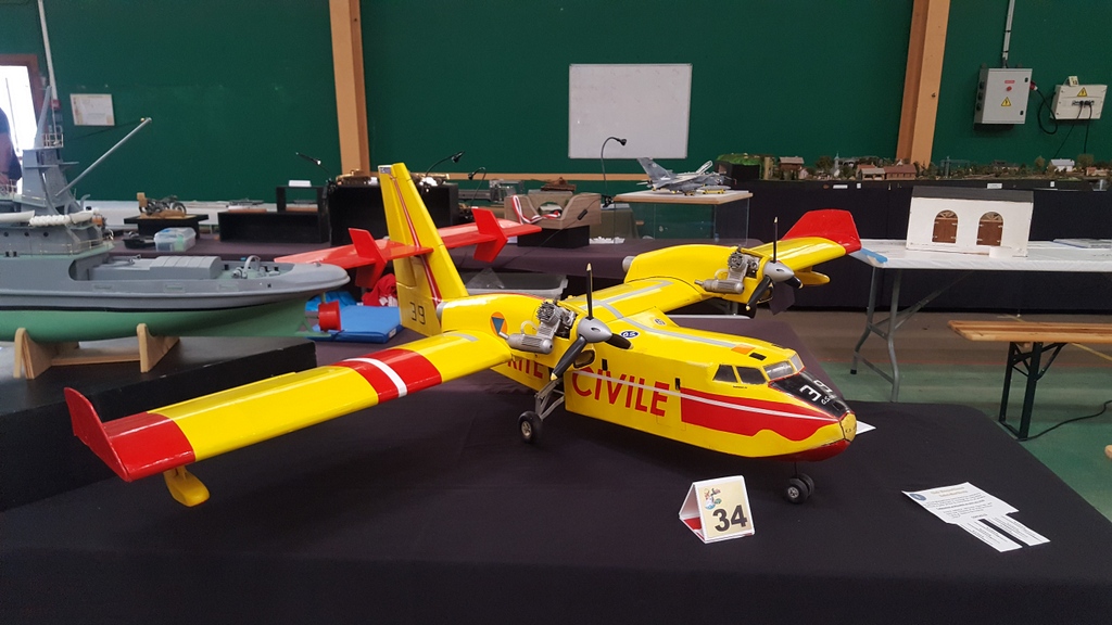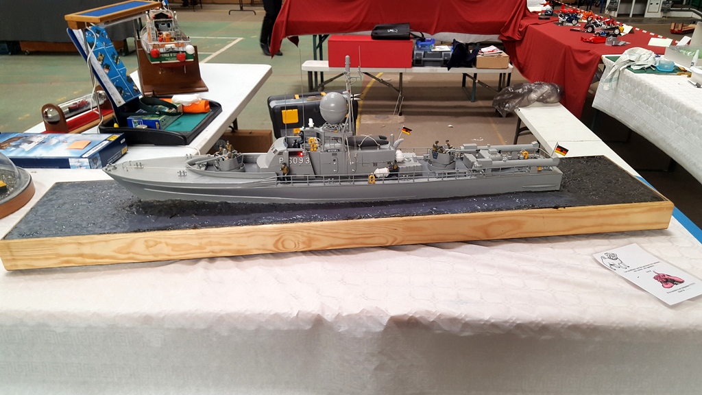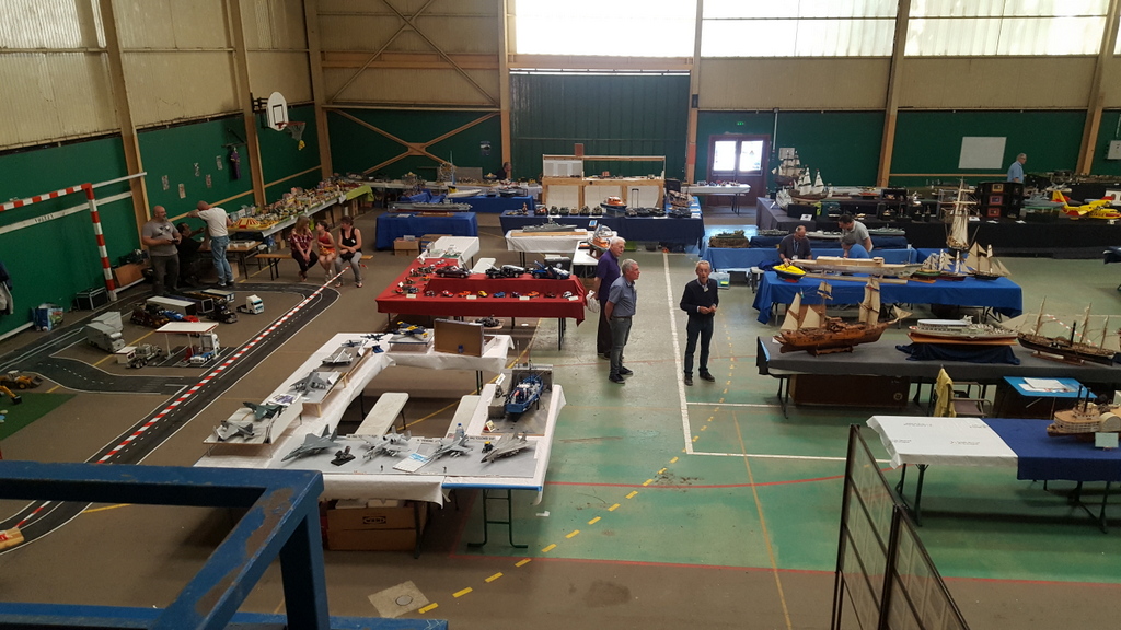 Une salle de taille semblable à la notre, fort bien garnie. Toutes les disciplines maquettistes et modélistes y étaient présentées, (bateaux statiques, RC, avions, blindés, véhicules militaires et civils, figurines, etc…).