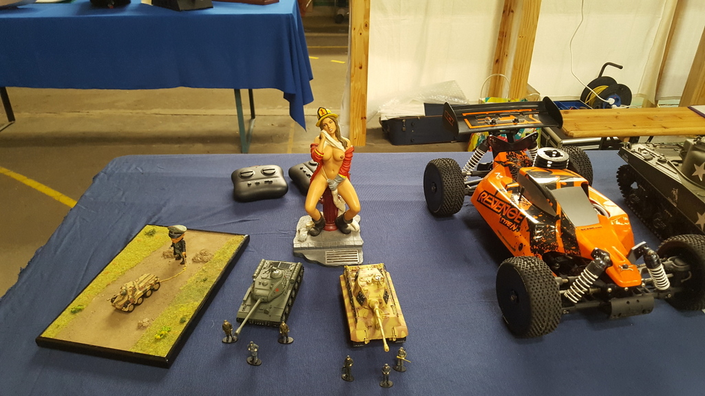 Samedi après midi des plus calmes entre visite du salon et admirer les différentes démonstrations de camions et de chars RC. Par contre, la faute peut être d’une météo plus qu’estivale: très peu de visiteurs. 17 heures, retour des Campistes en Presqu’île. Par contre, quartier libre quant à l’heure d’arrivée du dimanche: un dix heures bien matinal pour Pierrot.