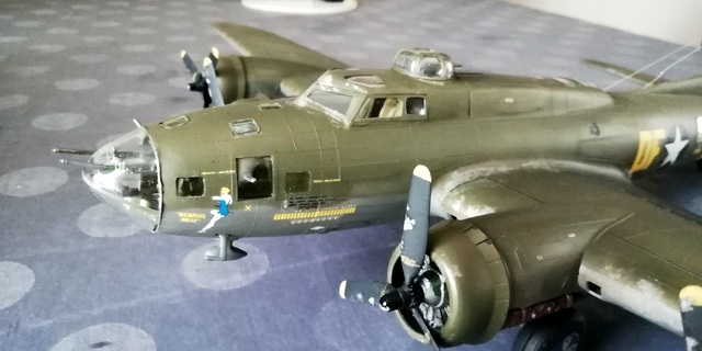 Beaucoup à dire sur la maquette. En effet, elle date de 1975! Sortie chez Monogram, et de très très bon niveau pour l’époque! On la ressortira sous différents boîtage, Monogram, Revell-Monogram, Pro-Modeller, Revell dès 1978, puis en 1990 et enfin en 2008, toujours sous les couleurs de la Memphis Belle. Hasegawa l’a aussi sortie en 2008.