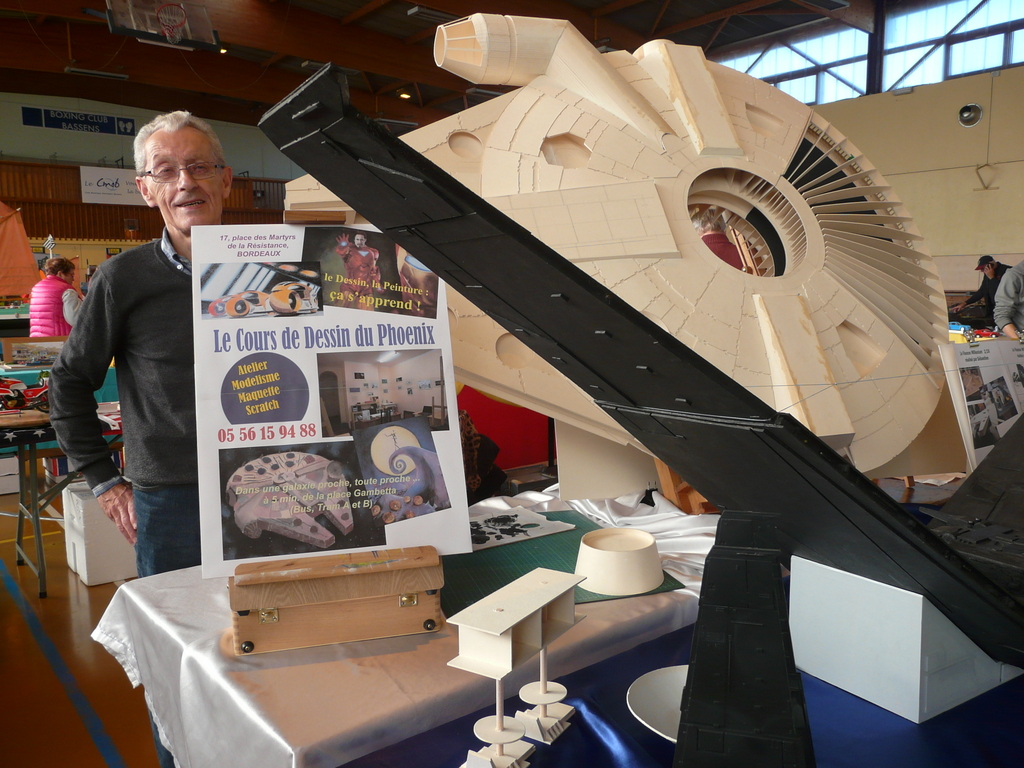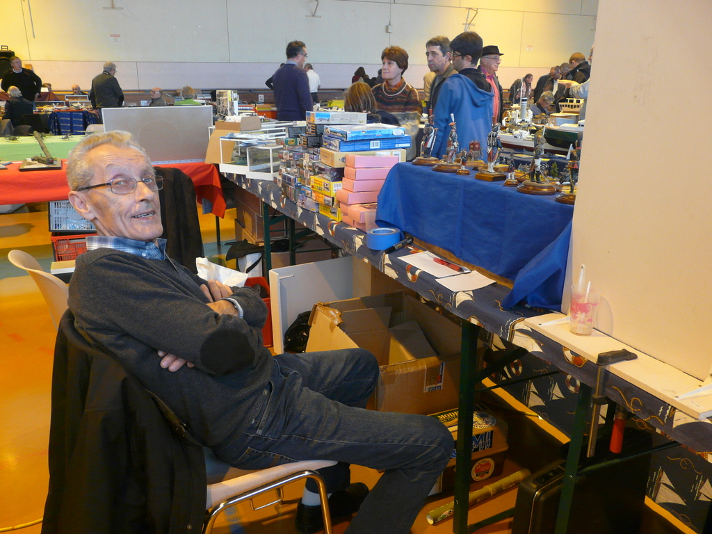 Pas marrant du tout de décharger un véhicule sous la pluie, et quelle pluie ! Stand rapidement installé : Bateaux sous vitrines, un petit coin figurines et la place restante pour la vente de nos « rossignols » comme les appelle Alain.( Maquettes, petit matériel, etc….) Changement de décors cette année pour nos amis de Bassens : le traditionnel boulodrome laissait place à un gymnase de fort belle taille ( pas loin des 1200m 2) . Pas un mètre linéaire de libre. Complet de chez complet ! Direction notre hôtel restaurant privé, rien que pour CAMPI !cuisine à l’indienne au menu, que du bonheur ! Ne cherchez pas l’adresse, elle est des plus confidentielles !