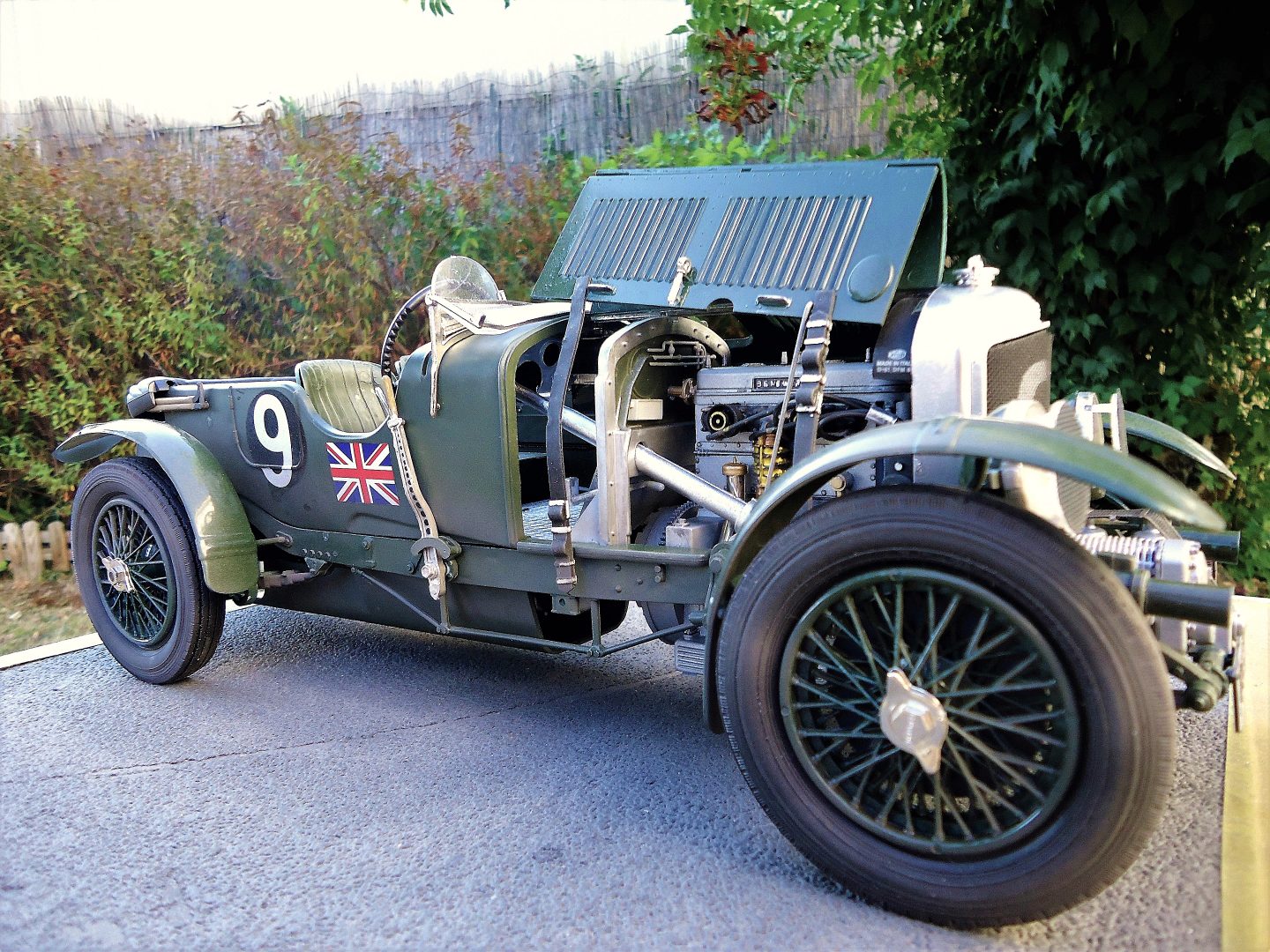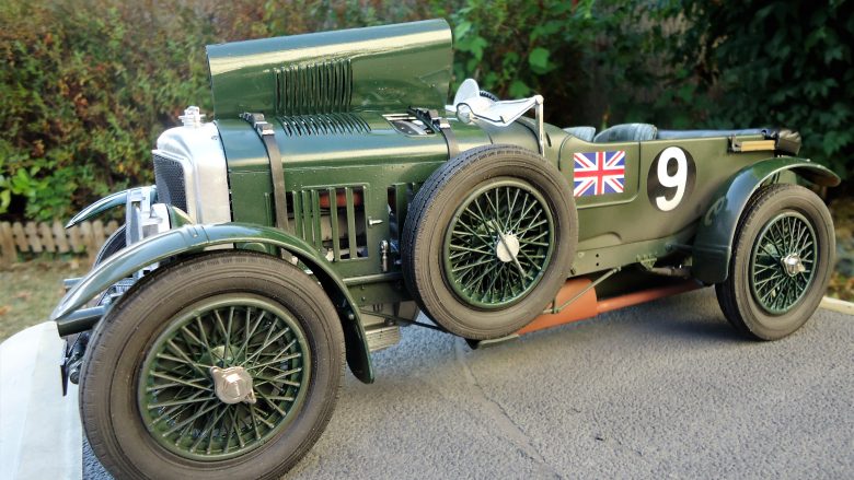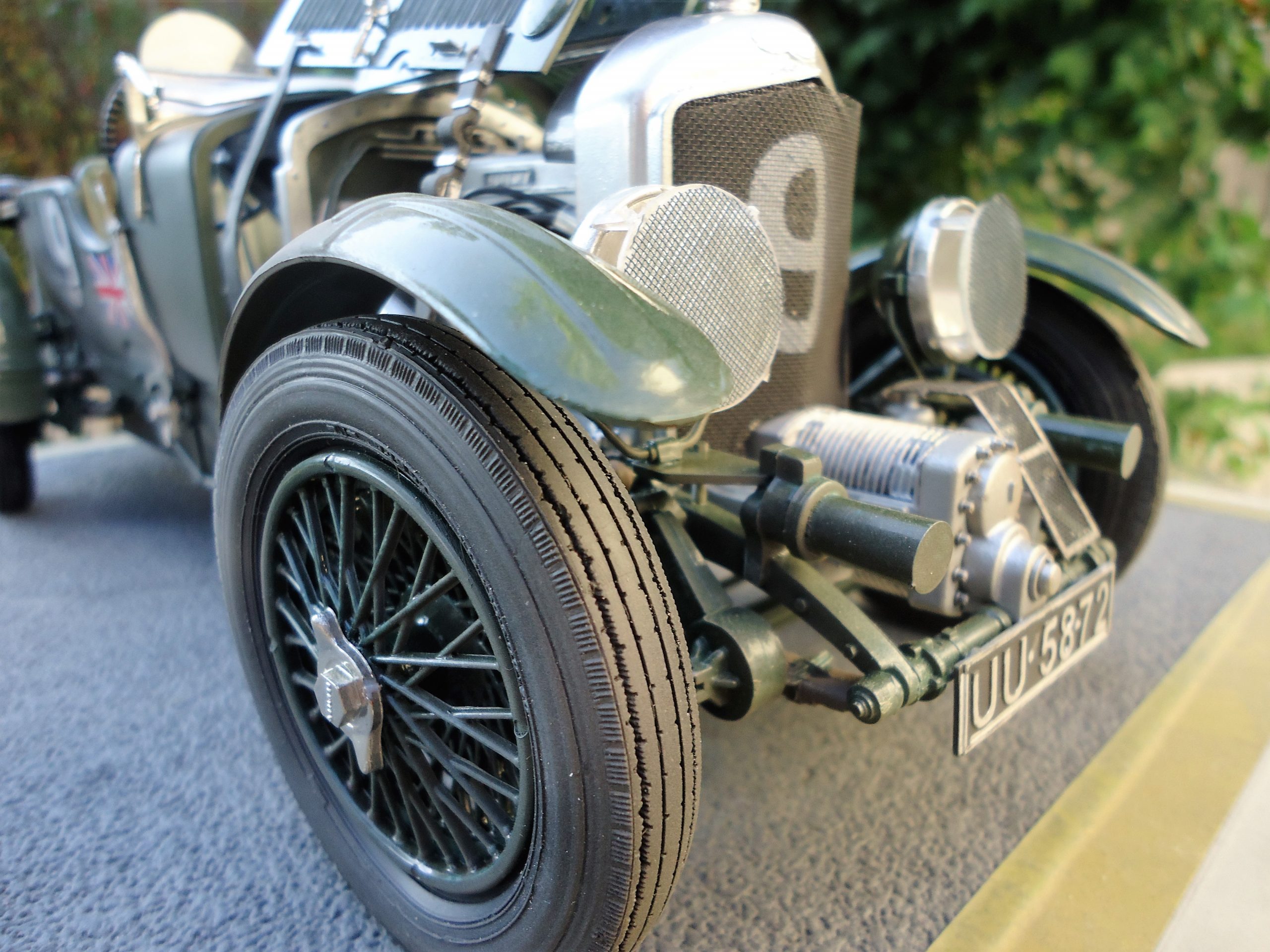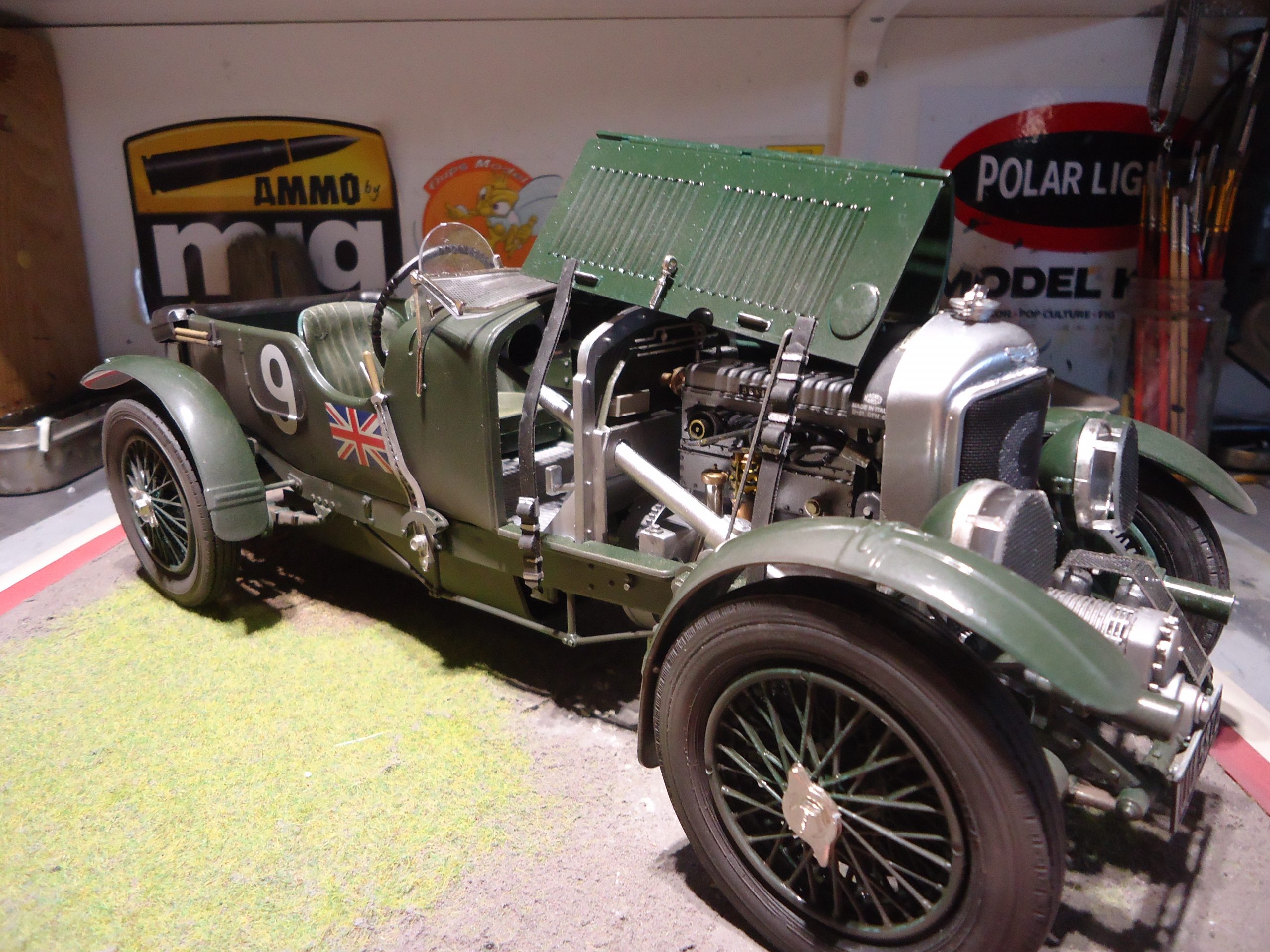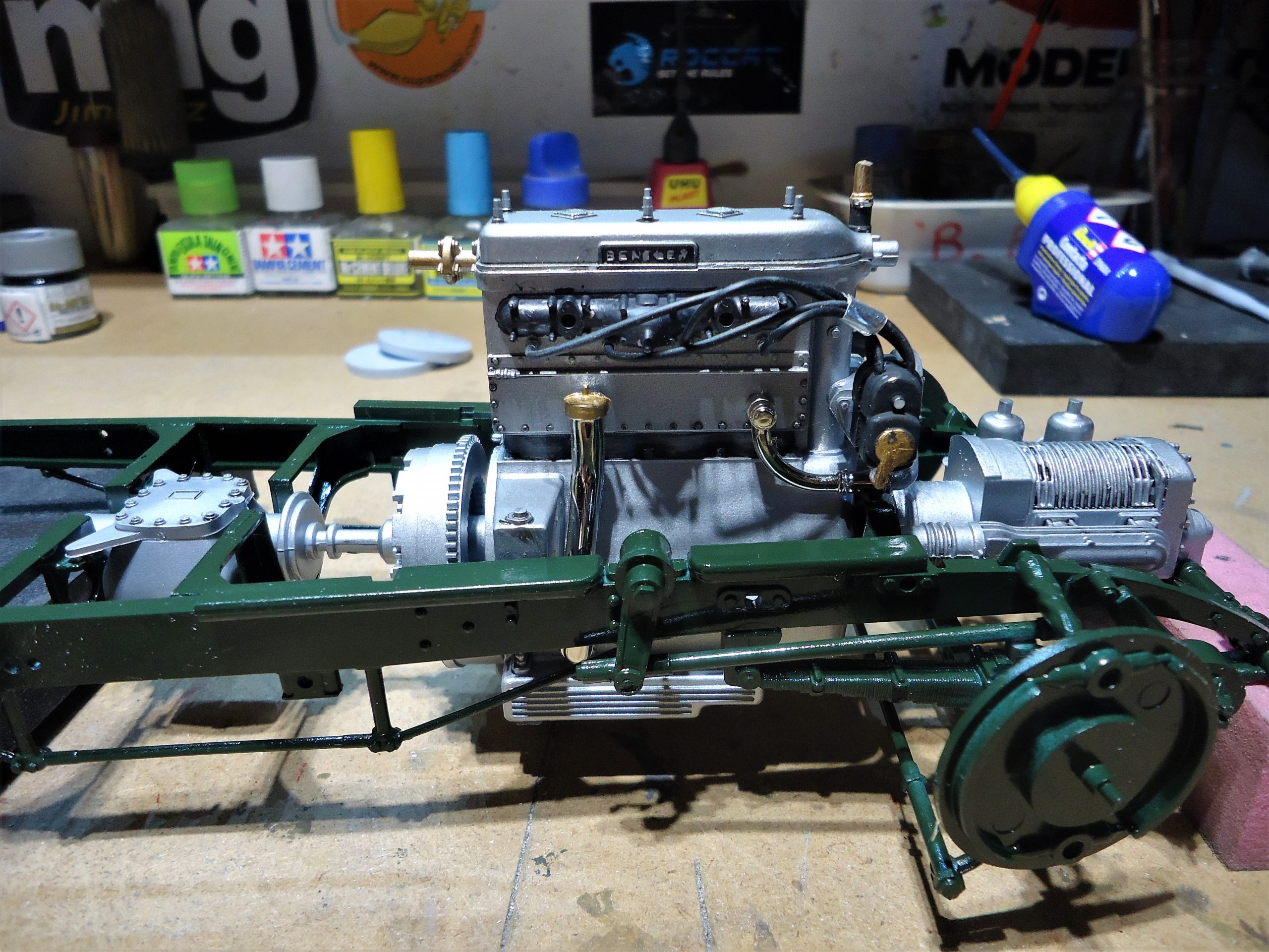 Elle nous a tous fait rêver » dans les vitrines de magasins spécialisés… Je parle de 1971 ! Pensez, une maquette au 1/12ème proposée par Airfix, qui était à l’époque l’un des meilleurs fabricants. Donc… au boulot pour une version modernisée car elle a été rééditée 8 fois en tout jusqu’en 2020. La maquette se compose d’environ 300 pièces. Certes, le kit a bien vieilli et ne souffre pas trop du poids des ans mais il y a encore un gros travail d ‘ébavurage et de préparation, dû à son âge, à une époque où l’on ne connaissait pas encore les « moules à tiroirs ». L’ensemble demeure bon. Le montage est « from the box » avec juste le rajout des grilles métal pour la calandre et les phares. Peinture en deux tons de vert avec la gamme Humbrol « d’époque » posée à l’aérographe. La carrosserie de la vraie étant composée de métal recouvert de cuir par endroits. Une légère couche de vernis mat, sur les parties concernées, a été posée. Toutes les parties du moteur et de la transmission ont quant à elles reçu une touche d ‘Alclad. She made us all dream » in the windows of specialized stores… I’m talking about 1971! Think, a 1/12th scale model proposed by Airfix, which was at the time one of the best manufacturers. So… let’s work on a modernized version because it has been republished 8 times in all until 2020. The model consists of about 300 pieces. Admittedly, the kit has aged well and does not suffer too much from the weight of the years, but there is still a lot of deburring and preparation work, due to its age, at a time when we did not yet know the « drawer moulds. » The whole remains good. The assembly is « from the box. » with just the addition of metal grilles for the grille and headlights. Painted in two shades of green with the « vintage » Humbrol range, airbrushed. The body of the real one is made of metal covered with leather in places. A slight layer of matte varnish, on the relevant parts, was installed. As for all the parts of the engine and transmission, they received an Alclad key.