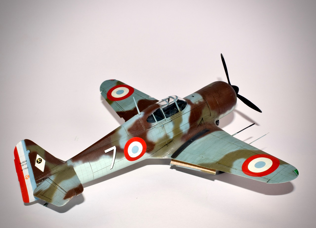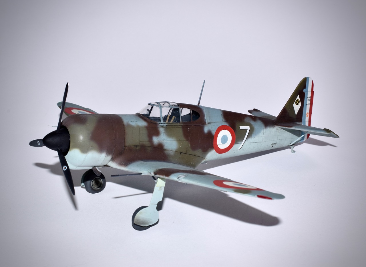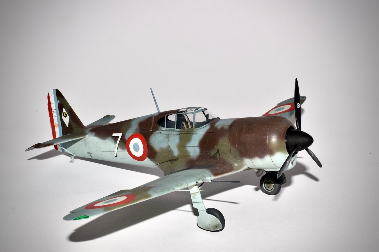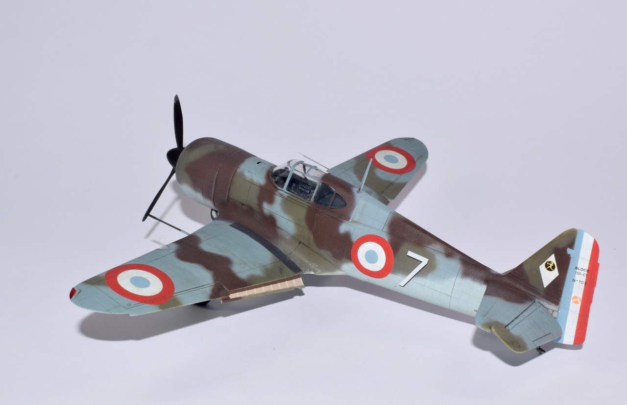 « Dora Wing » nous gâte! Bloch 151, 152, 155! Merci à ces gens de se pencher sur notre Chasse en 40, il était grand temps. Ces maquettes ne sont pas faciles si l’on souhaite entrer dans le détail. Les formes sont justes et c’est déjà une excellente base de départ. Ensuite le rivetage qui se voit bien dans la famille Bloch est à faire. L’assemblage de par son découpage des pièces est capricieux, mais on n’échappera pas à une bonne séance de mastico/ponçage. Les canons de 20mm sont refaits en tube de laiton, le train est raccourci de 2mm; jambes et trappes pour redonner à l’avion son assiette au sol. Le 155 est un 152 amélioré, mais redessiné aérodynamiquement, avec notamment un nouveau capot et la suppression du radiateur d’huile de l’intrados. La verrière comporte une vitre blindée intégrale ce qui est, à l’époque une nouveauté. Livrés au compte goutte aux unités avant l’Armistice les 155 n’eurent qu’un rôle anecdotique dans la Bataille de France. L’avion représenté est le n°702 du GCI/1, avion du Capitaine Coutaud. Il existe une photo de cet appareil parfois situé à Cazaux parfois à Agen. Nous attendons maintenant avec impatience les MS 406 et le Caudron 714 chez nos amis Ukrainiens!