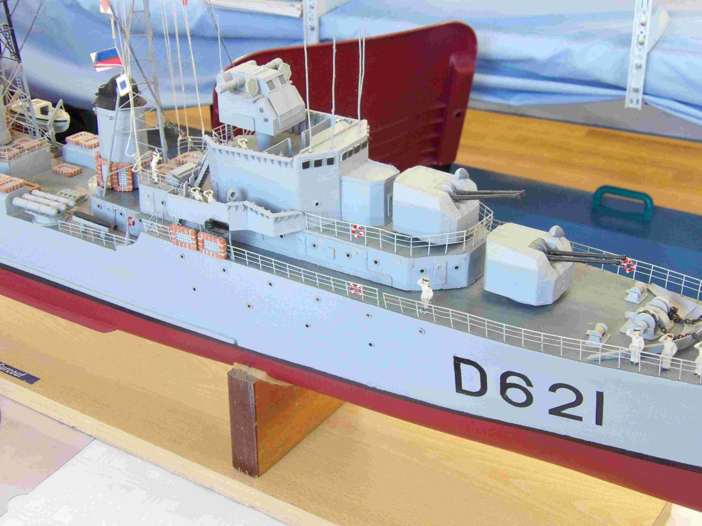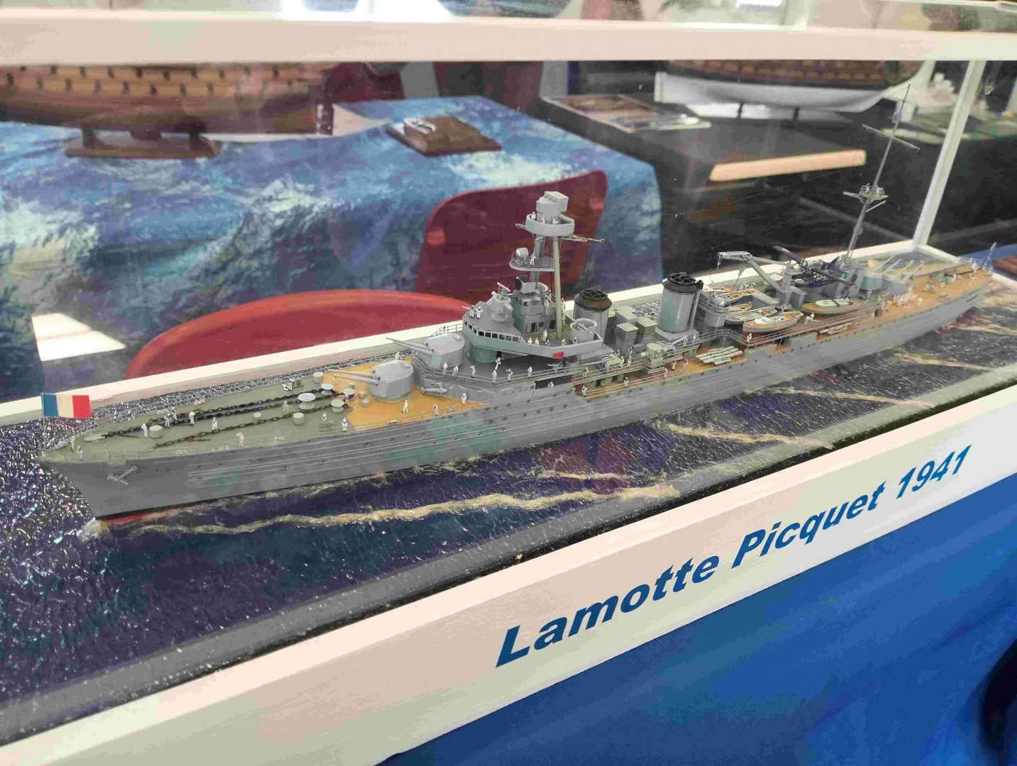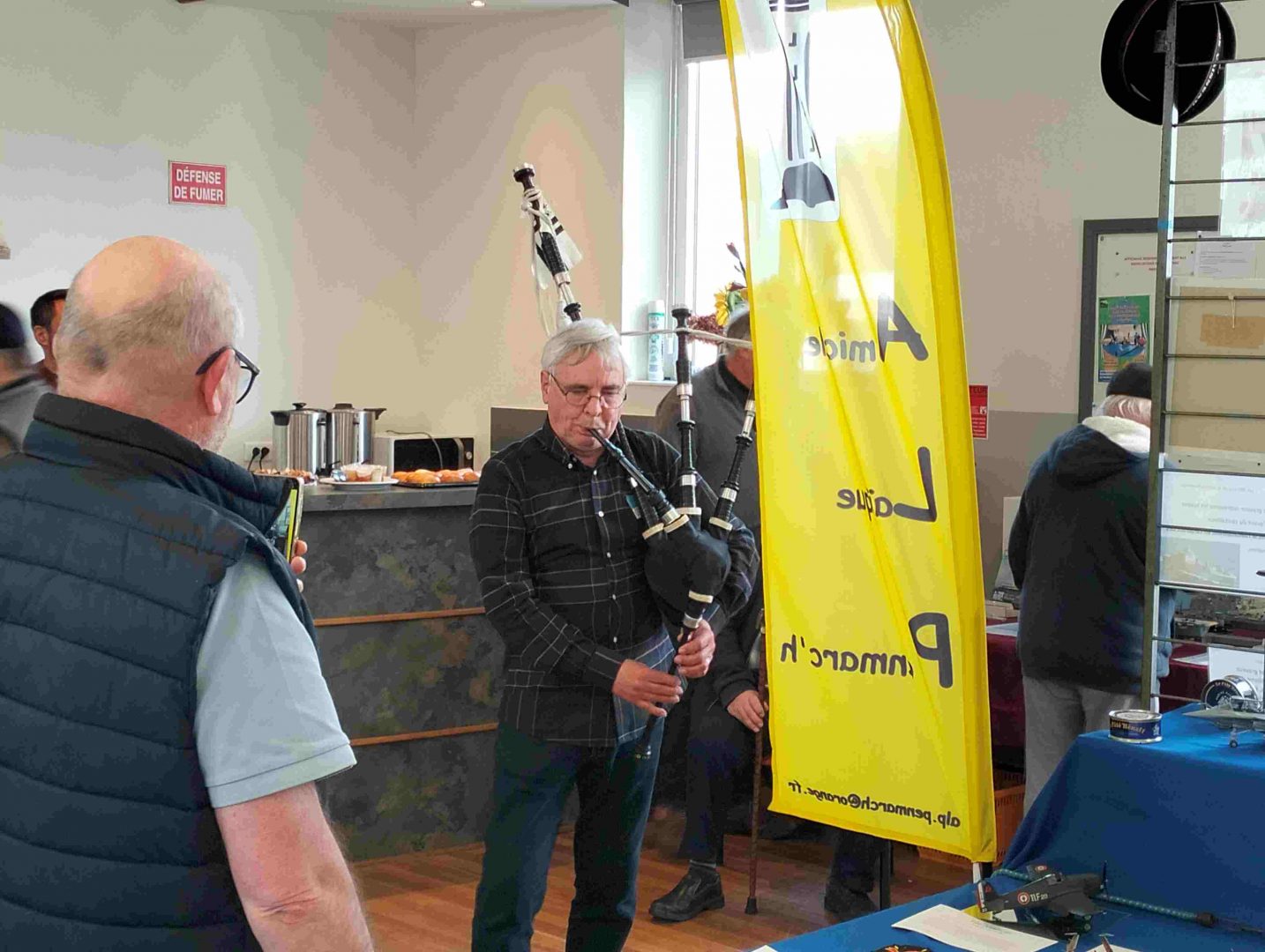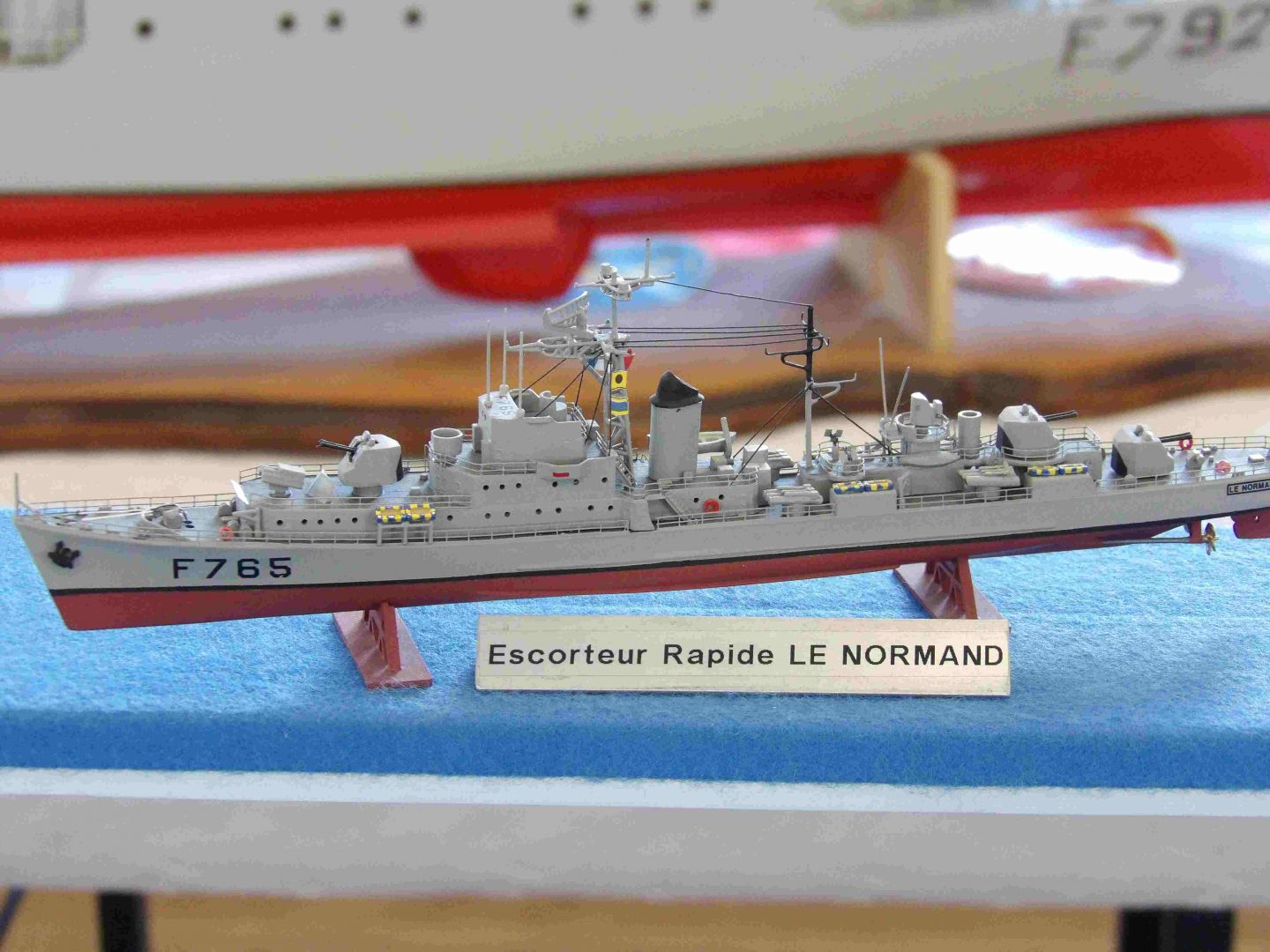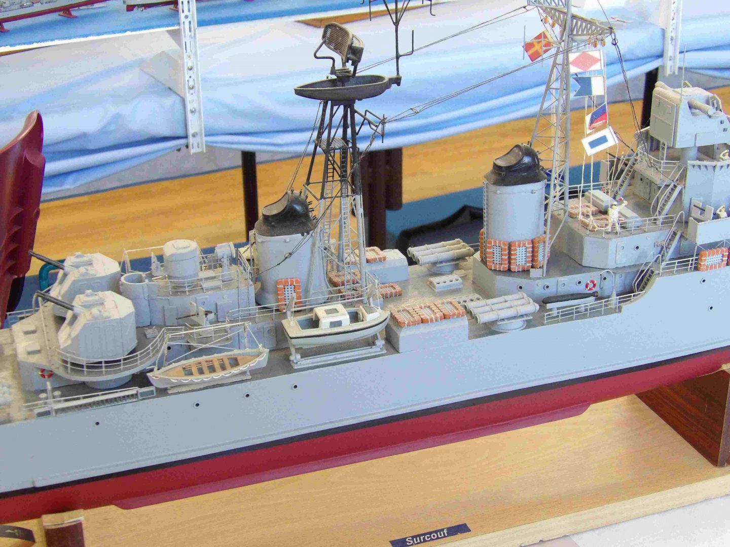 Samedi matin, 8 heures, route CROZON / PLOUHINEC. Jusqu’à Douarnenez, nous étions encore en terre connue. Puis à un moment, direction la pointe du raz, le GPS nous a fait tourner à gauche pour rejoindre PLOUHINEC et là !!!! nous avons eu la sensation d’être sur Mars, des routes méga défoncées, la terre de la désolation. Enfin PLOUHINEC. La salle est bien fléchée. Arrivée sur place, accueil des plus sympas avec Jean Louis et son équipe (rien que des jeunes). On s’installe, Dédé, Domi et Will sont déjà là. Autour de nous que des maquettes de la Marine Nationale. Nous sommes dos à dos avec le MSM 29, un plaisir.