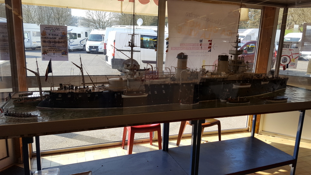Salon toujours agréable avec beaucoup d’exposants présentant des pièces de qualité. Pièce remarquable et remarquée puisque positionnée juste dans l’entrée du salon, le cuirassé Le Bouvet au 1/50, pour un bateau qui mesurait 122 mètres, vous vous retrouvez devant une superbe réalisation de 2,4 mètres. Ajoutez à ça, une magnifique mise en situation du bâtiment et vous avez devant vous une pièce maîtresse qui en impose.