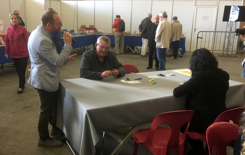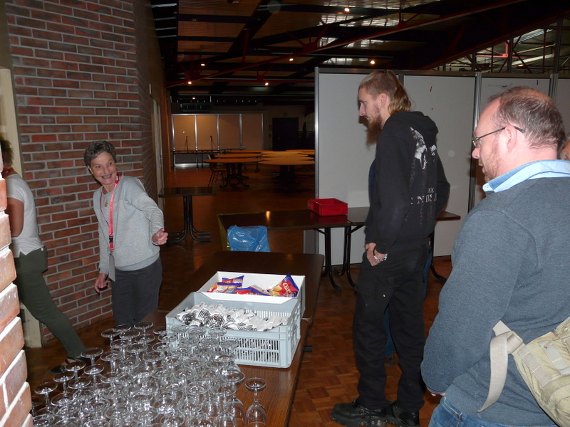 En bout de stand, les quatre caisses de doc Finistère se sont écoulées comme des petits pains, il ne reste que trois pochettes qui disparaîtront très vite. C’est très plaisant de voir tous ces visiteurs déambuler dans le salon avec la pochette Finistère sous le bras. Mes troupes piaffent un peu pour les résultats du concours. On a vu les juges passer, on a tenté de les soudoyer à coup de billets de 1000, mais ils sont restés impartial, (je plaisante bien sûr !). Midi, super plateau repas. Notre expert culinaire Pierrot se régale, (remerciements à cette sympathique équipe féminine et au monsieur de l’accueil).