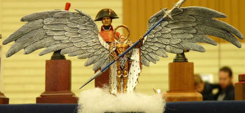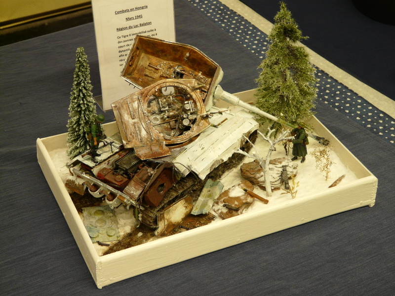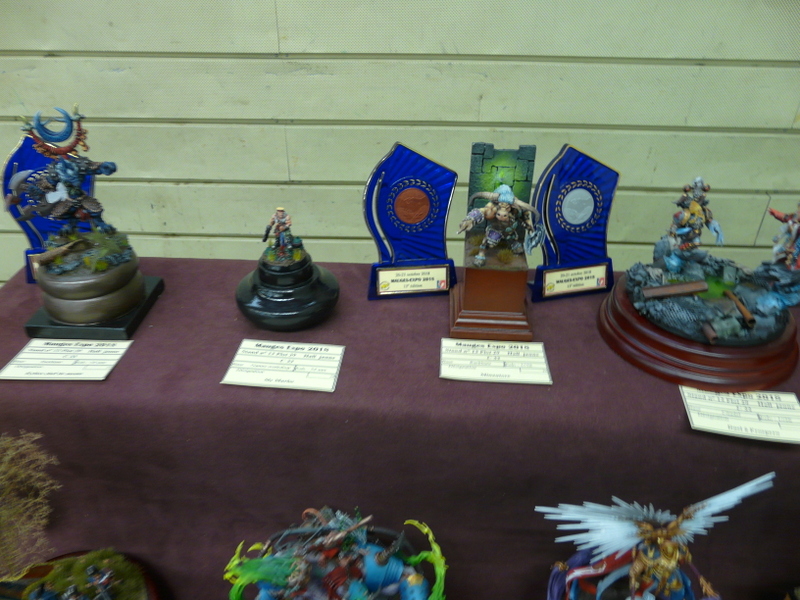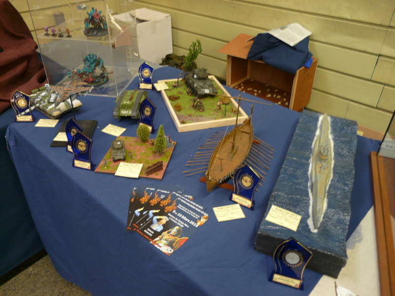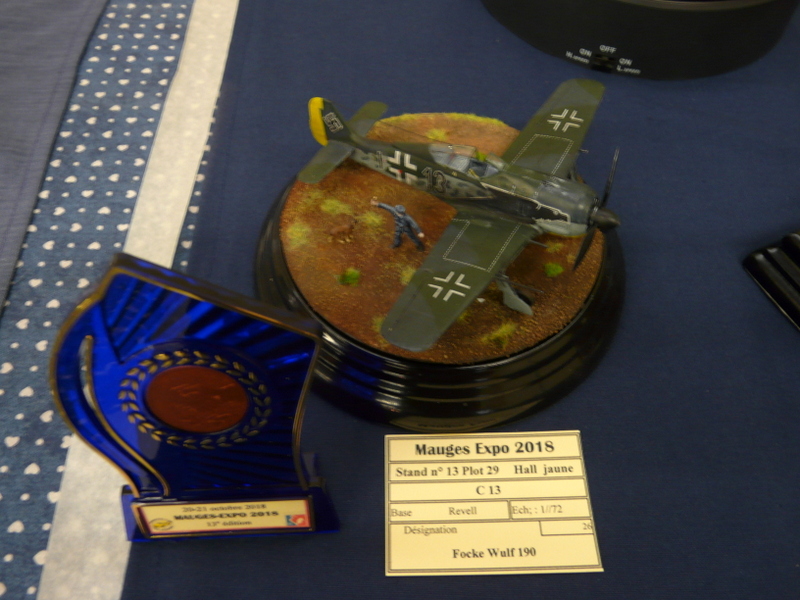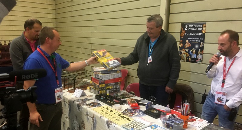 L’après-midi : en pente douce. Re-photos. Les médailles pleuvent sur le stand CAMPI. 14 en tout, tous les juniors sont récompensés et j’en remercie le MCM. Même les figurines cassées sont primées. C’est un peu grâce à nous. La stratégie est bonne, il faut les casser la veille pour mieux les refaire la nuit précédant le concours. Milieu de l’apm, Laurent m’interpelle, «Alain, il faut que l’on aille à ton stand». Et là, magnifique remise des prix juniors devant les appareils photos, très très sympa…..( grand merci au MCM et à HELLER). Cela nous permettra de faire une belle remise des prix au club et à motiver nos jeunes troupes pour l’hiver………..