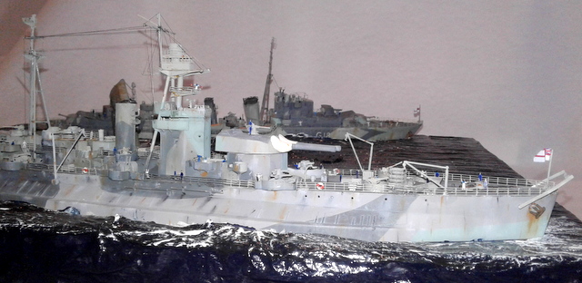 Le montage du destroyer est des plus simples et des plus rapides : très peu de photo-découpe, la peinture est faite en humbrol ( gris clair : 64 , gris foncé : 27 , bleu : 65) les rambardes viennent de chez Arsenal.