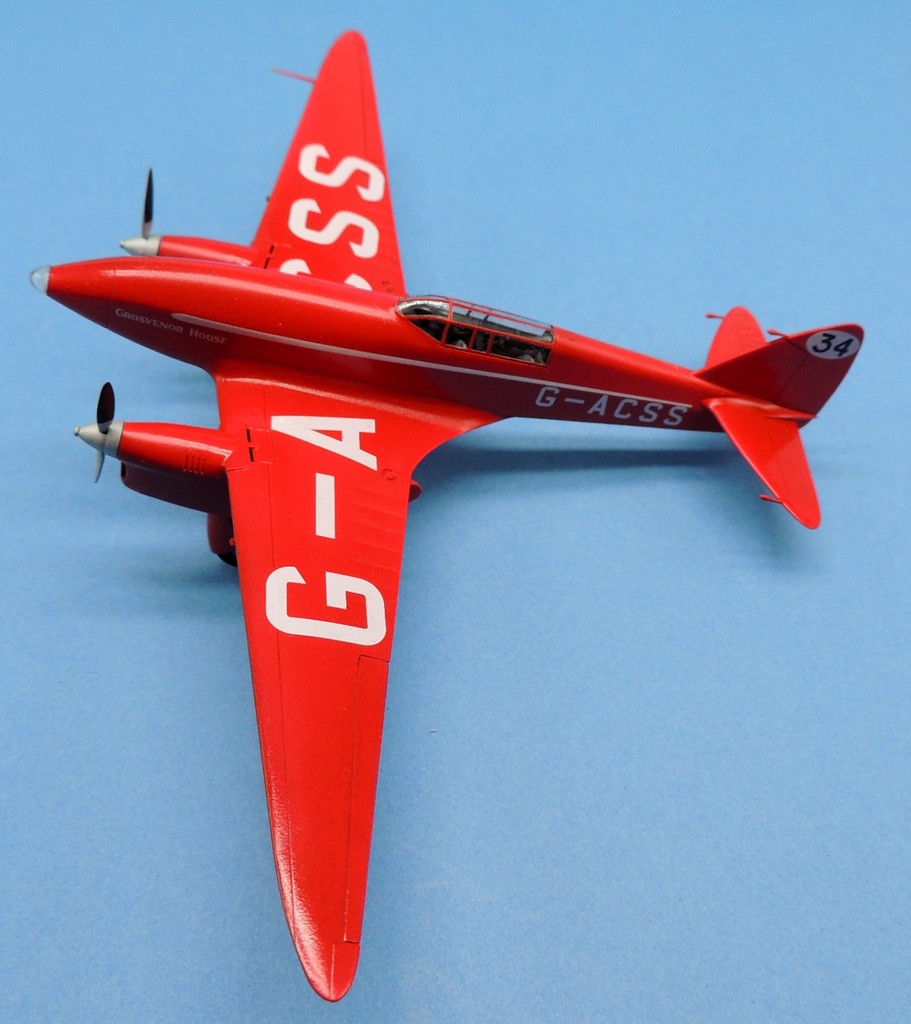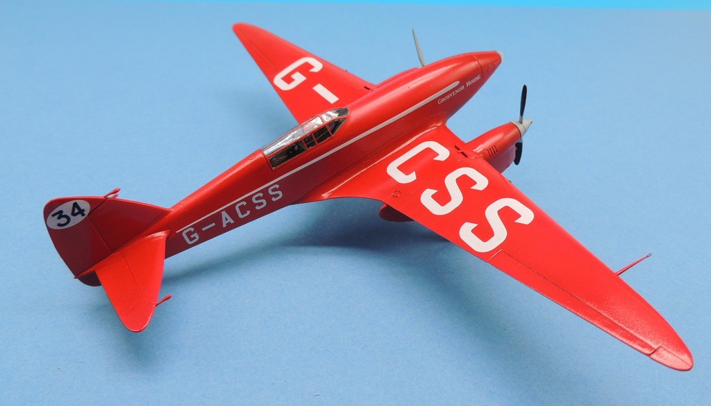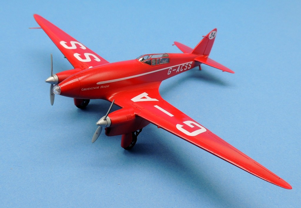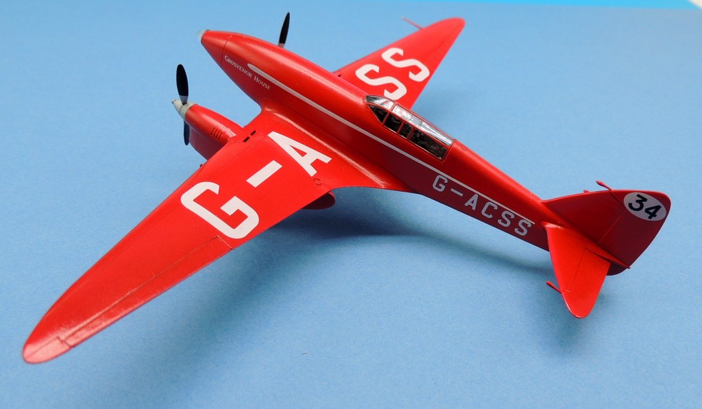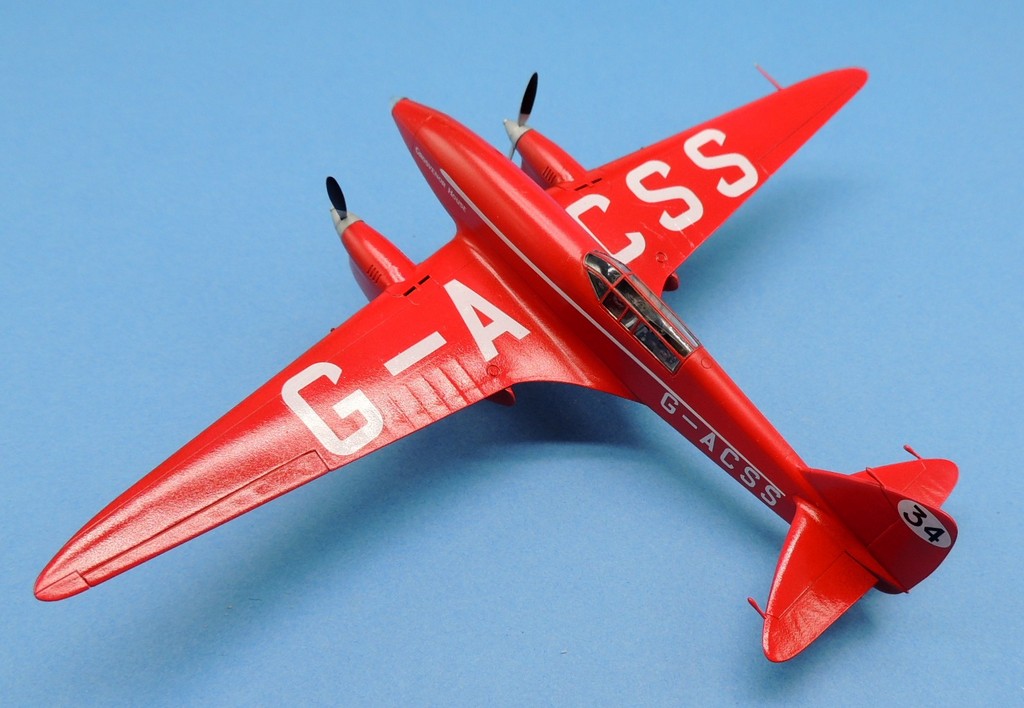 Les avions camouflés vert, gris, bleu, etc…, c’est bien, mais un peu de couleur dans les vitrines ça ne fait pas de mal non plus ! Gamin, j’avais bavé devant le De Havilland DH-88 Comet Racer d’Airfix au 1/72, mais à l’époque la maquette n’était quand même pas terrible et l’argent de poche évaporé, alors… Surprise ! La firme ukrainienne Clear Prop nous offre désormais une belle reproduction de cet oiseau mythique. C’est du short run, mais de qualité. Les formes sont justes, un peu de masticage est à prévoir sur certains plans de joints, mais vraiment minime, pour plus de réalisme, les masselottes d’équilibrage de la profondeur sont à affiner (attention fragile !) et le train d’atterrissage n’est pas un modèle de simplicité, plutôt que de suivre le plan du fabricant, la pose a été faite une fois la peinture et la pose des décalques terminées. Les feux de navigation sur les bords d’attaque ont été refaits en étiré transparent de la bonne couleur. Les décalques se posent sans souci à l’aide des sempiternels Micro Set et Sol, après vernis brillant pour tout le monde, et hop le tour est joué ! Seul petit bémol, il est possible de faire la version 1934 ou celle de l’appareil restauré, il y a quelques variantes au niveau de l’équipement pas toujours bien signalées, il faut donc vérifier en fonction des photos disponibles sur le Net. Bref, c’est beau, simple, relaxant, et on ne voit plus que lui dans la vitrine, alors pas d’hésitation, achetez et montez ! Green, gray, blue camouflaged planes, etc…, it’s good, but a little color in the windows doesn’t hurt either! Kid, I had drooled in front of the Airfix De Havilland DH-88 Comet Racer on 1/72, but at the time the model was still not great and the pocket money evaporated, so… Surprise! The Ukrainian firm Clear Prop now offers us a beautiful reproduction of this mythical bird. It’s short run, but of quality. The shapes are right, a little bit of mastication is to be expected on certain joint planes, but really minimal, for more realism, the depth-balancing weights need to be refined (beware fragile!) and the landing gear is not a model of simplicity, rather than following the manufacturer’s plan, the installation was done once the painting and the installation of the decals were completed. The navigation lights on the leading edges have been redone in transparent stretch of the right color. The decals are installed without any problem using the perpetual Micro Set and Sol, after gloss varnish for everyone, and presto! Only small downside, it is possible to make the 1934 version or that of the restored device, there are some variants in terms of equipment not always well indicated, so you should check according to the photos available on the Net. In short, it’s beautiful, simple, relaxing, and we only see him in the window, so no hesitation, buy and get on!