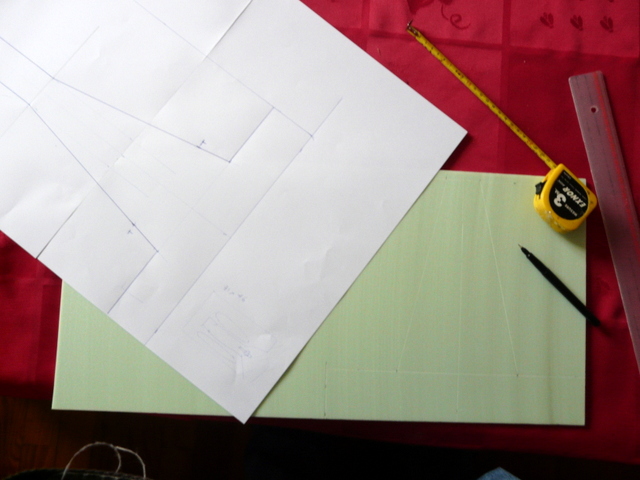 Une solution, comme les couturières, faire un patron, j’ai assemblé 3 feuilles A3 et posé mes deux bateaux dessus. Ma scène devait être une pure fiction, rien n’ayant existé, dont le seul but était la présentation des deux kits. Après plusieurs positionnements, avis de mon épouse et de mon adjoint Bibi, le plus simple était de faire un quai au milieu et d’y amarrer un bateau de chaque côté. Il fallait un quai qui se termine dans la mer et de l’autre côté, qui débouche sur un début de port.