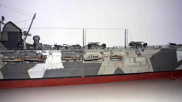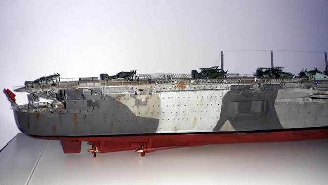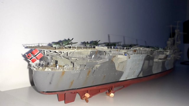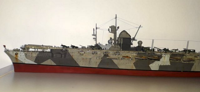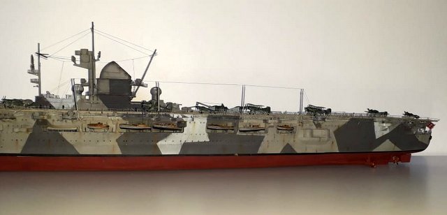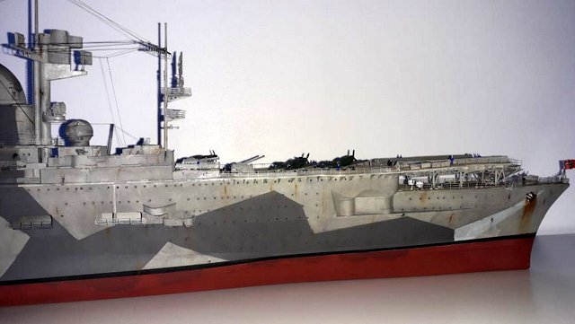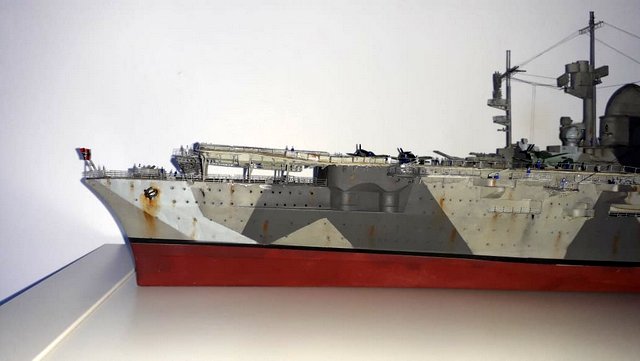 Collage de la coque et mise en peinture de celle-ci (Ayant un peu de liberté historique, je décide de faire le camouflage prévu sur le GRAF ZEPPELIN).