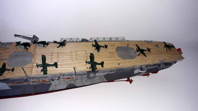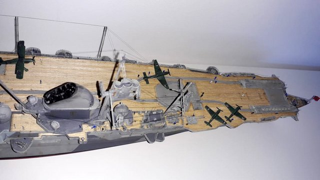 Voici quelques années, TRUMPETER avait sorti, à ma grande surprise, 2 portes avions allemands ( Graf Zeppelin et Peter Strasser). J’ai acquis la boite du Peter Strasser et en y rajoutant les kits de détaillage (BIG ED Eduard du GRAF, ainsi que le pont bois qui fût difficile a trouver, conséquence de la pandémie COVID (arrêt de production en chine et arrêt des exportations….) J’ai réussi a trouver par le plus grand des hasards le pont tant voulu….