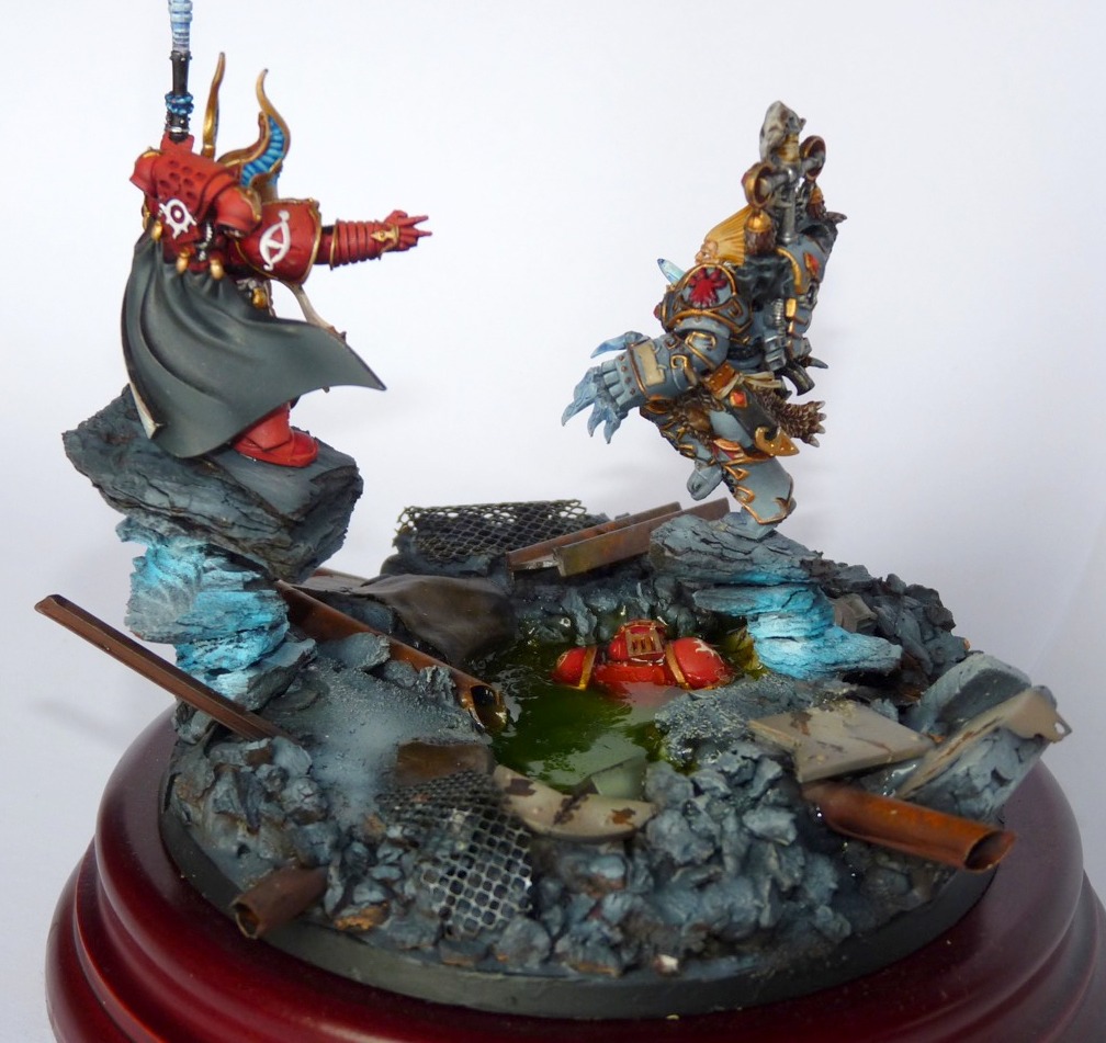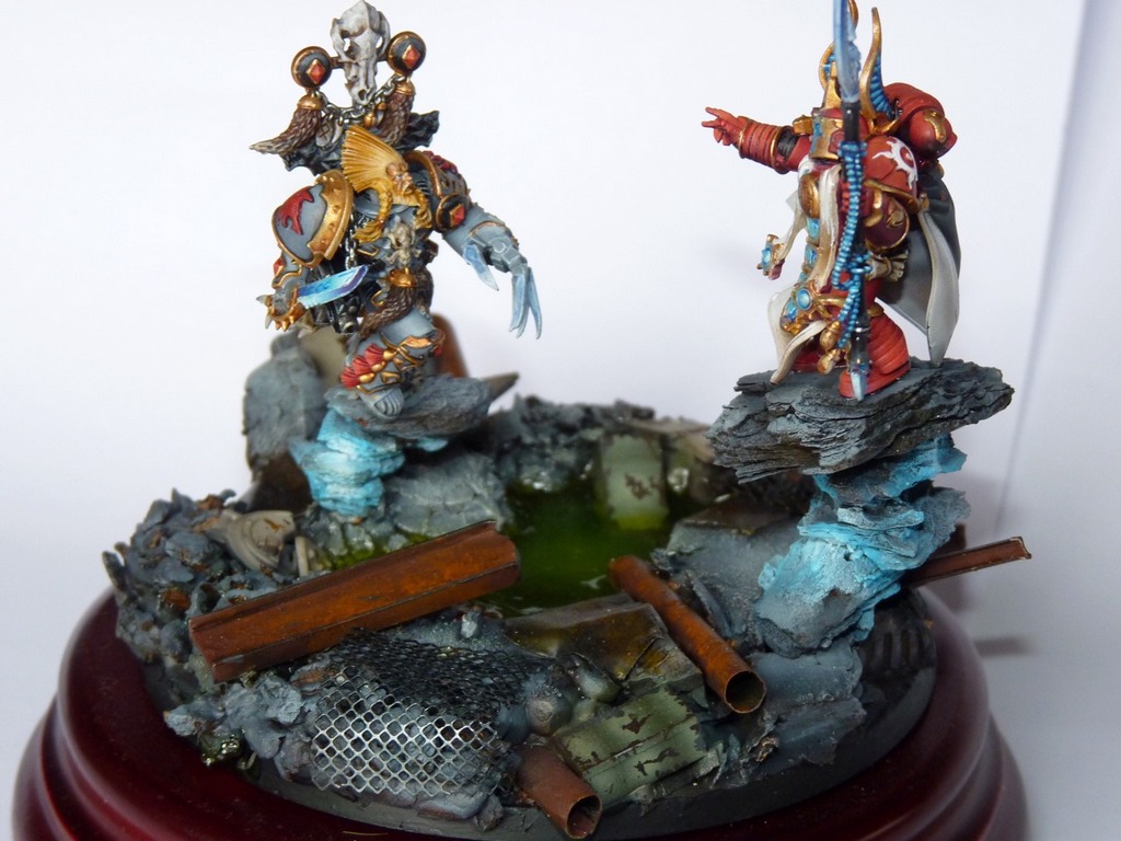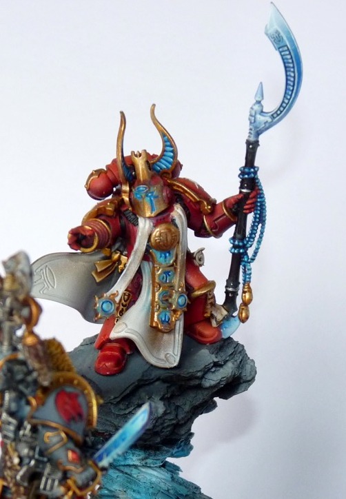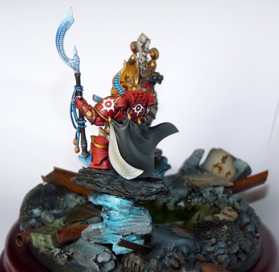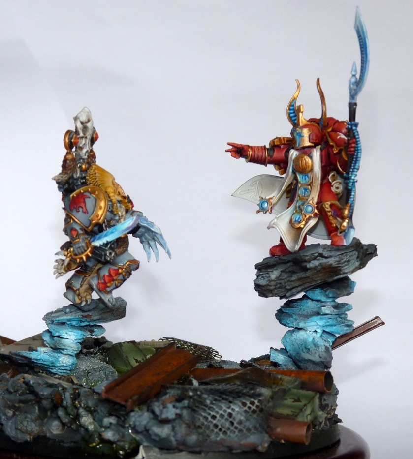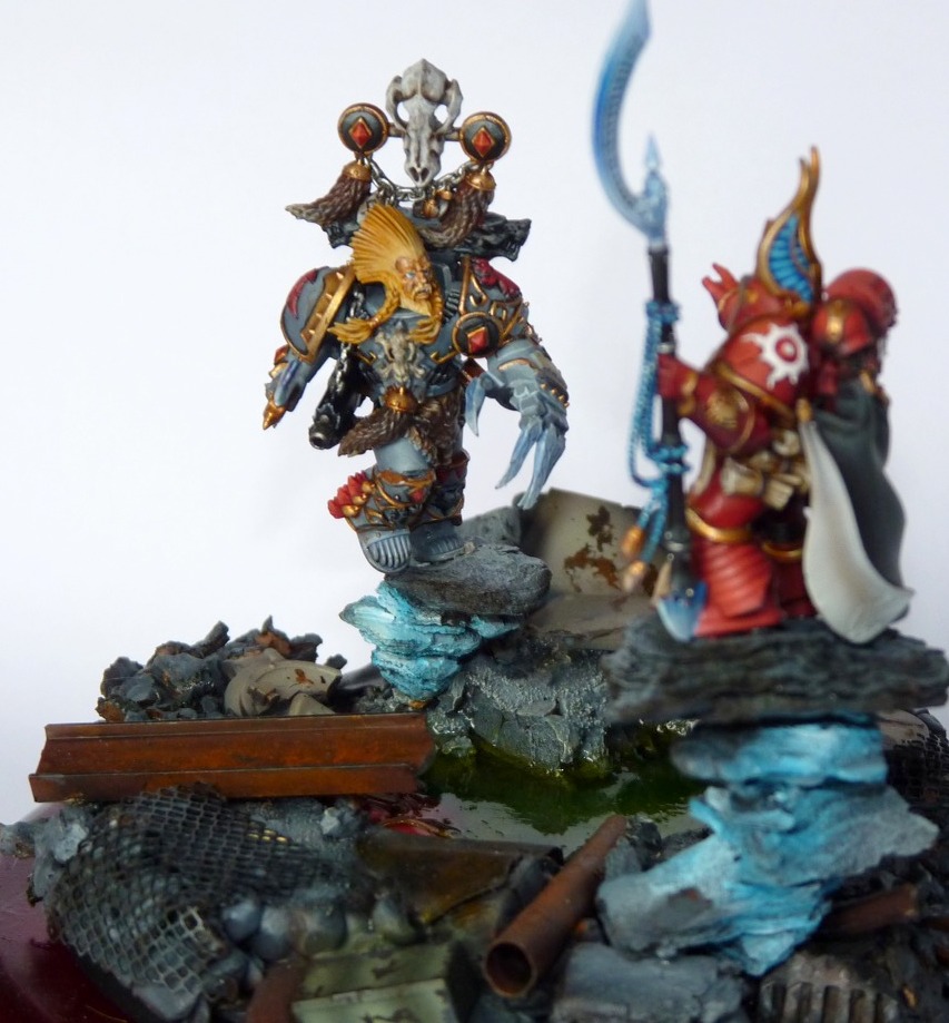 J’ai voulu que celui-ci soit dynamique, j’ai eu l’idée de faire courir Geigor Fell-Hand sur des rochers qui volent grâce à la magie d’Ahzek Ahriman