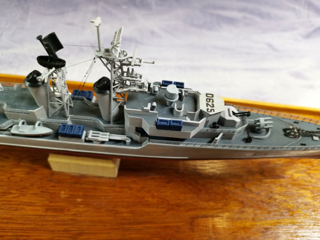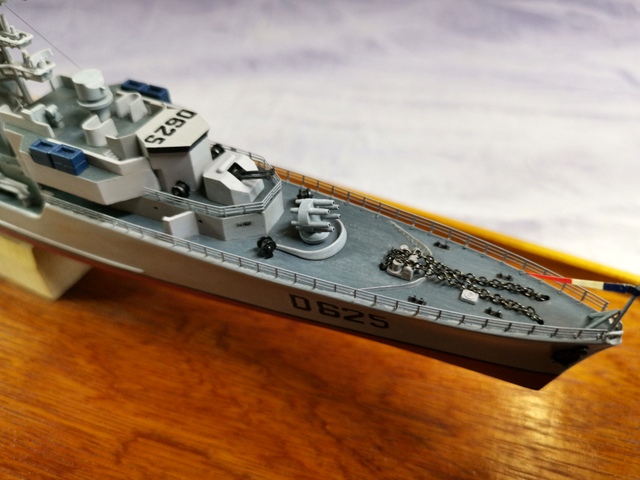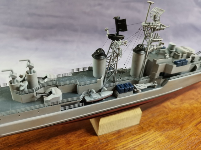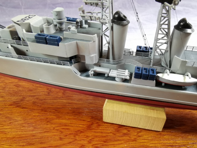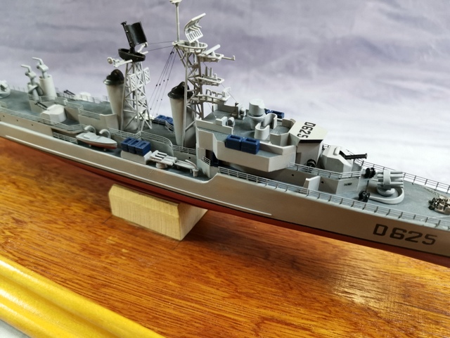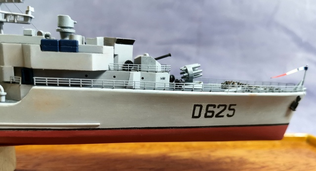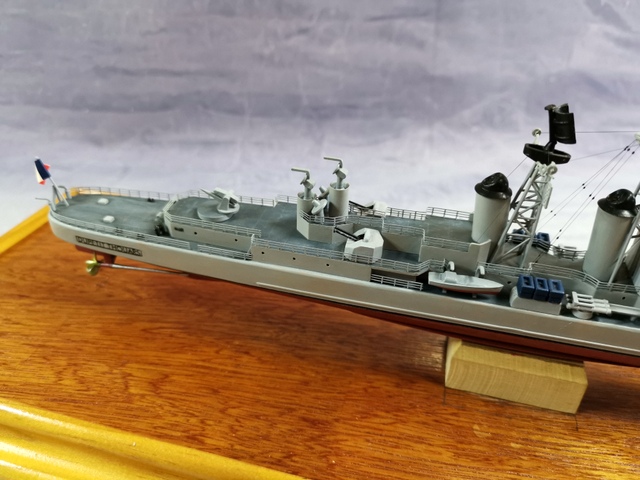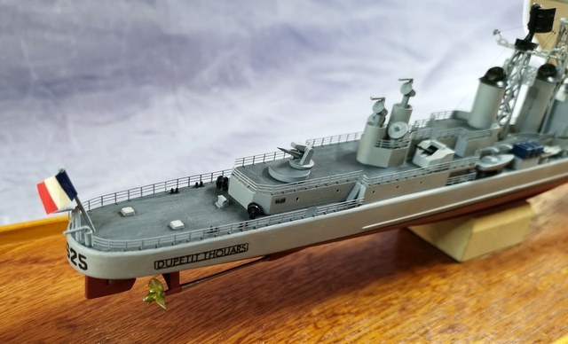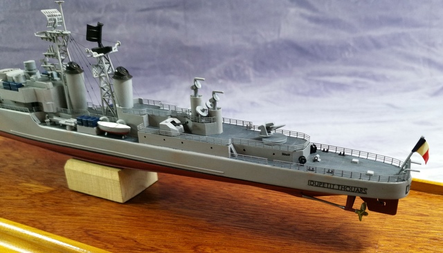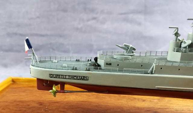 Ma toute dernière réalisation de cette célèbre marque a été l’escorteur DUPETIT THOUARS au 400 ème. Le montage coque/pont ne pose aucun problème. Juste après collage, un filet de mastic liquide, et, une fois sec, un léger ponçage. Et l’on peut peindre cet ensemble.