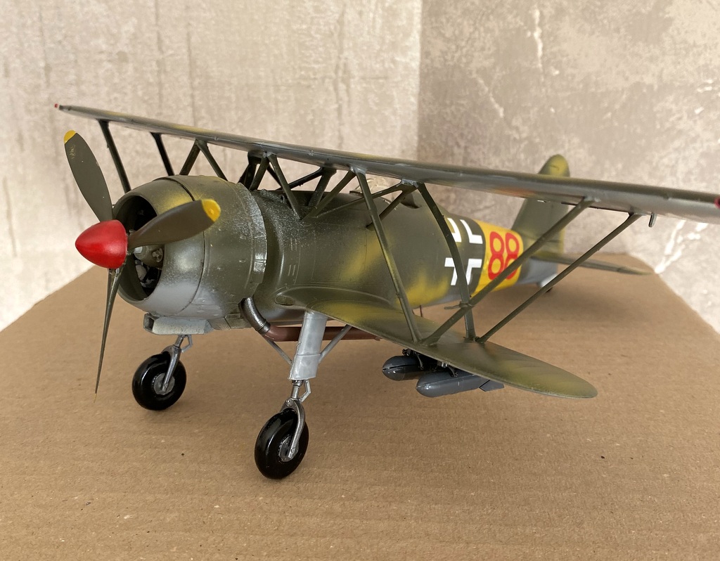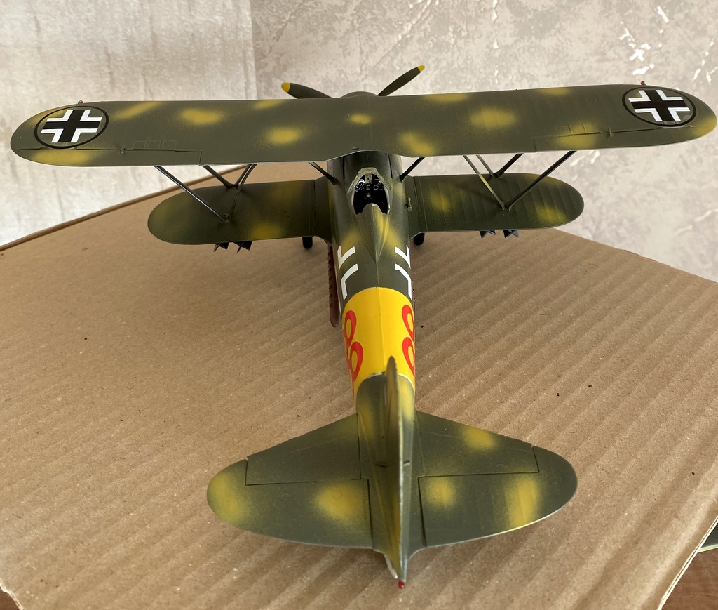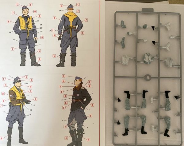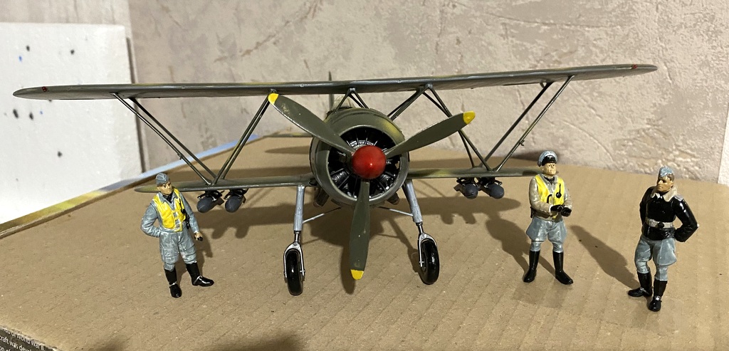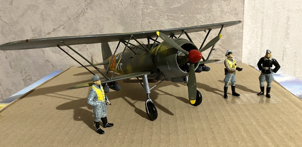 Un petit article pour un bel avion, le FALCO CR 42 LW ; le prototype du Fiat CR.42 « Falco » vole pour la première fois le . 1 781 exemplaires furent construits, le dernier en juin 1943. Dernier chasseur biplan mis en service, il est aussi considéré comme le meilleur et adoré de ses pilotes grâce à ses excellentes qualités de maniabilité. Sa production en série fut décidée bien que Fiat Avio ait déjà démarré la fabrication des avions de chasse monoplans FIAT G 50 et Macchi MC 200, qui utilisaient le même moteur. https://wikipedia.org/wiki/fiat_CR.42_Falco pour découvrir un peu mieux ce bel oiseau !!! C’était un plaisir de monter ce biplan avec les 3 personnages joints dans la boîte. Pour démarrer, j’ai commencé, bien sûr, par préparer mes petits pots de peintures comme proposés sur le plan ! Là, j’ai pu découvrir ou redécouvrir la difficulté d’allier les numéros des pots que j’avais avec ceux proposés… Les correspondances ne sont pas toujours évidentes et les couleurs varient en fonction des fournisseurs !! De plus, en ce qui me concerne, j’ai constaté que les pots acrylique Revell avaient tendance à sécher rapidement et devenir inutilisable. A small article for a beautiful plane, the FALCO CR 42 LW; the prototype of the Fiat CR.42 « Falco » first flies on May 23, 1938. 1,781 were built, the last one in June 1943. Last biplane fighter put into service, it is also considered as the best and adored by its pilots thanks to its excellent maneuverability qualities. Its series production was decided although Fiat Avio had already started the manufacture of the FIAT G 50 and Macchi MC 200 monoplane fighter jets, which used the same engine. https://wikipedia.org/wiki/fiat_CR.42_Falco to discover a little better this beautiful bird!!! It was a pleasure to assemble this biplane with the 3 characters attached in the box. To start, I started, of course, by preparing my little pots of paints as proposed on the plan! There, I was able to discover or rediscover the difficulty of combining the numbers of the pots that I had with those proposed… The matches are not always obvious and the colors vary depending on the suppliers!! Moreover, as far as I’m concerned, I found that the Revell acrylic pots tended to dry quickly and become unusable.