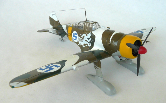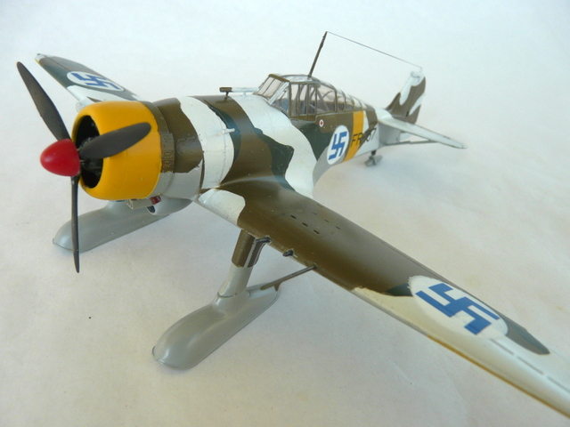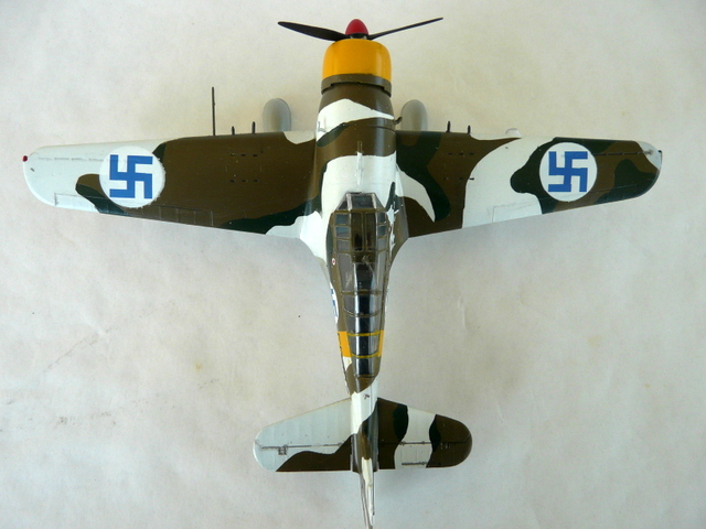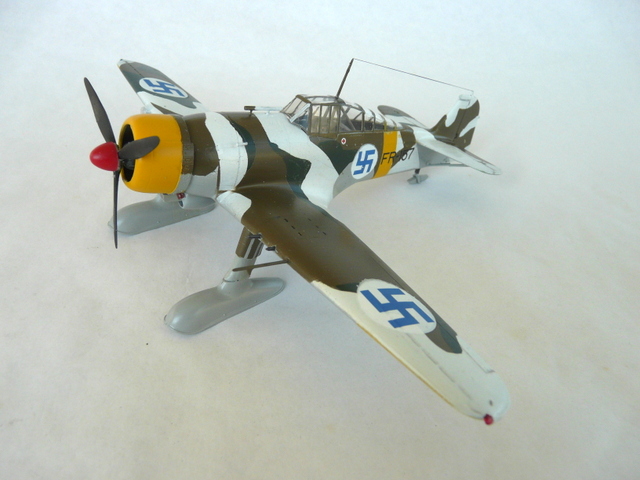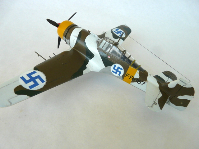 En faisant cet avion, je me suis intéressé à son histoire et à l’histoire de ces croix gammées bleues. Et bien figurez-vous que tout cela n’a rien d’allemand. Elle a vu le jour, dans l’armée de l’air Finlandaise en 1918. C’était un symbole de chance et l’emblème personnel du comte suédois Eric Von Rosen, ( source WIKIPEDIA). C’est en 45 que pour éviter toute confusion avec la staviska nazie, que la croix bleue fut remplacée par la cocarde ronde, blanche et bleue. En même temps, jetez un coup d’œil sur l’histoire de ce pays pendant la seconde GM, en lutte principalement contre les Russes !