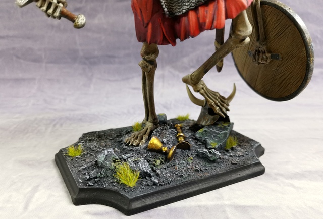 Très belle réalisation de l’un de nos juniors, le guerrier squelette Verlinden, ( pièce maintenant collector puisque disparue du circuit). C’est Mathias, 11 ans, qui s’y est collé. Sous la houlette de nos experts figurinistes, la préparation et l’assemblage des pièces en résine, ne semblent pas avoir posé de problème, (du moins, je n’en n’ai pas entendu parler, ce qui semble bon signe). Après apprêtage, Mathias a peint, tout seul, sa figurine en écoutant sagement les conseils donnés. En finale, une très belle réussite, bravo Mathias. Nous avons réussi à arracher 3 lignes de notre ami Mathias que je vous livre ci dessous: