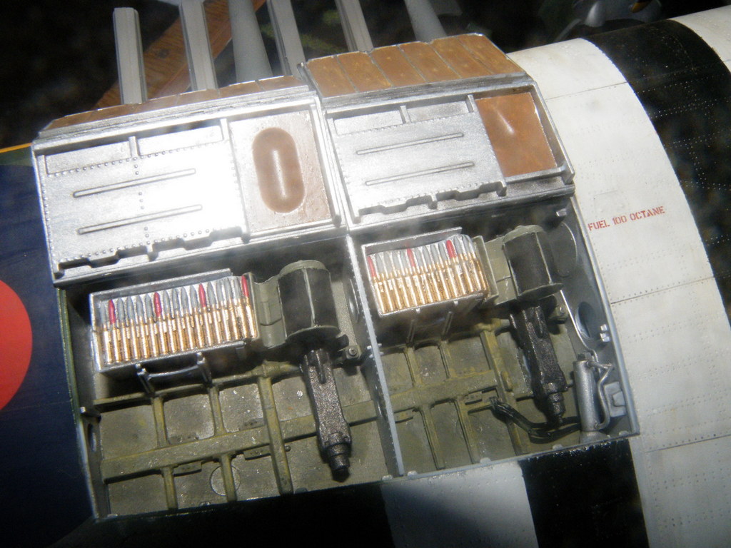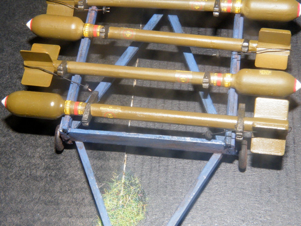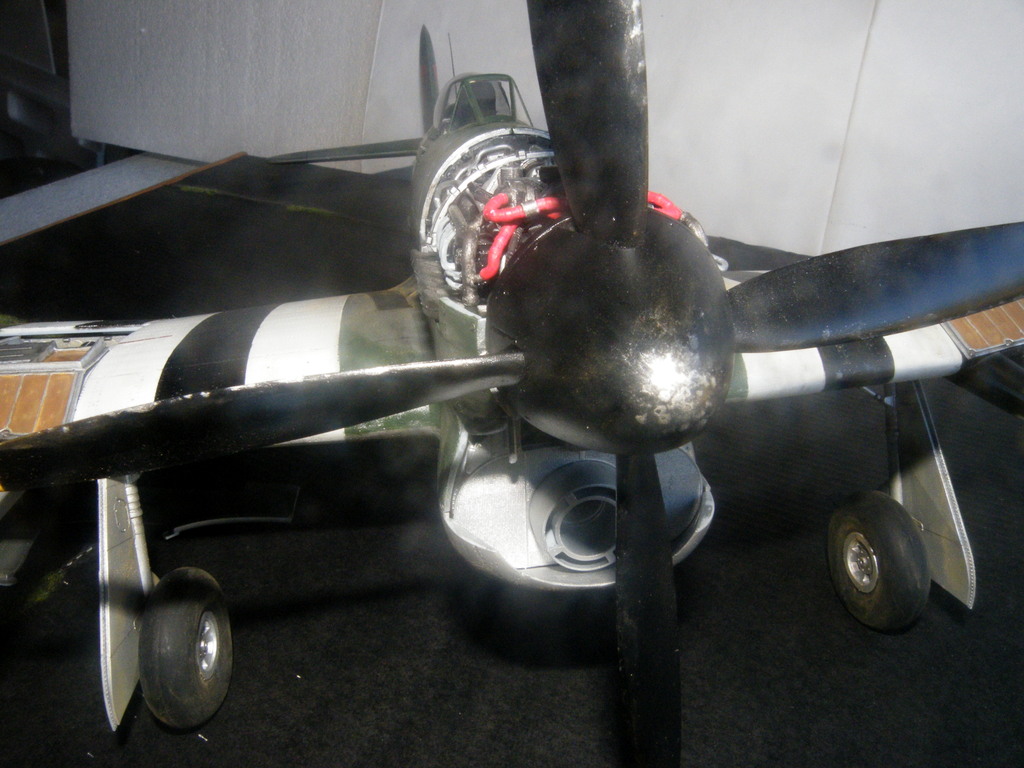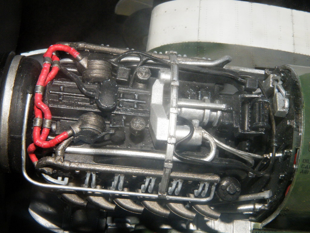La boîte est prévue pour 3 possibilités : le moteur entièrement décapoté et les baies d’armement ouvertes , seulement le dessus du moteur et les baies d’armement, ou tout fermé. Dans l’option 2 , une partie des pièces moteur ne doivent pas être montées tout comme dans l’option 3. J’ai dû trouvé que c’était trop simple alors j’ai opté pour une 4ème option en ouvrant certains panneaux et en en fermant d’autres. Forcément, par la suite, certains joints n’étaient plus au top et il a fallu en reprendre certains, vu que dans cette configuration certaines pièces moteur n’auraient pas dû être montées, mais je voulais monter le maximum des 80 pièces que compte le moteur, c’est dommage de ne pas monter une aussi belle bête, tout comme renfermer complètement le cockpit qui en compte presque autant. Mais si l’on s’en tient au montage initial, tout s’ajuste parfaitement. L’armement est composé de bombes de 500 ou 1000 livres, plus deux modèles de rockets dont un doit être prévu pour l’autre version du Typhoon. Vu la configuration de l’appareil, je ne les ai pas mis en place mais j’ai décidé de fabriquer des chariots de transport en scratch pour ne pas les poser au sol et j’ai rajouté les fils d’allumage avec leurs broches sur les rockets. Quatre possibilités de décoration sur cette maquette et j’ai choisi celle d’un appareil pendant le débarquement en Normandie. Avion piloté par le Wing Commander Charles Green ; Win 121 ; B5 Le Fresne- Camilly , France , Juin 1944. Voilà , certains y trouveront peut être des défauts ou je ne sais quoi, mais moi il me plait bien et j’ai pris beaucoup de plaisir à monter cet oiseau . The box is designed for 3 possibilities: fully open engine and open armament bays, only the top of the engine and the armament bays, or all closed. In option 2, some of the engine parts do not need to be mounted just like in option 3. I must have found that it was too simple so I opted for a 4th option by opening certain panels and closing others. Inevitably, afterwards, some joints were no longer on the top and we had to take some of them back, since in this configuration certain engine parts should not have been fitted, but I wanted to fit the maximum of the 80 parts that the engine has, it’s a shame not to ride such a beautiful beast, just like completely enclosing the cockpit which counts almost as much. But if we stick to the initial assembly, everything fits perfectly. The armament is composed of 500 or 1000-pound bombs, plus two models of rockets, one of which must be planned for the other version of the Typhoon. Given the configuration of the device, I did not put them in place but I decided to make transport trolleys from scratch to avoid placing them on the ground and I added the ignition wires with their pins on the rockets. Four possibilities for decoration on this model and I chose that of a device during the landing in Normandy. Aircraft flown by Wing Commander Charles Green; Win 121; B5 Le Fresne-Camilly, France, June 1944. There you go, some might find flaws in it or something, but I like it and I had a lot of fun riding this bird.
