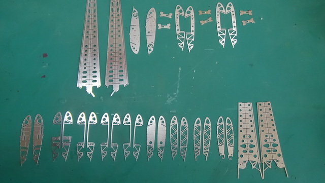 321 pièces gravées dans trois belles feuilles de maillechort de 16/10e. Quelques pièces en résine métallisées pour s’harmoniser avec l’ensemble).