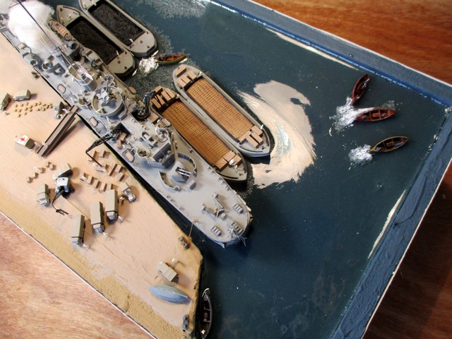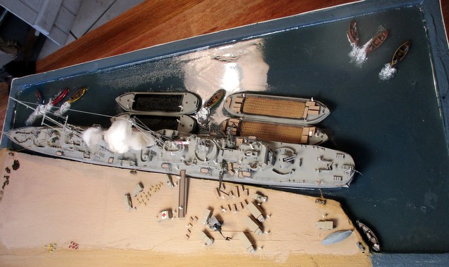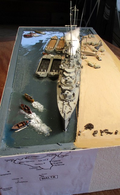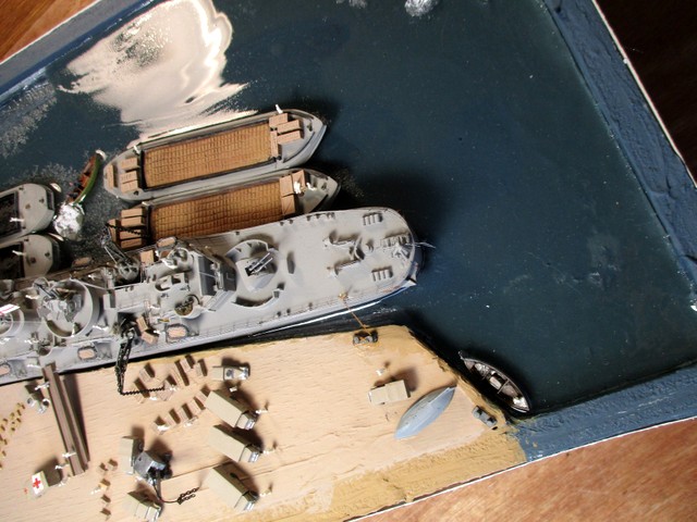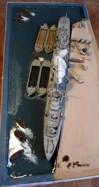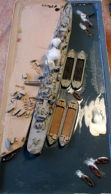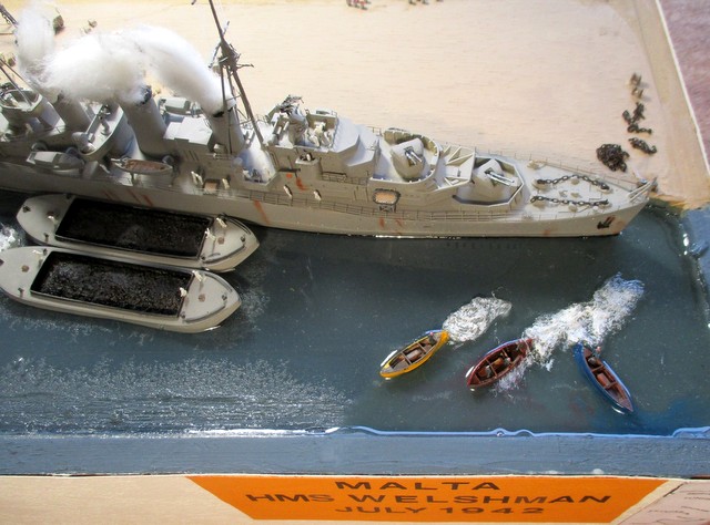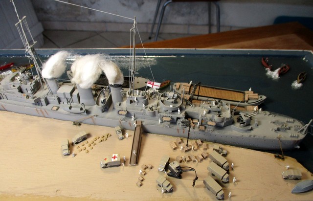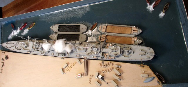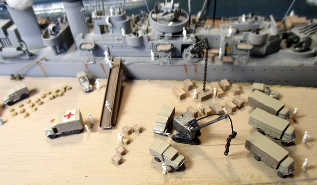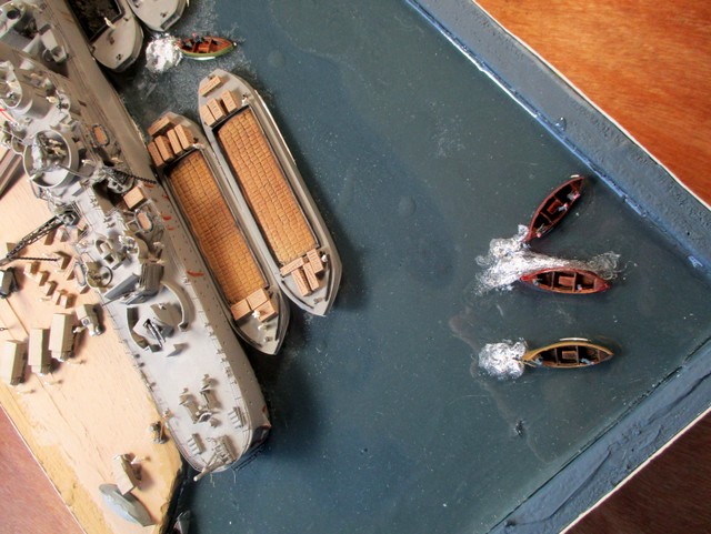 DIORAMA 1/350: La scènette se situe dans le port de MALTE,d après photos. La plupart des accessoires ( véhicules, personnages, caisses,futs, chaines, barges ,canots ,etc …………..; ) proviennent de chez LARSENAL. A vous de les reconnaitre !!!!!!!!!!!!!!!!!!!!!!