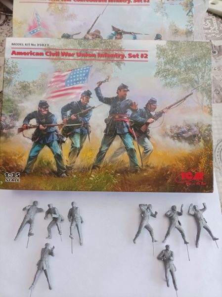 Pour varier un peu les échelles, j’ai ouvert des boîtes ICM au 1/35 sur la guerre de sécession et oh surprise ! des visages très expressifs et de belles figurines. Ça donne envie et j’ai déjà mon idée. Il n’y a plus qu’à se lancer ! To vary the scales a bit, I opened ICM boxes at 1/35 on the secession war and oh surprise! very expressive faces and beautiful figurines. It makes you want to and I already have my idea. Just have to start!