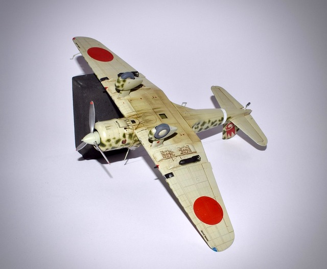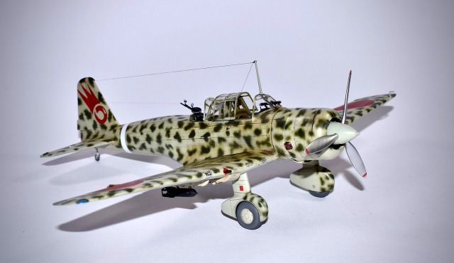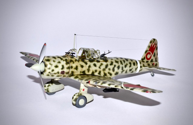 Le Ki-51 fut extrapolé du Ki-30 »Ann » qui avait été le bombardier moyen Japonais pendant le conflit acec la Chine. Il en avait conservé les lignes générales, et servit avec succès pendant toute la guerre et sur tous les fronts. On dirait aujourd’hui que cet avion était multi-rôles, observation, attaque au sol, bombardement. Nichimo a produit ce kit il y a des décennies et la maquette tient encore fort bien la route. Wingsy Kits marque Ukrainienne nous gratifie d’un nouveau moule après un A5M4 »Claude » magnifique. La maquette est très belle et le niveau de détails très haut, cependant j’ai rencontré tout un tas de problèmes durant le montage, plastique réticent à la colle, plots de centrage plus gros que les trous, tenons et mortaise des assemblages de la même veine et cerise sur le gâteau, une largeur de fuselage supérieure de plus d’1mm à celle des raccords Karman; bref par moment ce fut un peu sport! Pas de décalques mais des marques faites aux masques grace à la Silhouette, et une déco pour un avion du 6° Hikosentaï en Chine en 42. Les masques en vynil qui rebiquent pendant la peinture ont été remplacés par ceux de Dead Design bien mieux faits.