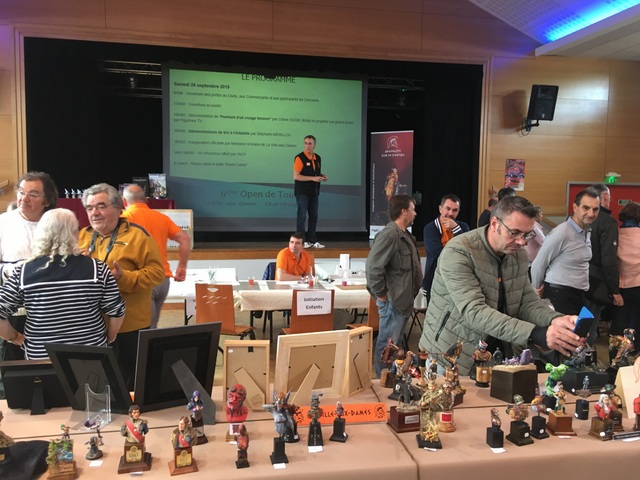 Dimanche : arrivée toute aussi matinale à l’expo, ( heure militaire de mon ami Jean Noël). Le temps encore une fois de regarder à nouveau toutes ces belles pièces. Peinture au stand, repas sandwichs le midi, ( toujours les rillettes de Tours opposées à celles du Mans). Vers 17 heures, résultats du concours. Avec peu de pièces inscrites, nos amis campistes s’en sortent bien, ( OR pour Thiebaud et un prix spécial et médaille de bronze pour Jean Noël qui se voyait pourtant ne rien avoir vu le niveau).