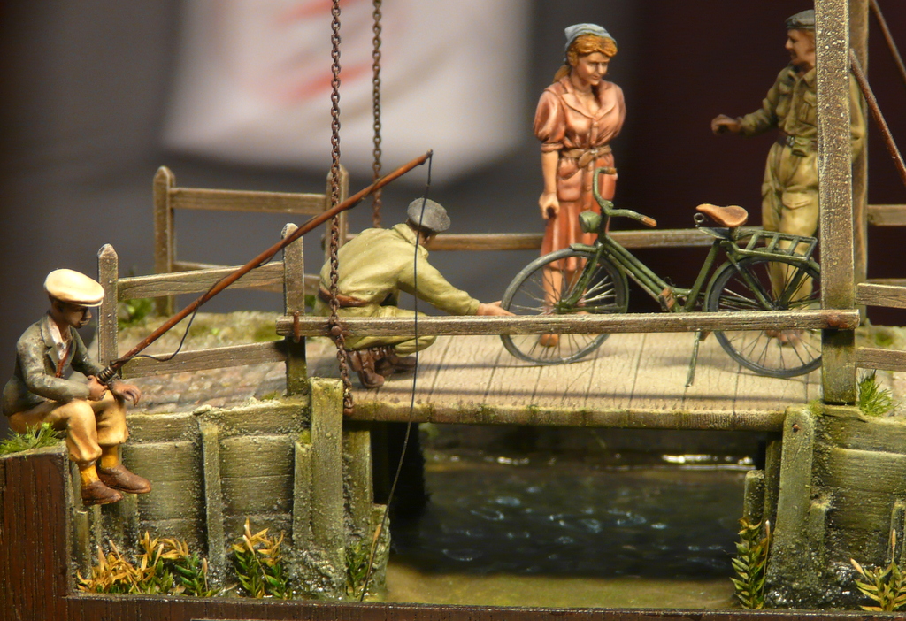 Ce salon se déroule quand même sur trois étages. Un petit tour de ces étages avant le déjeuner. Beaucoup d’exposants, et qualité au rendez-vous. Nous prenons le repas du midi sur place. Début d’après midi, visite tout d’abord de la salle concours. Une chose que l’on ne pouvait que remarquer : la place prise cette année par les figurines. Nombre de figurines multiplié par 4 pour ainsi dire. Et quelles figurines ! Très grande qualité ! Cela peut s’expliquer par le fait d’adopter la formule open : 1 display à tant d’euro où vous avez autant de figurines désirées ou alors inscription à la pièce. Le choix est vite fait par les figurinistes.