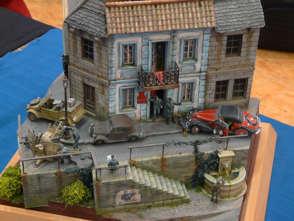 Ce salon se déroule quand même sur trois étages. Un petit tour de ces étages avant le déjeuner. Beaucoup d’exposants, et qualité au rendez-vous. Nous prenons le repas du midi sur place. Début d’après midi, visite tout d’abord de la salle concours. Une chose que l’on ne pouvait que remarquer : la place prise cette année par les figurines. Nombre de figurines multiplié par 4 pour ainsi dire. Et quelles figurines ! Très grande qualité ! Cela peut s’expliquer par le fait d’adopter la formule open : 1 display à tant d’euro où vous avez autant de figurines désirées ou alors inscription à la pièce. Le choix est vite fait par les figurinistes.