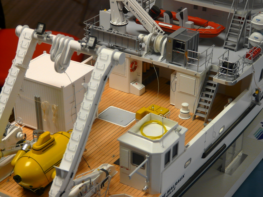 Peut être un peu moins de pièces qu’habituellement dans certaines catégories mais toujours de très bonne facture. A l’étage en dessous (une salle et deux ailes) du bateau bois, du bateau navigant (à signaler le tout dernier de l’ami Jacques, l’André Malraux. Que du travail sur ce bateau ayant été fait d’après plan et quel réalisme)
