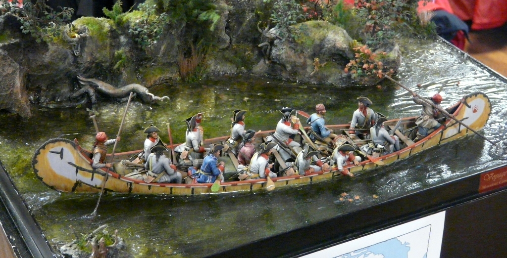 Dimanche 10h30, tout le monde au stand, séance photo presse ( la pub) photo toujours , mais cette fois-ci des pièces présentées sur les stands. De quoi mitrailler ! démo de peinture par nos trois artistes ( Jean-No, Thiébaud et Marc). Déjeuner du dimanche dans un petit resto juste à côté de l’expo. Très sympa et folle ambiance, 6 campistes et 3 gars de Treflez. Une magnifique histoire vraie de pêche à la truite en cuissardes et hélas, avec une triste fin (vous voudriez bien savoir la fin hein …) Tout au long de la journée, démos de peinture organisée par le KMC. Fréquentation tout à fait honorable en ce dimanche.