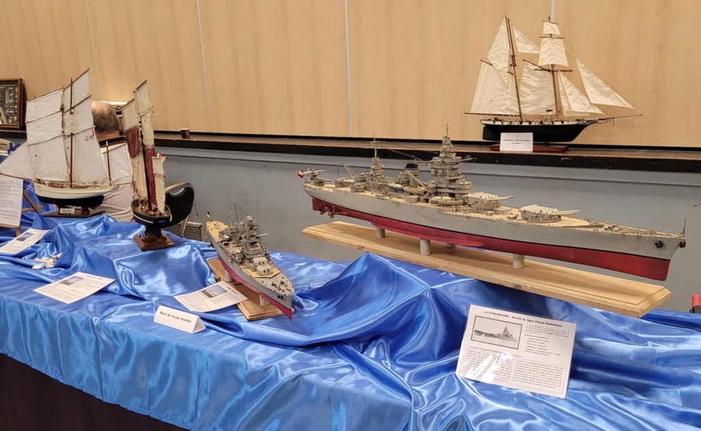 Samedi 19, arrivée à LESNEVEN. Le salut à nos amis du club organisateur et mise en place de nos pièces, (bateaux civils et militaires, figurines et avions). Salle installée un peu avant midi. Un petit tour, histoire de voir ce qui était présenté. Repas du midi au restaurant de la Gare, (si vous vous baladez dans les parages, je vous le recommande fortement). Comme quoi, ces salons servent aussi à découvrir autre chose que la maquette.