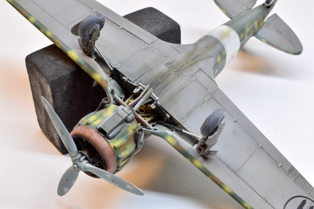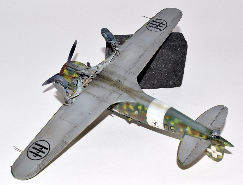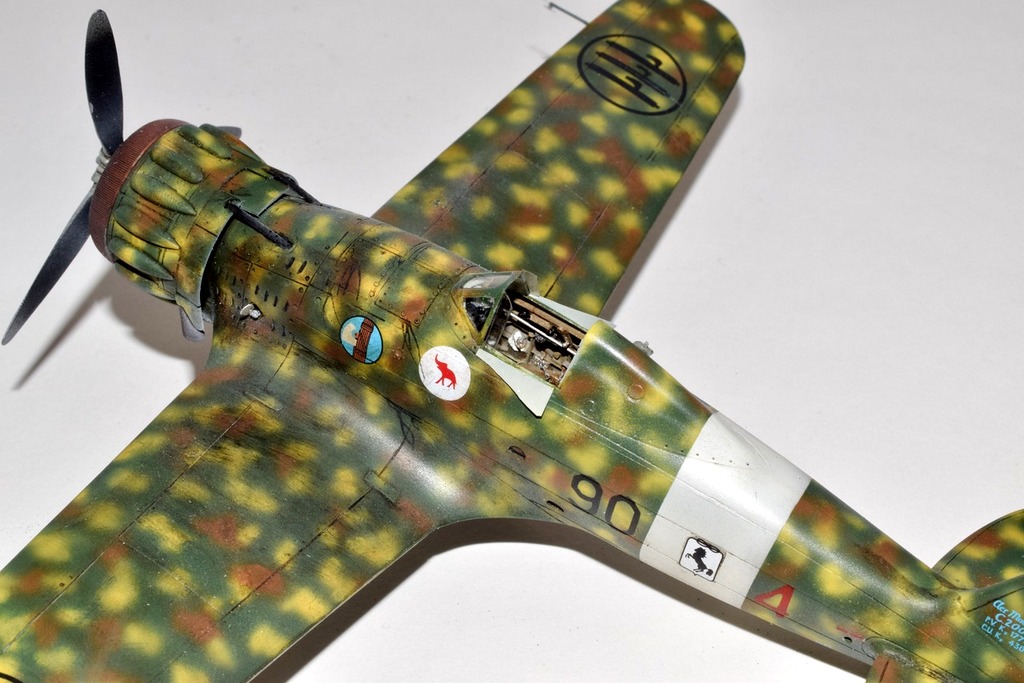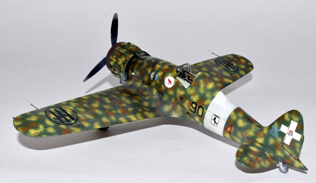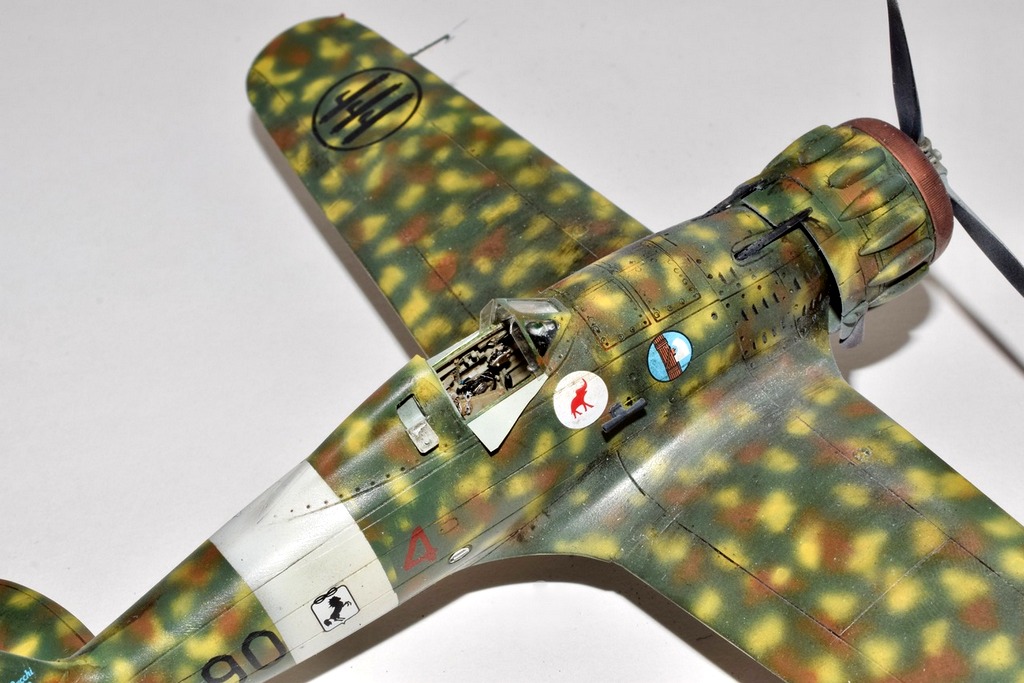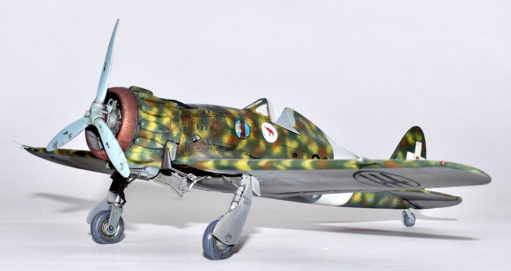 Le Macchi 200 peut être considéré à juste titre comme le meilleur chasseur Italien du début du conflit, bien plus moderne, pourrait-on dire que les Fiat G50 et CR42. Après des débuts difficiles, il fit ses débuts au combat sur les fronts Grec et Albanais, puis fin 41 participa activement à l’offensive sur Malte jusqu’à son remplacement par le Macchi 202. Les 90° et 91° escadrilles du 10° Groupe du 4° Stormo y furent engagées. C’est un de ces avions que j’ai représenté, en Novembre 41 lorsque les capots jaunes sont supprimés. L’avion a été construit par Breda, d’ou la petite croix de Savoie. Le camouflage porté est un fond de Vert Mimetico 2, de taches de Bruno Mimetico et de Giallo Mimetico 4. le dessous est Gris mimetico. La maquette d’Italeri au 48° est une réplique assez simpliste du vrai, elle demande un gros travail de détaillage et une grande maîtrise du roudoudou! Bonnes vacances.