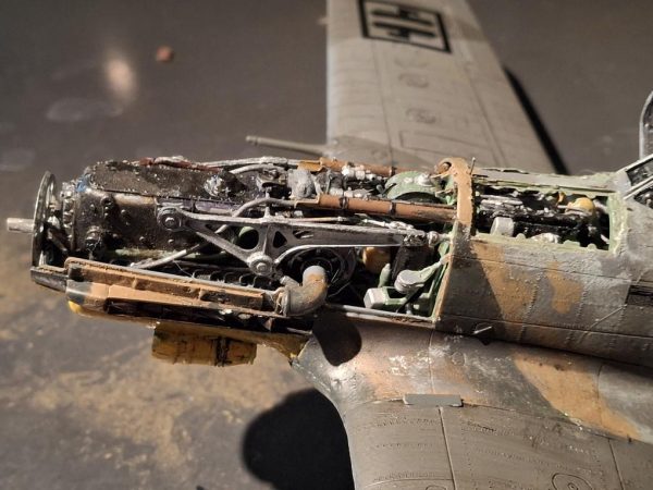 Comme je l’avais dit dans mon post du Macchi C 202 que j’avais volontairement présenté capot moteur fermé bien que le moteur y soit installé, peint et tout et tout, afin de conserver la pureté de lignes de cette machine, dont seuls les Italiens ont le secret, que ce soit pour leurs avions, leur voitures de sport (ou leurs actrices–Aaah ! Claudia…!, Gina…!, Sofia…!,Sabrina…!.La Cicciolina…) euh..le m’égare , revenons à nos avions….je disais donc que j’avais dit que je vous présenterai tout ouvert dans une prochaine réalisation – C’est chose faite avec cette fois une autre production de chez Macchi avec leur 205 qui présente une cellule quasi identique au 202, à part la présence de deux petits tonneaux sous le nez, les radiateurs, dus au nouveau moteur Daimler Benz DB 605 au lieu du 601 de la version précédente. -Avant l’armistice de 1943 l’industrie aéronautique Italienne a produit ses meilleurs chasseurs, la série des 5, grâce à l’emploi de ce moteur qui équipait également les Fiat G 55 Centauro et le Reggiane Re 2005 Sagittario. Je me suis donc attaché à présenter, non seulement le moteur, mais aussi le compartiment des mitrailleuses de capot. Mais trêve de blabla place aux photos.. As I had said in my post about the Macchi C 202, which I had voluntarily presented with the engine hood closed even though it was installed, painted and everything, in order to preserve the purity of lines of this machine, whose secret only the Italians have, whether for their planes, their sports cars (or their actresses–Aaah! Claudia…!, Gina…!, Sofia…!,Sabrina…!.La Cicciolina…) uh.. the me is wandering, let’s get back to our planes…. I was saying that I had said that I would present everything open to you in a future realization – It’s done this time with another production from Macchi with their 205 which has a cell almost identical to the 202, apart from the presence of two small barrels under the nose, the radiators, due to the new Daimler Benz DB 605 engine instead of the 601 from the previous version. -Before the armistice of 1943, the Italian aeronautical industry produced its best fighter jets, the series of 5, thanks to the use of this engine which also equipped the Fiat G 55 Centauro and the Reggiane Re 2005 Sagittario. I therefore focused on presenting, not only the engine, but also the hood machine gun compartment. But enough blah blah blah, the photos..