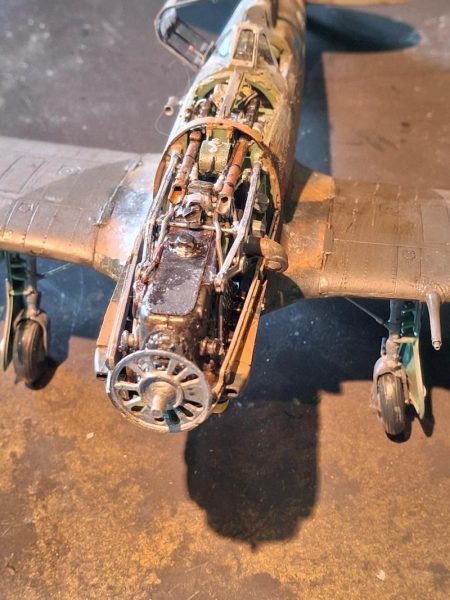 - Le voici en lumière du jour sur mon nouveau spot photo bien moins spectaculaire que le précédent rendu inutilisable par le végétation non entretenue, les trappes du compartiment mitrailleuses sont en place mais non collées Here it is in daylight on my new photo spot, much less spectacular than the previous one made unusable by the unmaintained vegetation, the trapdoors of the machine gun compartment are in place but not glued