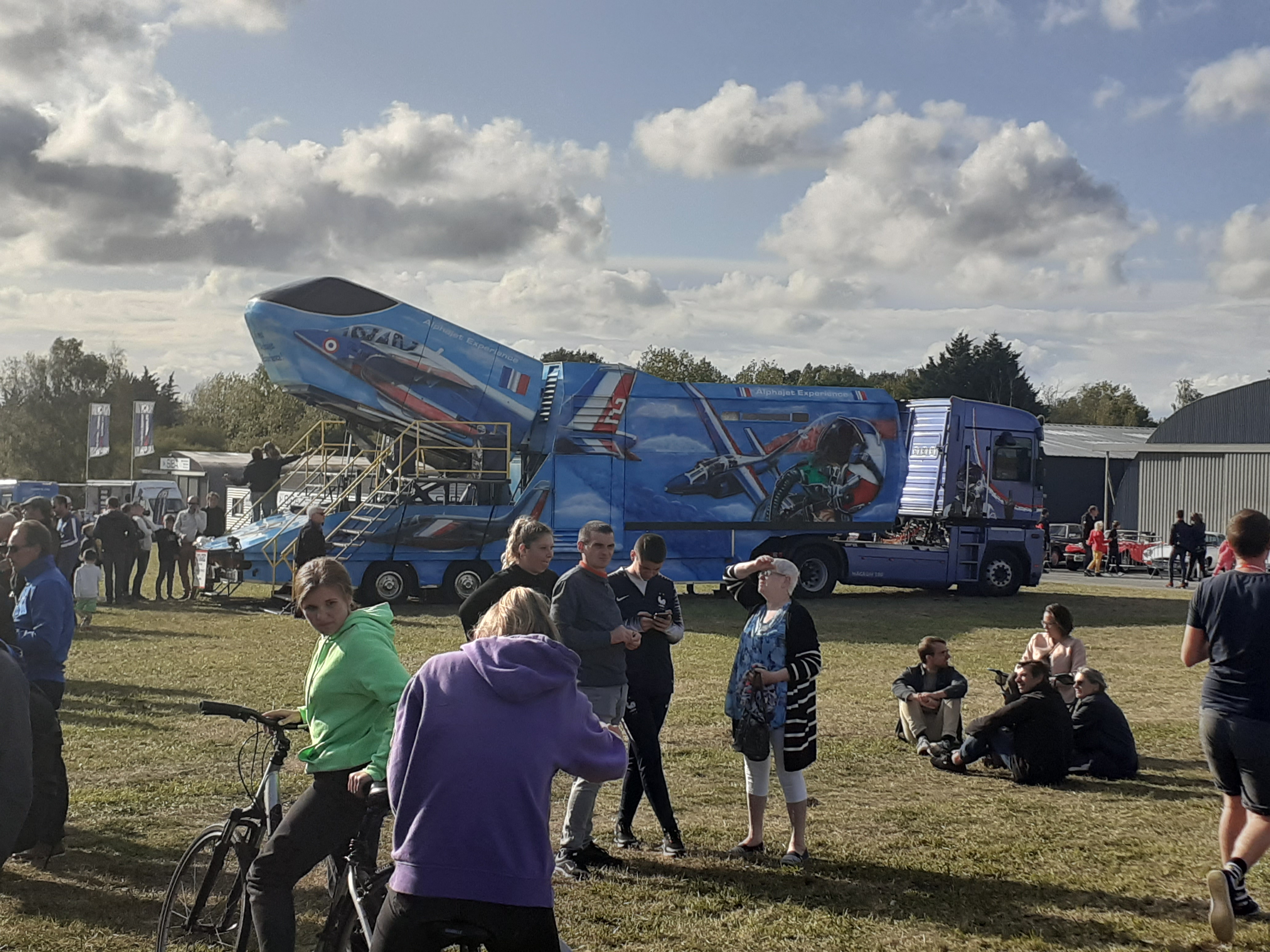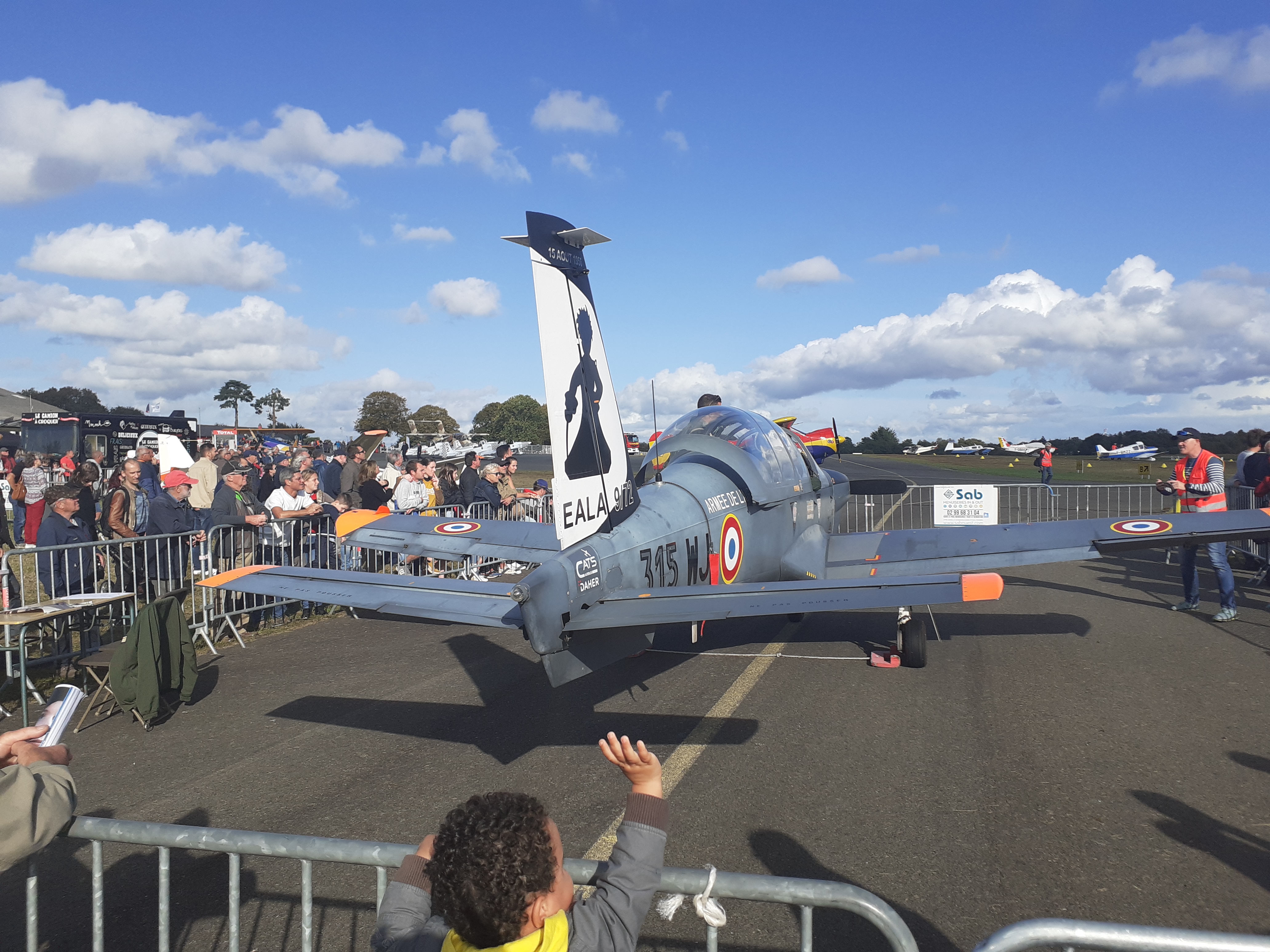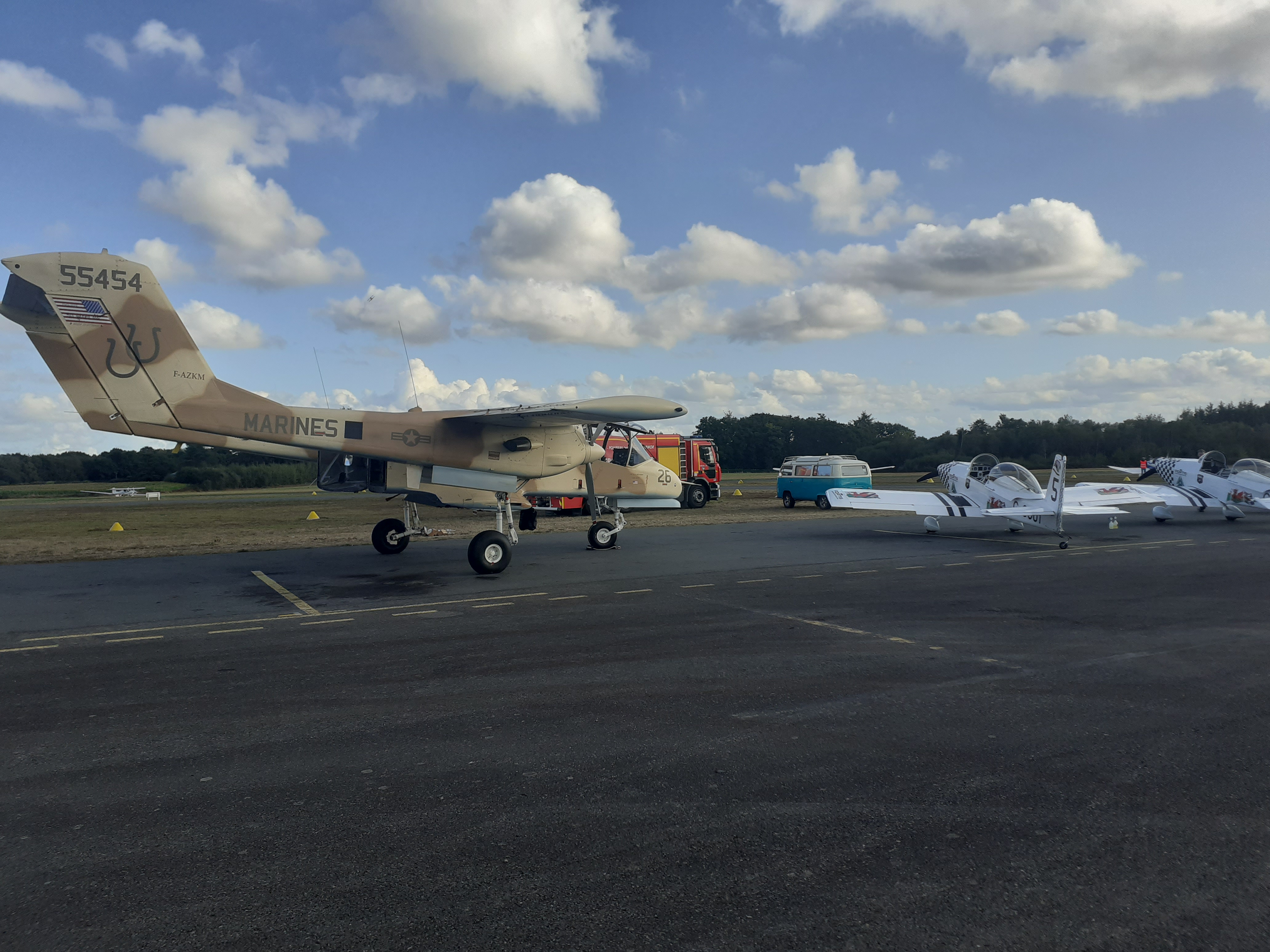On en a pris plein les yeux, notamment avec la formation anglaise composée d’anciens de la RAF qui réalisait des figures surprenantes. Ils utilisaient des fumigènes pour dessiner dans le ciel, notamment un joli cœur offert au public. Nous avons également vu un des champions de voltige qui grimpait en ligne droite jusqu’aux nuages puis se laissait tomber comme une feuille morte avant de reprendre le contrôle de son appareil au dernier moment : très impressionnant ! La façon dont ils pilotent leurs petits engins donne parfois l’impression de voir des avions télécommandés dans le ciel. Bien entendu ce n’est pas le cas et je ne suis pas prêt de monter avec eux 😉 Sur place, il y avait également un simulateur de vol de l’armée de l’air. Des démonstrations de biplans au look ancien qui font toujours leur petit effet étaient également au programme. Mais aussi une démonstration d’hélitreuillage et des parachutistes. Il y a avait également un gros avion à réaction américain (OV 10 A Bronco) qui faisait des loopings tranquillement dans un fracas sonore mémorable. D’autres avions à réaction sont venus combler le spectacle pour un final très réussi.