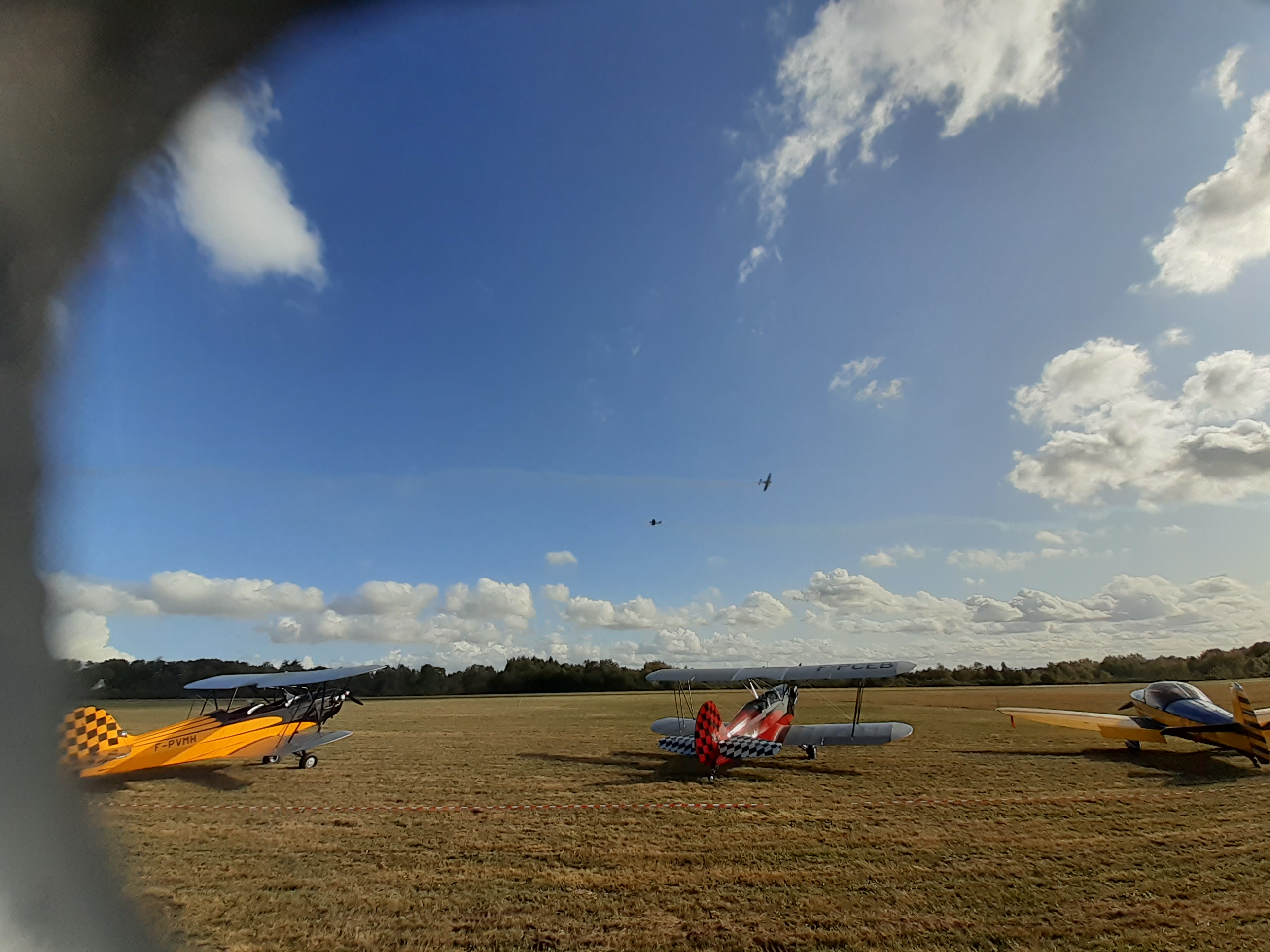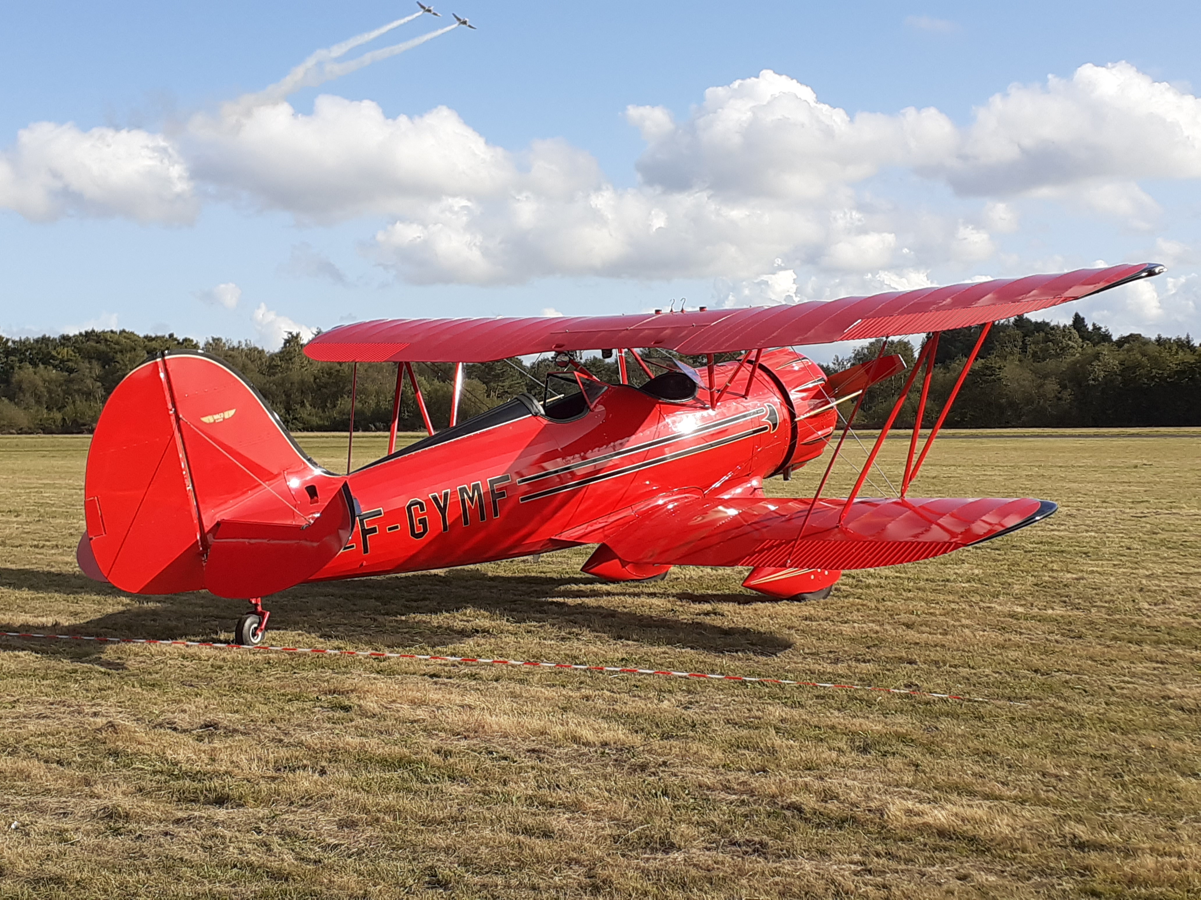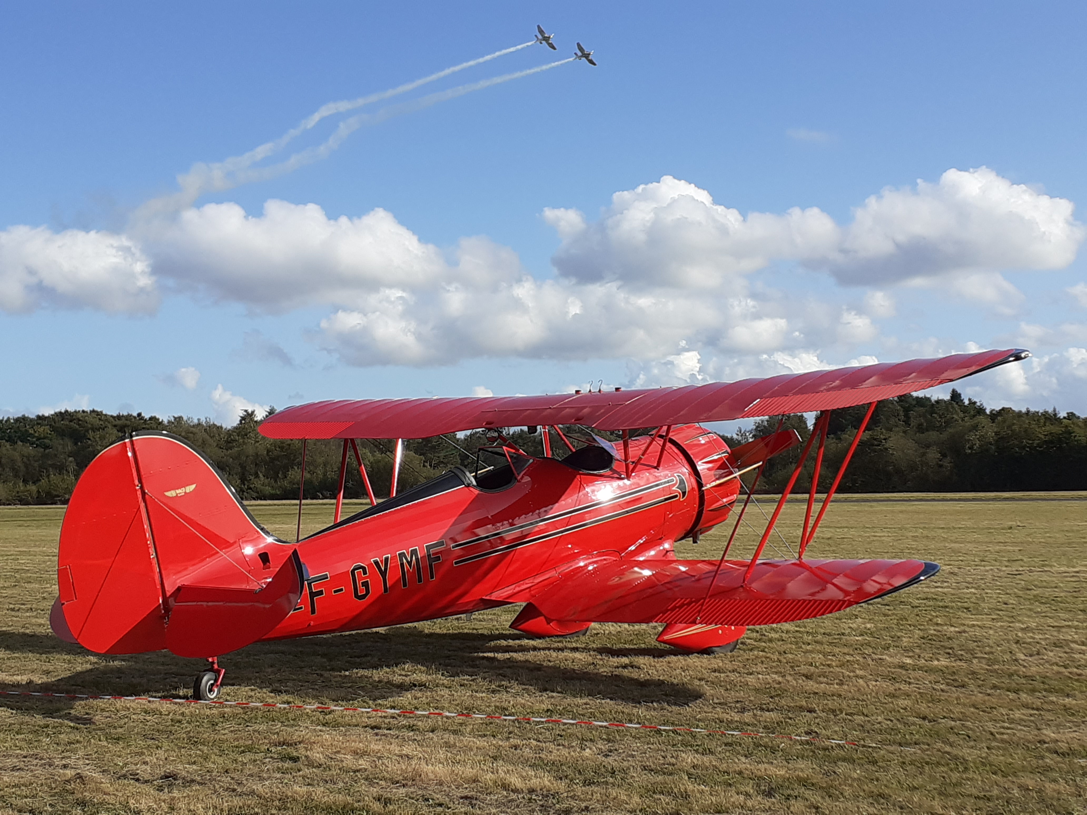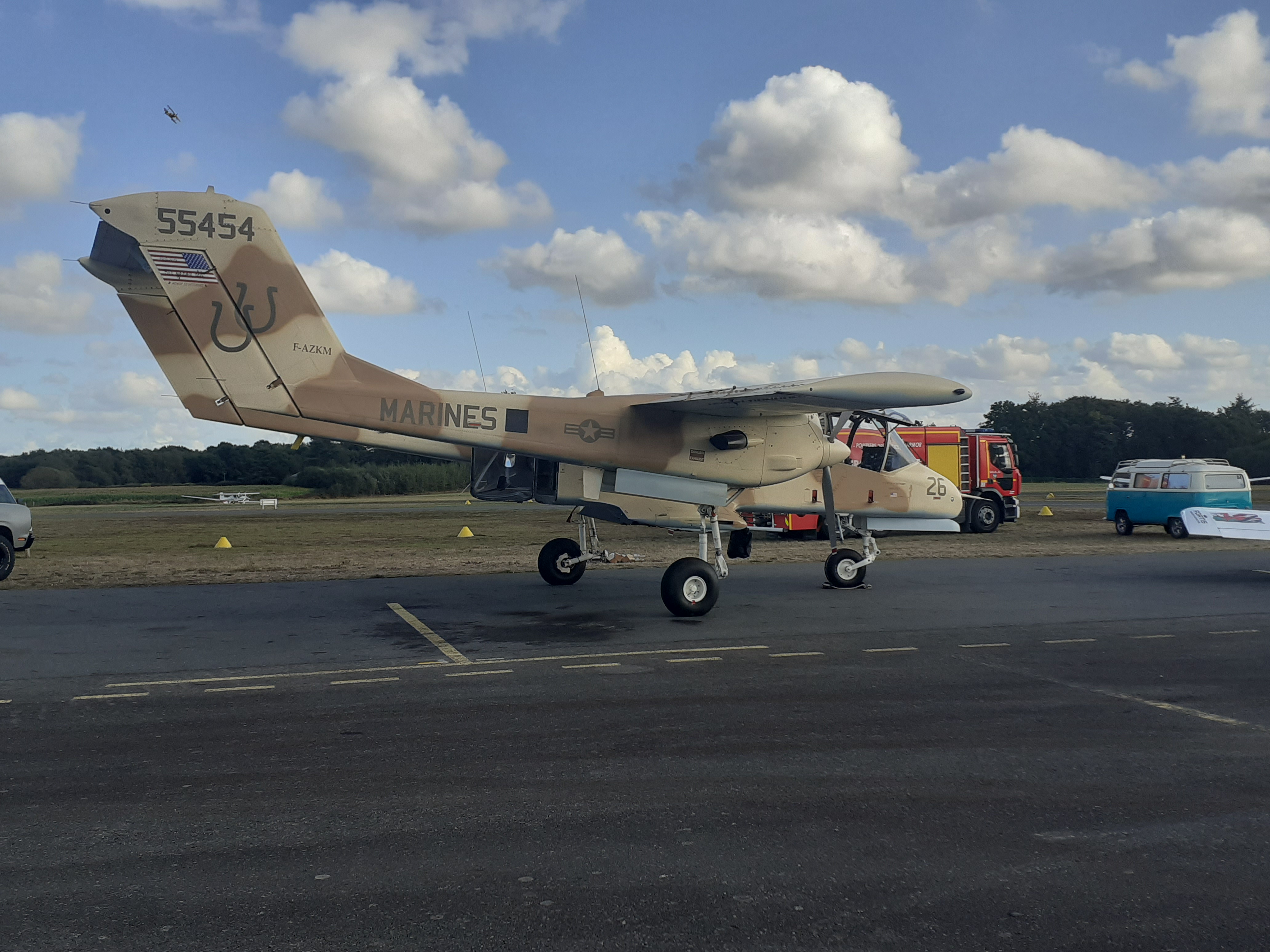 On en a pris plein les yeux, notamment avec la formation anglaise composée d’anciens de la RAF qui réalisait des figures surprenantes. Ils utilisaient des fumigènes pour dessiner dans le ciel, notamment un joli cœur offert au public. Nous avons également vu un des champions de voltige qui grimpait en ligne droite jusqu’aux nuages puis se laissait tomber comme une feuille morte avant de reprendre le contrôle de son appareil au dernier moment : très impressionnant ! La façon dont ils pilotent leurs petits engins donne parfois l’impression de voir des avions télécommandés dans le ciel. Bien entendu ce n’est pas le cas et je ne suis pas prêt de monter avec eux 😉 Sur place, il y avait également un simulateur de vol de l’armée de l’air. Des démonstrations de biplans au look ancien qui font toujours leur petit effet étaient également au programme. Mais aussi une démonstration d’hélitreuillage et des parachutistes. Il y a avait également un gros avion à réaction américain (OV 10 A Bronco) qui faisait des loopings tranquillement dans un fracas sonore mémorable. D’autres avions à réaction sont venus combler le spectacle pour un final très réussi.