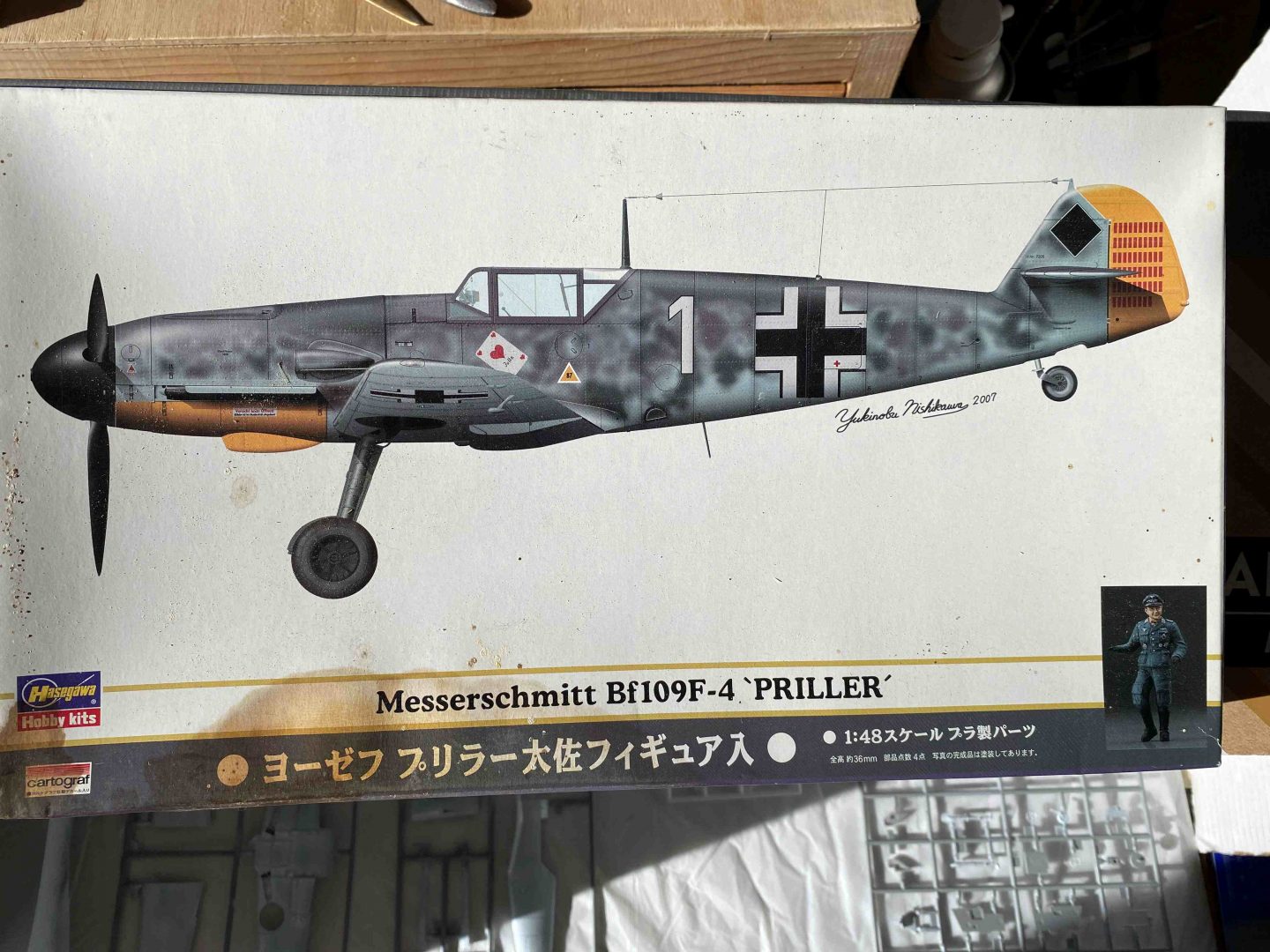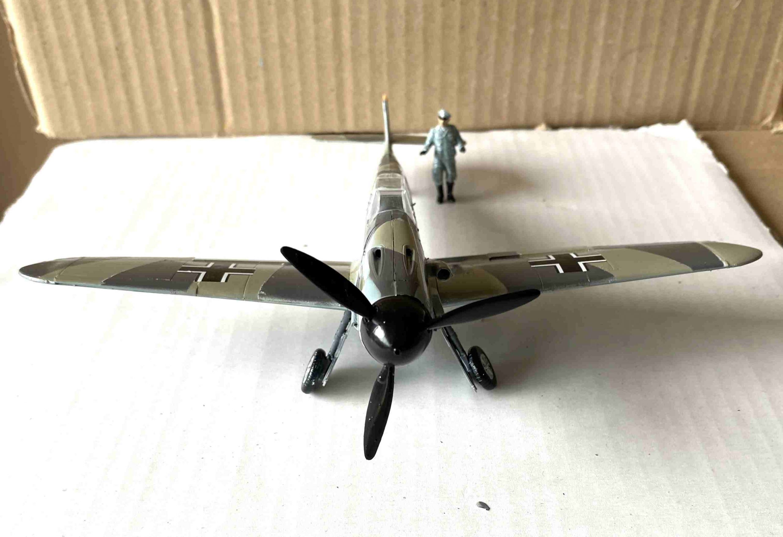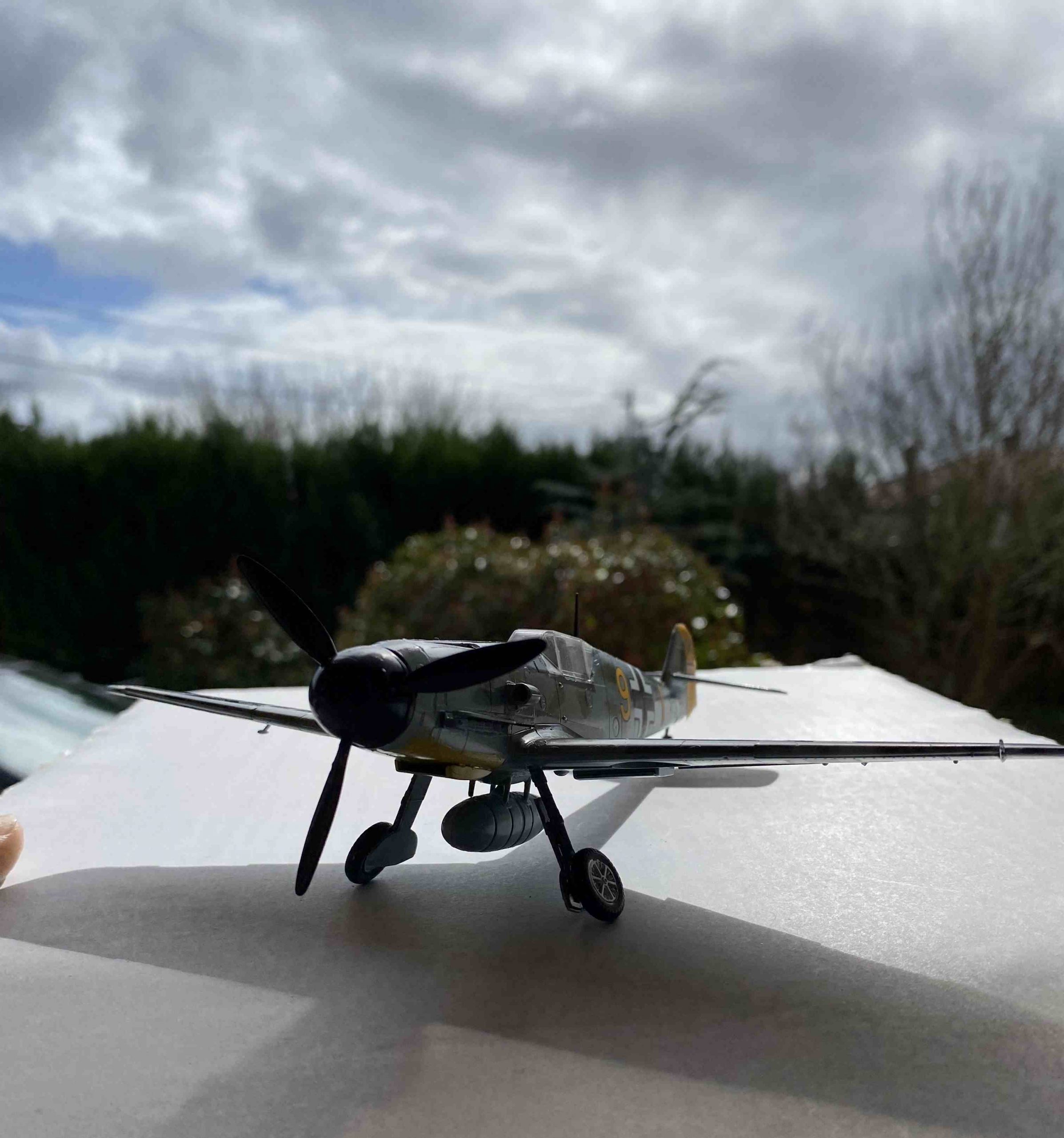 Coucou ! Me revoilou, après une période creuse, dûe à des modifications d’emplacement de mon petit atelier maquette !!! ma femme m’ayant relégué dans le garage, j’ai dû le réaménager, me disant que j’aurais plus de place et que je serais très bien avec mes odeurs de peintures… J’ai pu me rendre contre qu’elle me racontait la messe !!! Encore moins de place et en plus, coincé avec ses cartons de déco Noël ( c’est sa passion, nul n’est parfait… ) Du coup, pour revenir à ma passion temporairement interrompue, j’ai redémarré avec un petit avion qui datait d’une époque révolue pour me refaire la main… Le Messerschmitt BF 109F-4’Priller’ au 1/48 ème, petit avion de 73 pièces Chasseur monomoteur, monoplace conçu par l’ingénieur allemand du même nom « Messerschmitt » pour équiper la Luftwafe naissante en 1935. Un petit lien pour les curieux de l’histoire de cet oiseau !! Hey! I’m back after a slow period, due to changes in the location of my small model workshop!!! my wife having relegated me to the garage, I had to rearrange it, telling myself that I would have more space and that I would be very good with my smells of paintings… I was able to go against her telling me about the mass!!! Even less space and on top of that, stuck with his Christmas deco boxes (it’s his passion, nobody’s perfect…) So, to return to my temporarily interrupted passion, I restarted with a small plane from a bygone era to get my hand back on track… The Messerschmitt BF 109F-4’Priller’ in 1/48th, a small 73-piece single-engined fighter aircraft designed by the German engineer of the same name « Messerschmitt » to equip the nascent Luftwafe in 1935. A little link for those curious about the story of this bird!!