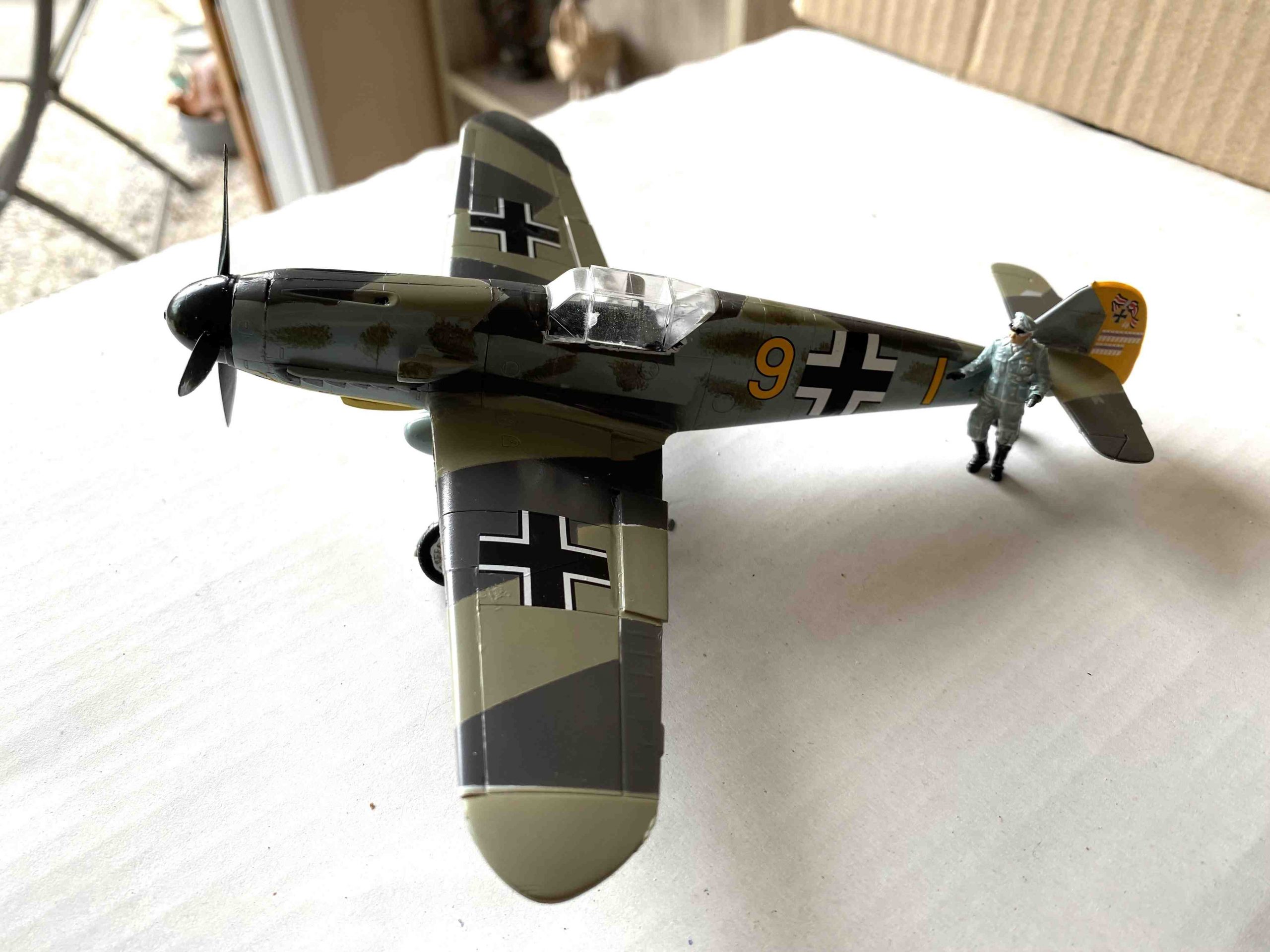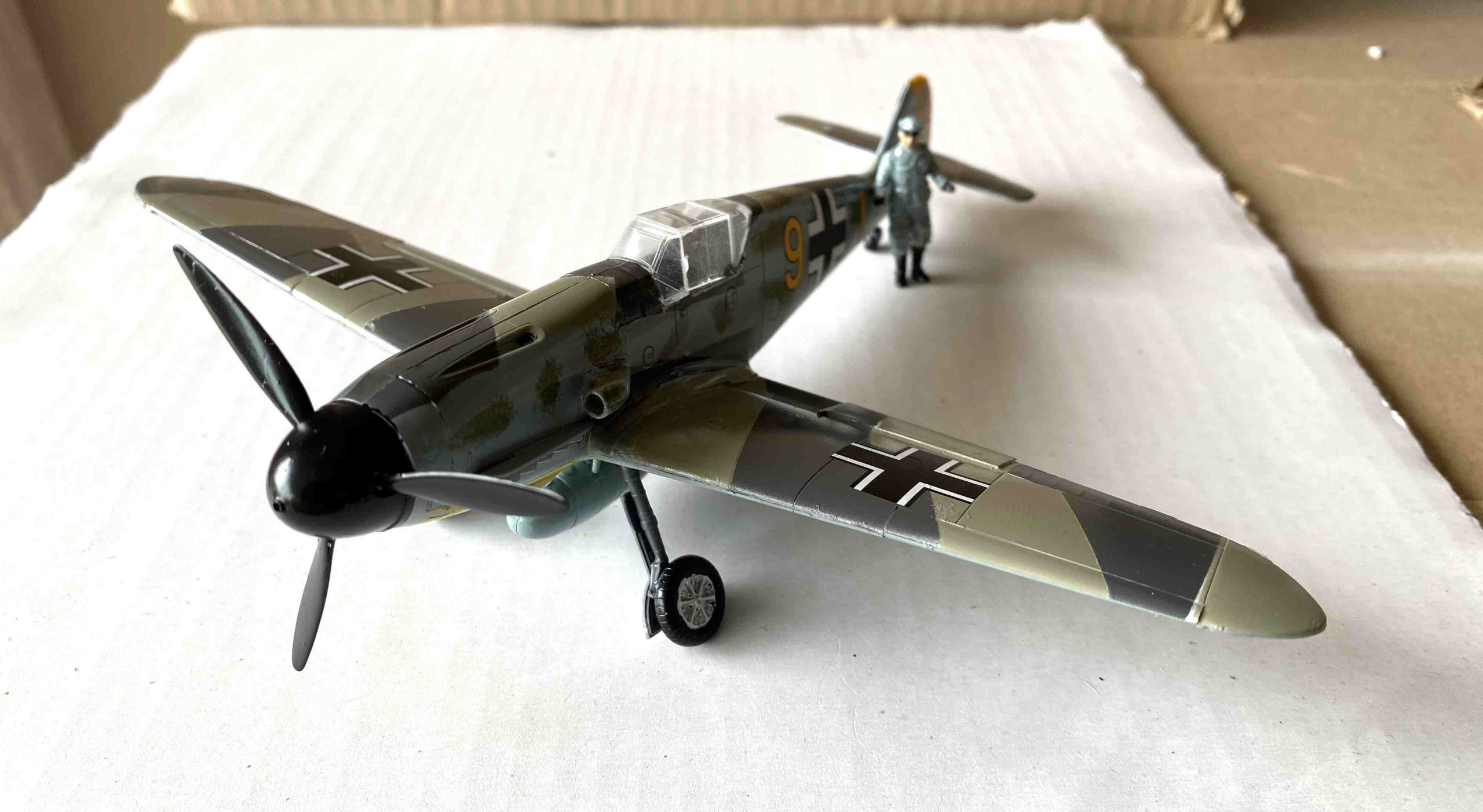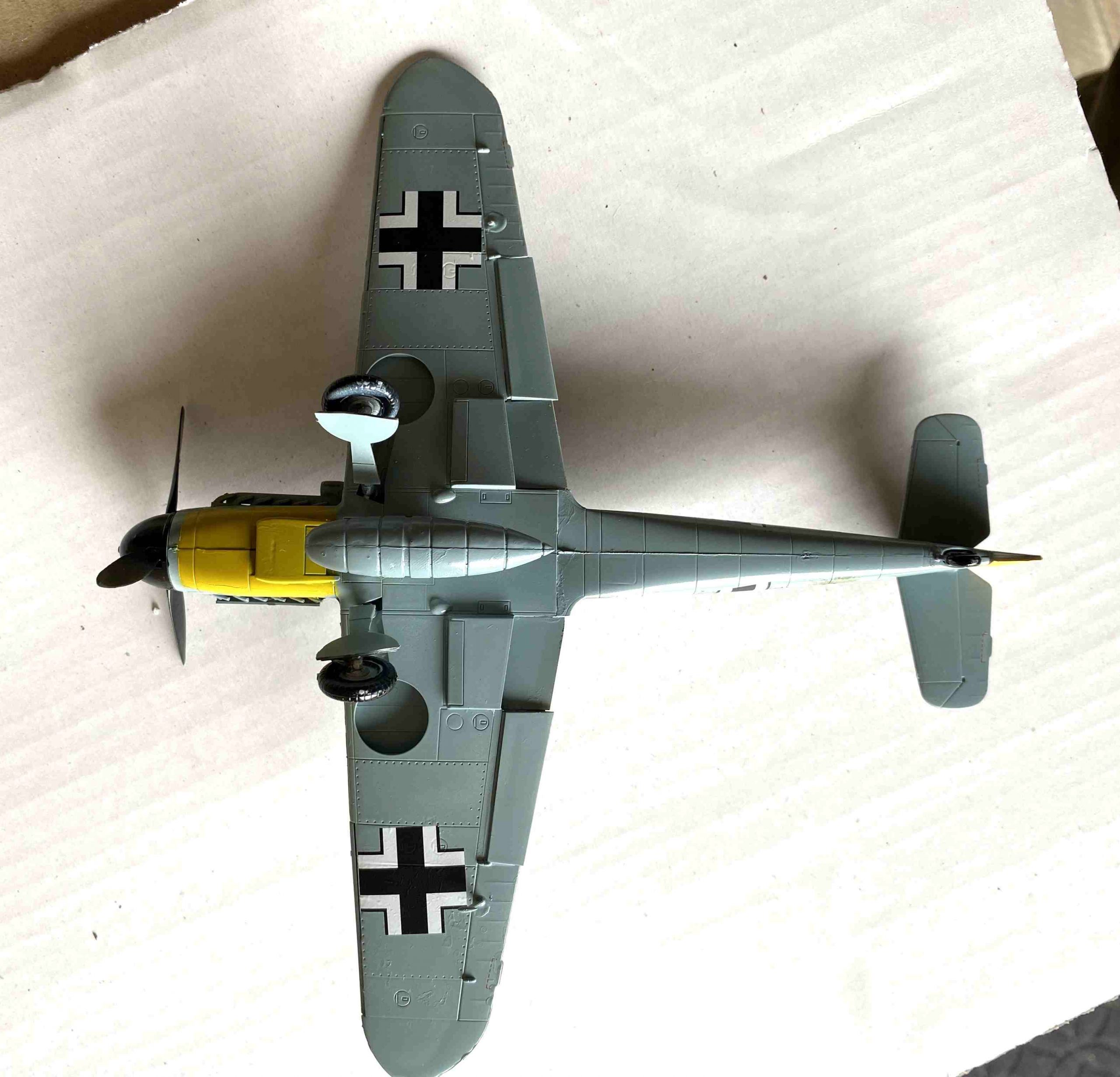 Coucou ! Me revoilou, après une période creuse, dûe à des modifications d’emplacement de mon petit atelier maquette !!! ma femme m’ayant relégué dans le garage, j’ai dû le réaménager, me disant que j’aurais plus de place et que je serais très bien avec mes odeurs de peintures… J’ai pu me rendre contre qu’elle me racontait la messe !!! Encore moins de place et en plus, coincé avec ses cartons de déco Noël ( c’est sa passion, nul n’est parfait… ) Du coup, pour revenir à ma passion temporairement interrompue, j’ai redémarré avec un petit avion qui datait d’une époque révolue pour me refaire la main… Le Messerschmitt BF 109F-4’Priller’ au 1/48 ème, petit avion de 73 pièces Chasseur monomoteur, monoplace conçu par l’ingénieur allemand du même nom « Messerschmitt » pour équiper la Luftwafe naissante en 1935. Un petit lien pour les curieux de l’histoire de cet oiseau !! Hey! I’m back after a slow period, due to changes in the location of my small model workshop!!! my wife having relegated me to the garage, I had to rearrange it, telling myself that I would have more space and that I would be very good with my smells of paintings… I was able to go against her telling me about the mass!!! Even less space and on top of that, stuck with his Christmas deco boxes (it’s his passion, nobody’s perfect…) So, to return to my temporarily interrupted passion, I restarted with a small plane from a bygone era to get my hand back on track… The Messerschmitt BF 109F-4’Priller’ in 1/48th, a small 73-piece single-engined fighter aircraft designed by the German engineer of the same name « Messerschmitt » to equip the nascent Luftwafe in 1935. A little link for those curious about the story of this bird!!