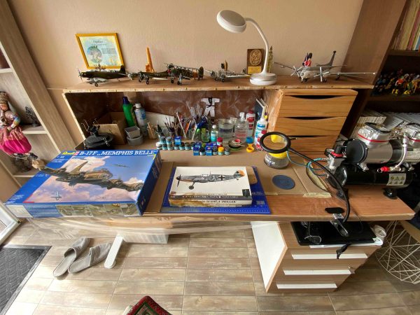 ) Salutations à tous et à très bientôt au Salon Campi !!! Well, I’ll let you discover my beautiful plane and as a bonus, I’ll show you my little workshop!! See you next time for, I hope, a better success, the Memphis Belle, B-17F at 1/48th!! I can’t wait!!! (that’s it, I’m starting to stumble!!!) Greetings to all and see you very soon at the Campi Salon!!!