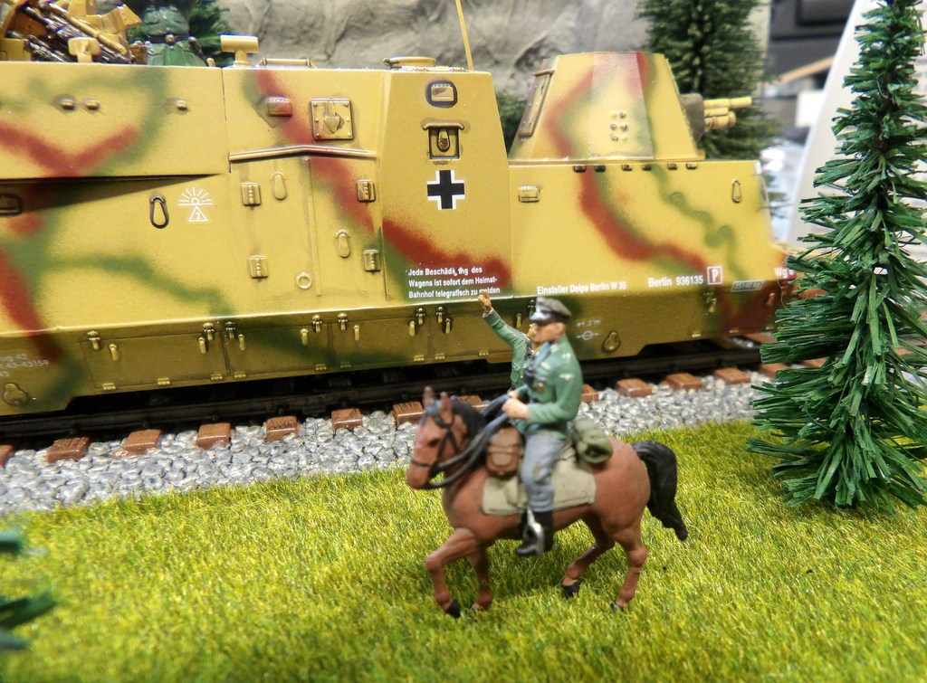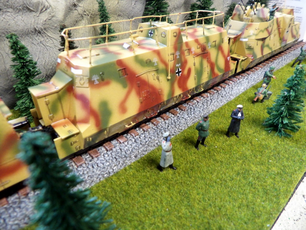 Voulant sortir des sentiers battus après le lourd chantier du dock flottant et de l’USS TEXAS au 350 ème, j’ai mis la main sur une loco blindée Allemande au 1/72. Le militaria n’étant pas ma tasse de thé, je voyais là, une pause dans les interminables chantiers d’un an et un joli défi peinture à faire le camouflage à l’aéro. La loco est une  BR 57 de la marque HOBBY BOSS. Le montage est facile, tout va en place sans un gramme de mastic. Fier de mon montage, après une couche d’apprêt blanc mat, j’ai attaqué le défi peinture à l’aéro. Et bééééééééé ……… malgré mon vieux et fidèle BADGER 360, j’ai (excusez-moi du terme mais c’est ce qui se rapproche le mieux de la situation)  « chié la peinture ». Trop de crachotis, bref ! moment de désespérance qui se termine, comme d’habitude, par une mise au placard dudit joli modèle. Quelques semaines plus tard (voir beaucoup) j’ai repris la loco, après trois séances de décapage au DECAPFOUR, où toutes les petites pièces ont pris la fuite, à mon insu, dans l’évier de la cuisine (petit conseil : faire cette manipe quand Madame n’est pas là !), j’ai mis ma loco à nue.  Remise en place des petites pièces faites en scratch ou trouvées dans la boîte à rabiot. Re-apprêtage, teinte de sable GUNZE…… Entre temps, j’ai acquis pour moins de 25 euros un aéro avec trois aiguilles et buses de tailles différentes (je vous mets le lien si intéréssé). Comme quoi, il n’est pas nécessaire de se ruiner pour notre loisir.  Wanting to get off the beaten track after the heavy shipyard of the floating dock and the USS TEXAS in 350 th, I got my hands on a German armored locomotive in 1/72. Militaria not being my cup of tea, I saw there, a break in the endless one-year projects and a nice challenge painting to make the camouflage with the aero. The loco is a BR 57 from the brand HOBBY BOSS. The assembly is easy, everything goes into place without a gram of putty. Proud of my assembly, after a coat of matte white primer, I started the paint challenge with aero. And béééééééé ……… despite my old and faithful BADGER 360, I (excuse me for the term but this is what comes closest to the situation) « shied the painting ». Too much spitting, in short! moment of despair that ends, as usual, with a closet said pretty model. A few weeks later (see many) I took over the loco, after three sessions of stripping at DECAPFOUR, where all the small parts fled, without my knowledge, in the kitchen sink (little advice: do this manipe when Madam is not there!), I laid my loco bare.  Put back the small pieces made in scratch or found in the rabiot box. Re-finishing, sand shade GUNZE… Meanwhile, I bought for less than 25 euros an aero with three needles and nozzles of different sizes (I put you the link if interested). Like what, it is not necessary to ruin for our leisure.