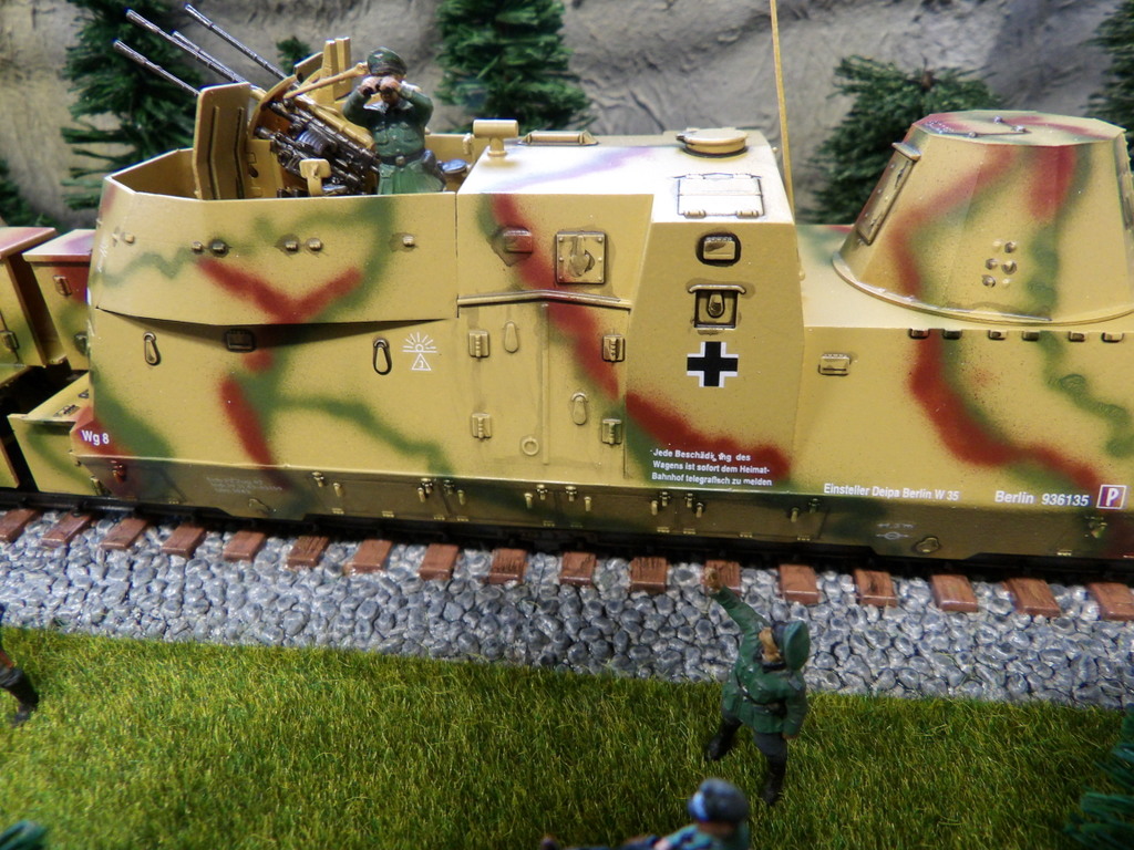 Voulant sortir des sentiers battus après le lourd chantier du dock flottant et de l’USS TEXAS au 350 ème, j’ai mis la main sur une loco blindée Allemande au 1/72. Le militaria n’étant pas ma tasse de thé, je voyais là, une pause dans les interminables chantiers d’un an et un joli défi peinture à faire le camouflage à l’aéro. La loco est une BR 57 de la marque HOBBY BOSS. Le montage est facile, tout va en place sans un gramme de mastic. Fier de mon montage, après une couche d’apprêt blanc mat, j’ai attaqué le défi peinture à l’aéro. Et bééééééééé ……… malgré mon vieux et fidèle BADGER 360, j’ai (excusez-moi du terme mais c’est ce qui se rapproche le mieux de la situation) « chié la peinture ». Trop de crachotis, bref ! moment de désespérance qui se termine, comme d’habitude, par une mise au placard dudit joli modèle. Quelques semaines plus tard (voir beaucoup) j’ai repris la loco, après trois séances de décapage au DECAPFOUR, où toutes les petites pièces ont pris la fuite, à mon insu, dans l’évier de la cuisine (petit conseil : faire cette manipe quand Madame n’est pas là !), j’ai mis ma loco à nue. Remise en place des petites pièces faites en scratch ou trouvées dans la boîte à rabiot. Re-apprêtage, teinte de sable GUNZE…… Entre temps, j’ai acquis pour moins de 25 euros un aéro avec trois aiguilles et buses de tailles différentes (je vous mets le lien si intéréssé). Comme quoi, il n’est pas nécessaire de se ruiner pour notre loisir. Wanting to get off the beaten track after the heavy shipyard of the floating dock and the USS TEXAS in 350 th, I got my hands on a German armored locomotive in 1/72. Militaria not being my cup of tea, I saw there, a break in the endless one-year projects and a nice challenge painting to make the camouflage with the aero. The loco is a BR 57 from the brand HOBBY BOSS. The assembly is easy, everything goes into place without a gram of putty. Proud of my assembly, after a coat of matte white primer, I started the paint challenge with aero. And béééééééé ……… despite my old and faithful BADGER 360, I (excuse me for the term but this is what comes closest to the situation) « shied the painting ». Too much spitting, in short! moment of despair that ends, as usual, with a closet said pretty model. A few weeks later (see many) I took over the loco, after three sessions of stripping at DECAPFOUR, where all the small parts fled, without my knowledge, in the kitchen sink (little advice: do this manipe when Madam is not there!), I laid my loco bare. Put back the small pieces made in scratch or found in the rabiot box. Re-finishing, sand shade GUNZE… Meanwhile, I bought for less than 25 euros an aero with three needles and nozzles of different sizes (I put you the link if interested). Like what, it is not necessary to ruin for our leisure.