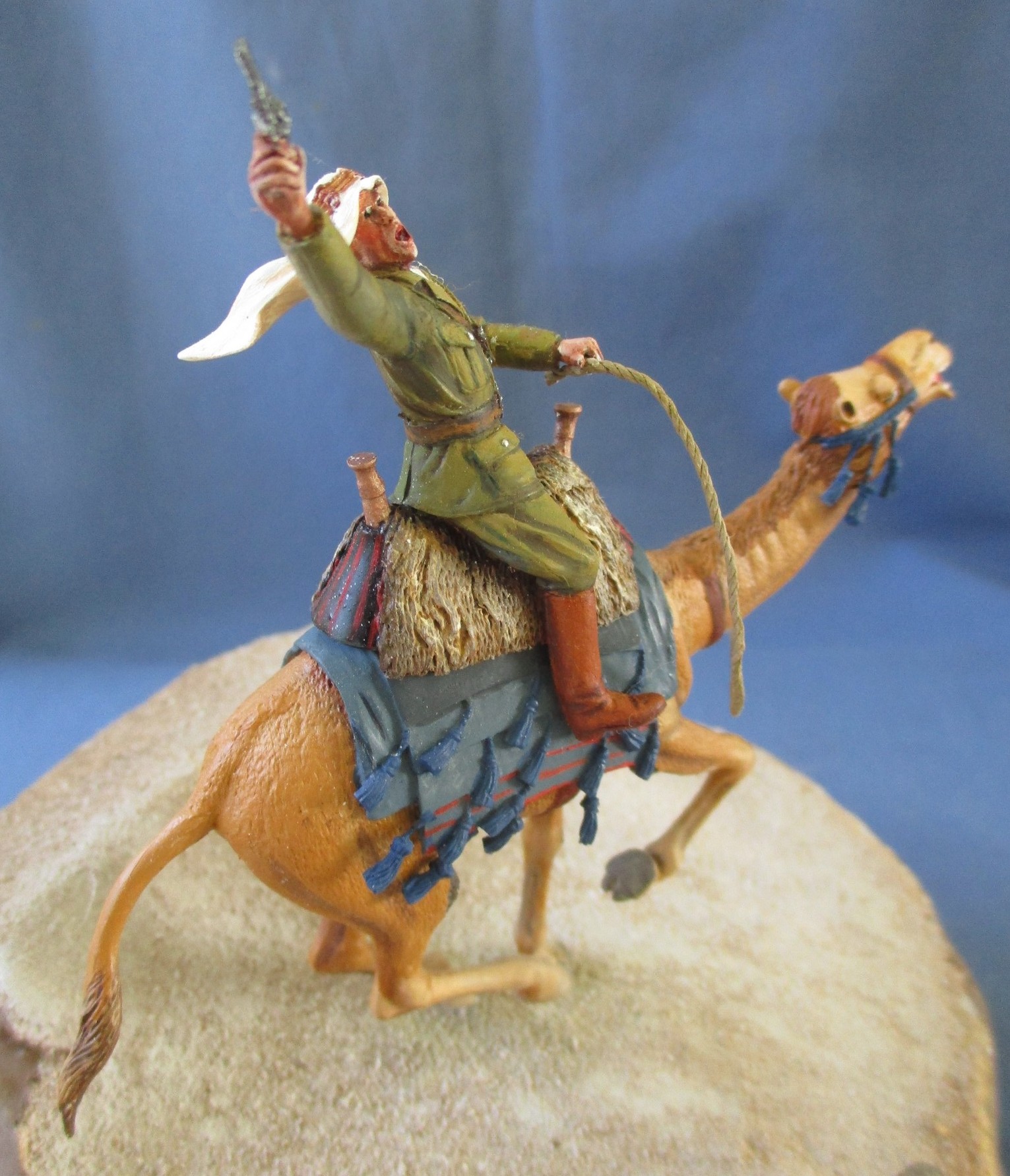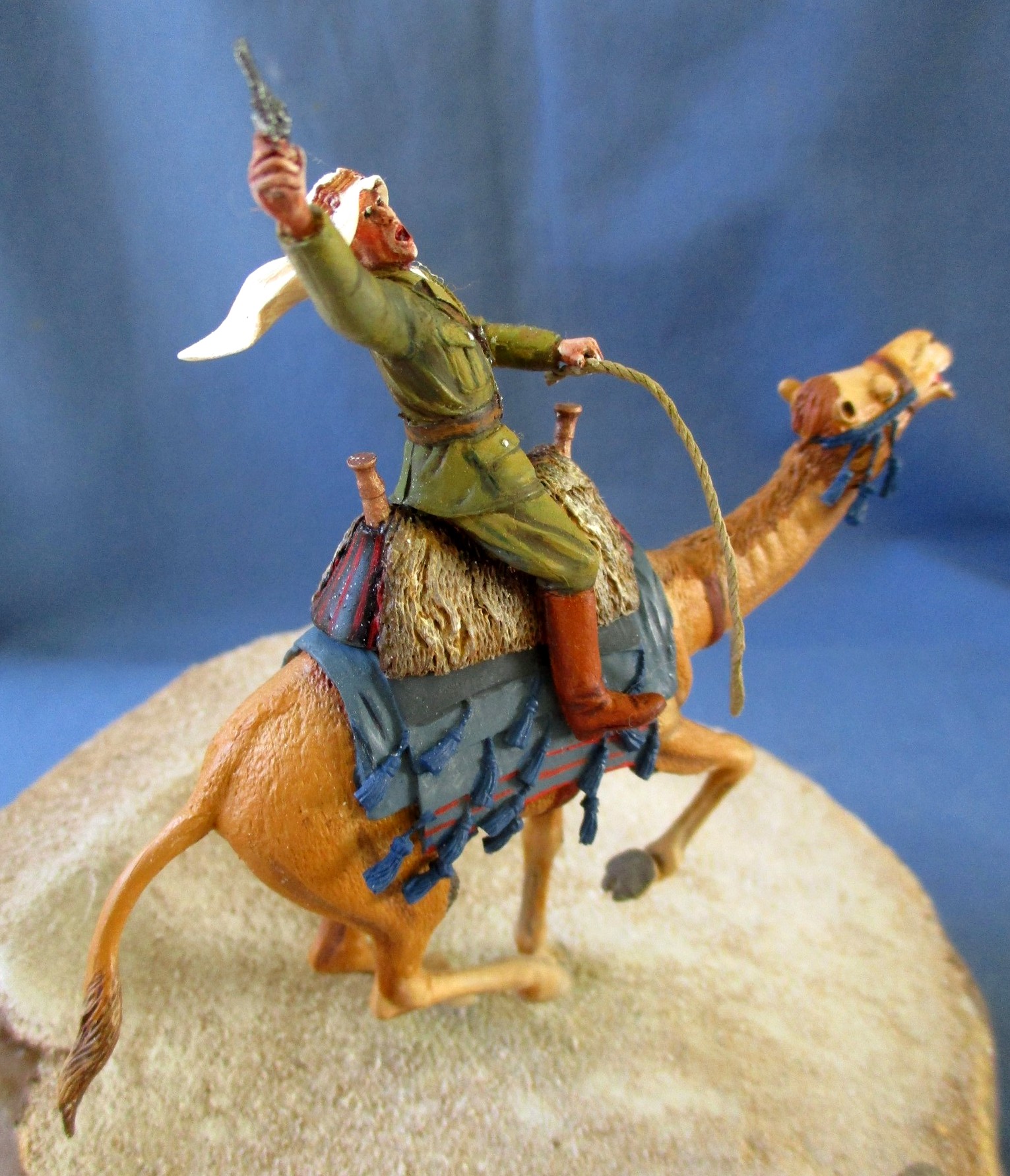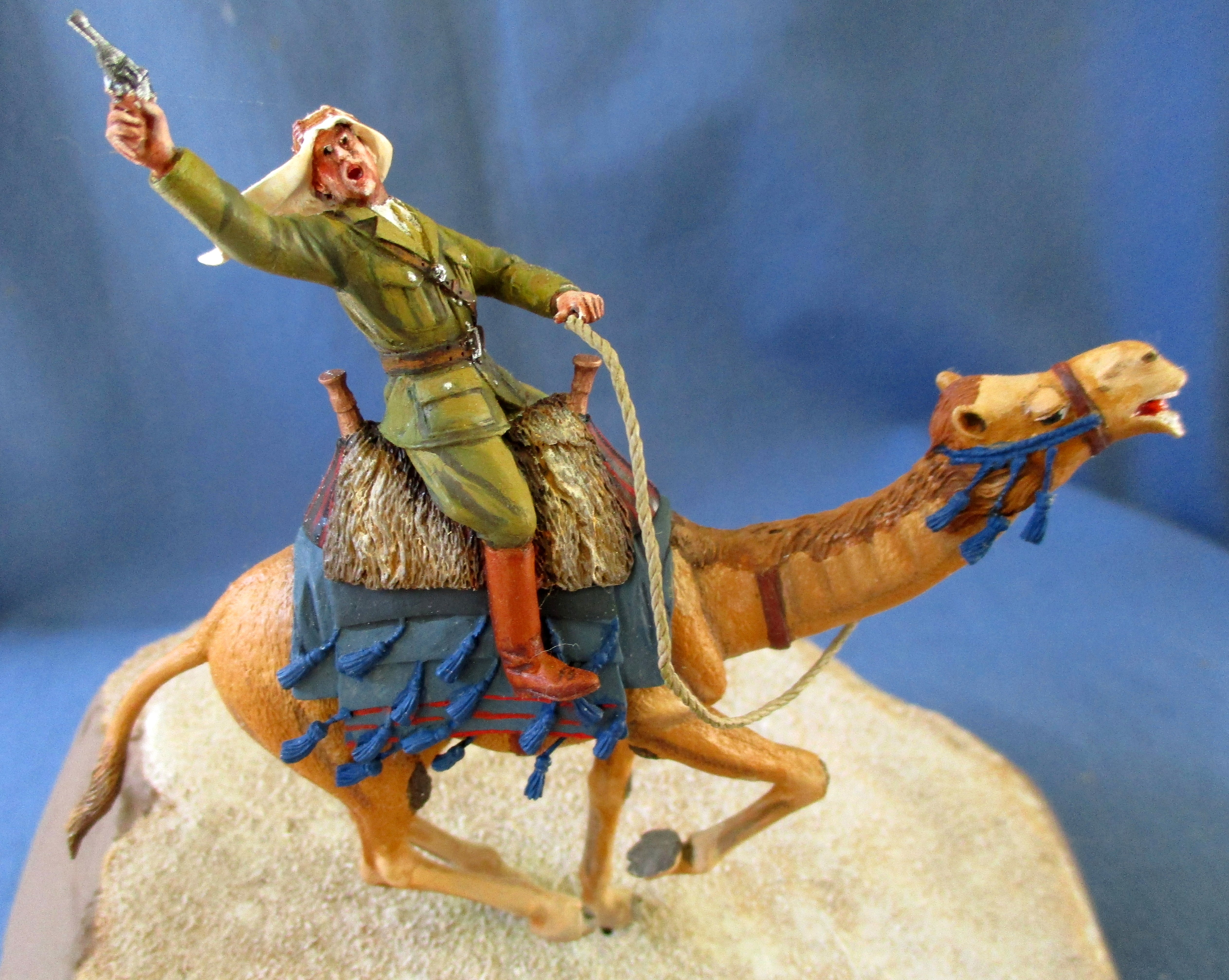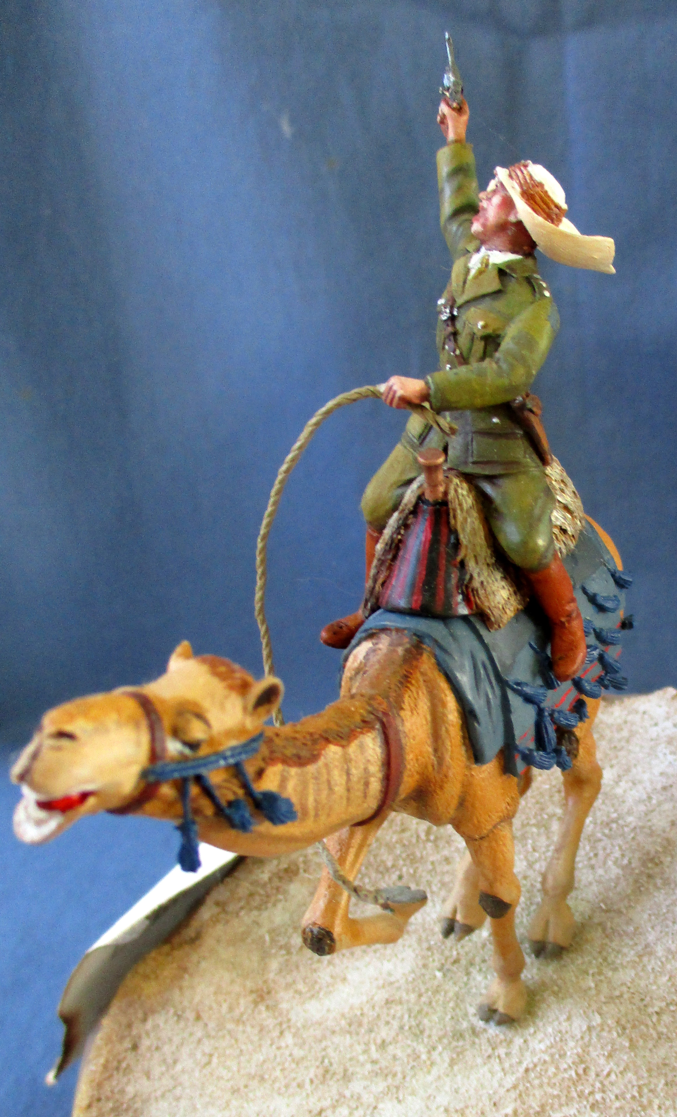 Un mémorial du CAMEL CORPS se situe à LONDRES.41 NEO ZELANDAIS de cette brigade ont trouvé la mort durant la WW1. Ce bataillon ANZAC a été dissous en Juin 1918.:::::::::::::::::En figurine 54mm:: Sous la marque DEF MODELS ,anciennement DOUG S ORIGINAL: le chameau et le cavalier existe avec la réf ::DEFDE 35006.Le montage est aisé avec les quelques pièces de ce coffret . Je mets quelques réserves sur le bâti de la selle !!!!! Cet ensemble est peint à l huile .DECOR :sur 1 petite butte d une dune de sable du MOYEN ORIENT ,le cavalier se lance à l assaut des OTTOMANS ( Turcs ), sous le regard d un FENNEC MANTIS MINIATURES (POLOGNE) BONNE CHEVAUCHEE A PROPOS DU CAMEL CORPS