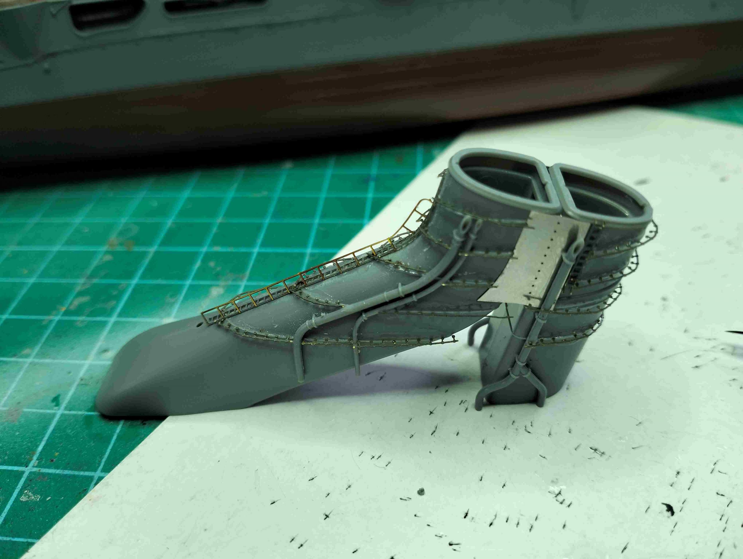 Après avoir enfin terminé le JUNYO, et encore abandonné le KAGA, pourtant presque terminé (un gros morceau aussi !), je voulais faire quelque chose de plus léger. «Je veux du light» criait-il (tout seul le bougre), dans son atelier. Du moins, c’était ce que je pensais car le résultat final, comme d’habitude prend de la place et du temps. En observant mon stock de plus de 40 ans, j’hésitais : voiture ? avion ? bateau? Après avoir ouvert plusieurs boîtes et palpé de nombreuses grappes, je ne trouvais ni la satisfaction, ni la motivation (je crois que l’on connaît tous ce problème ?). Mes yeux se sont enfin arrêtés sur le très beau IJN TONE de chez TAMIYA au 350. Un très beau kit sorti en 2011. After finally finishing the JUNYO, and once again abandoning the KAGA, which was almost done (another big project!), I wanted to do something lighter. « I want something light, » he shouted (all alone, the poor guy) in his workshop. At least, that’s what I thought, because the final result, as usual, takes up space and time. Looking at my stock of over 40 years, I hesitated: car? plane? boat? After opening several boxes and handling numerous sprues, I found neither satisfaction nor motivation (I guess we all know that problem?). My eyes finally landed on the very beautiful IJN TONE from TAMIYA in 1/350. A very nice kit released in 2011.