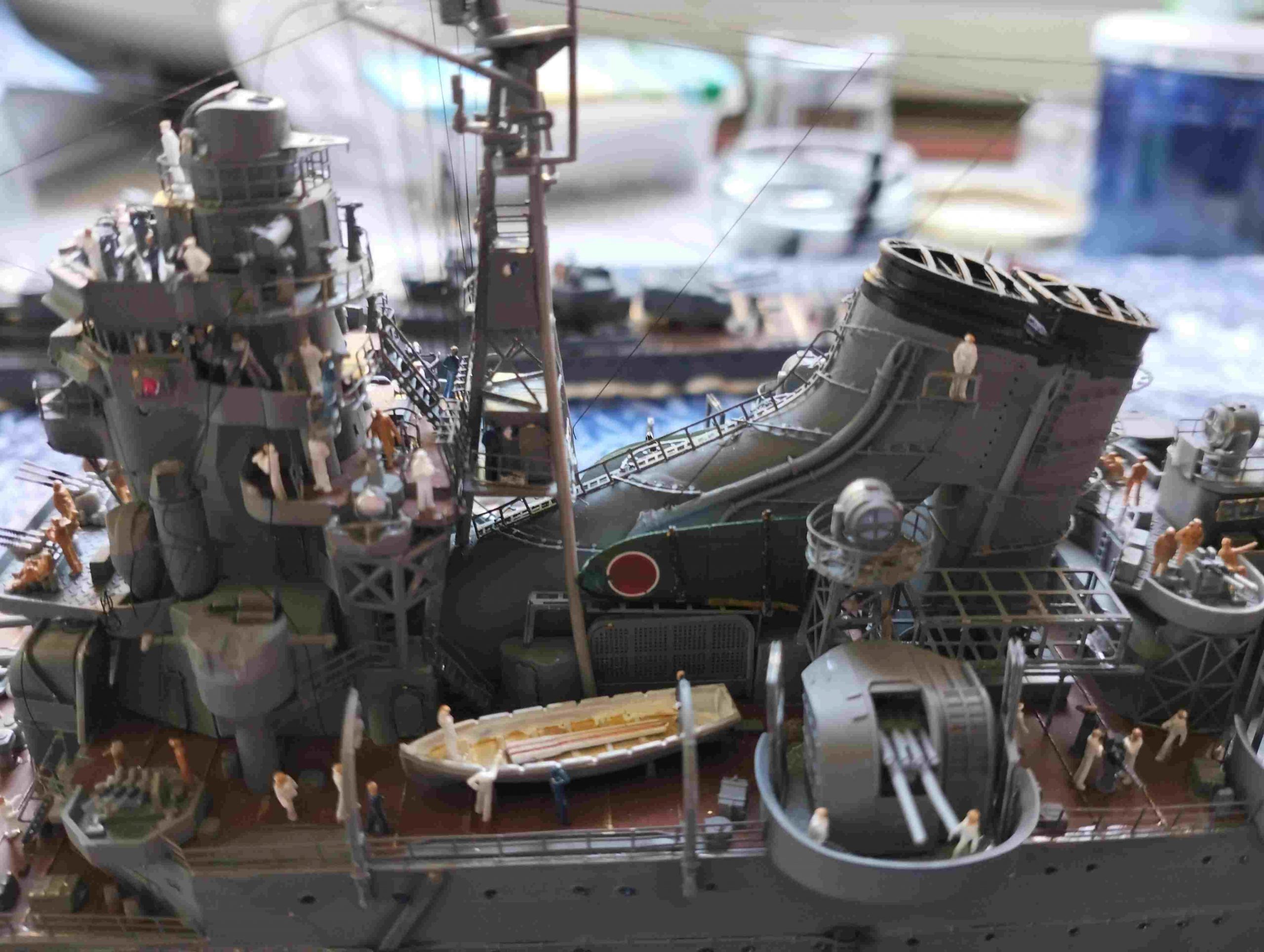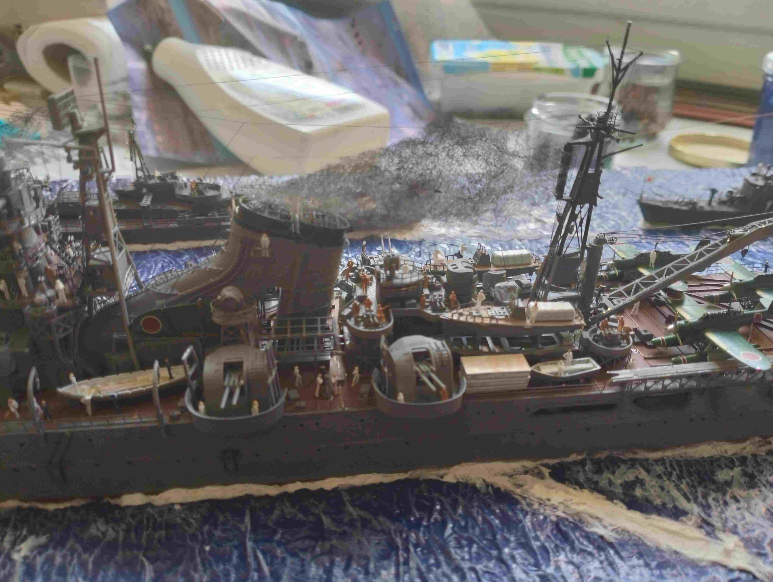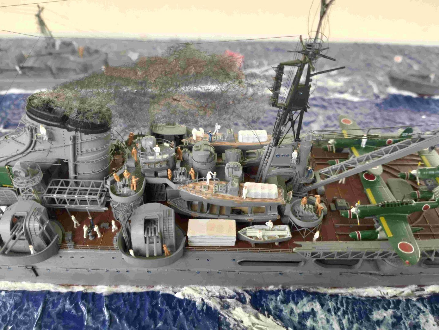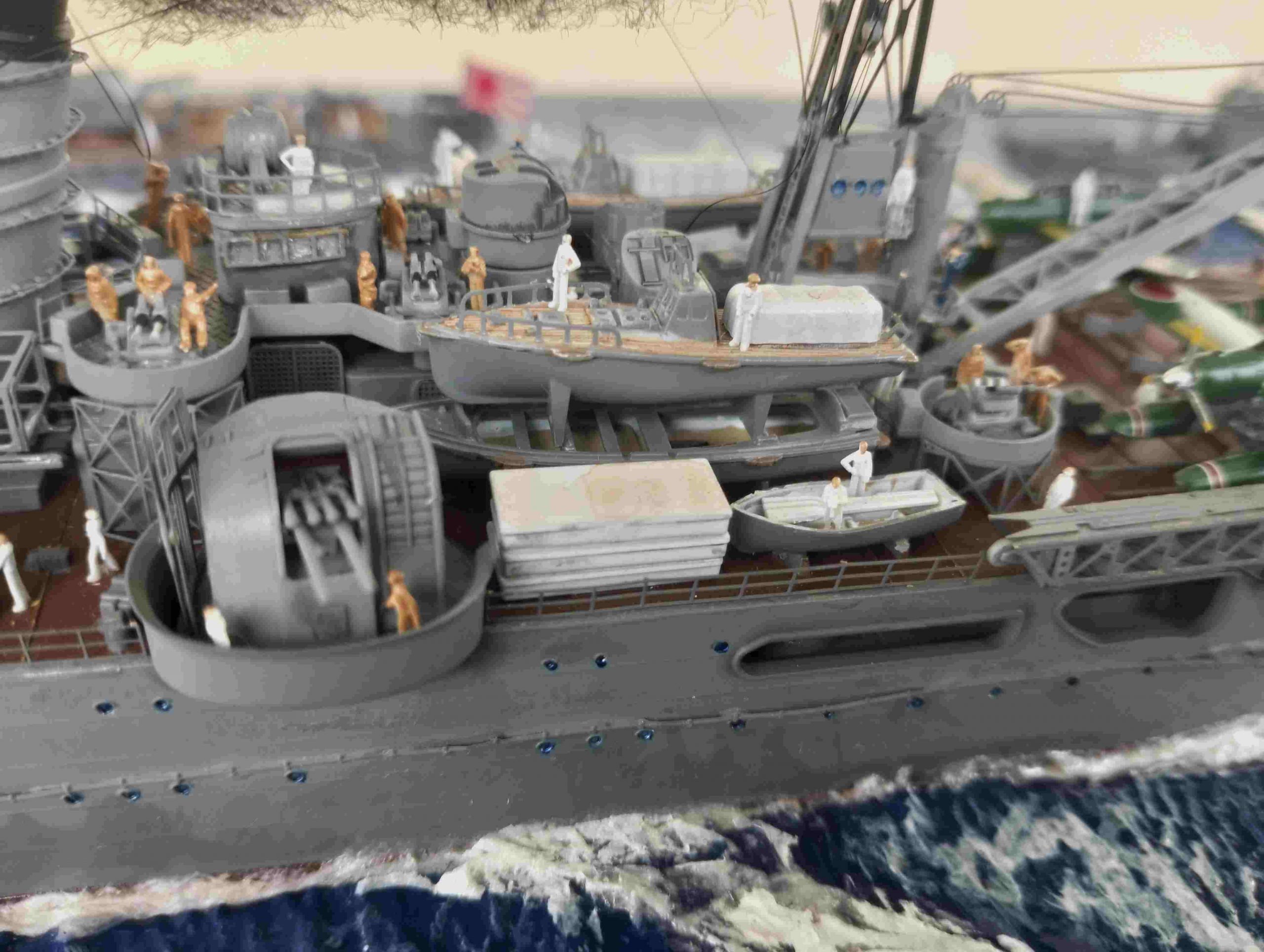 Ouverture de la boîte, passage en revue de tout ce qu’il y a dedans. Vraiment superbe ! Allez, on démarre un nouveau chantier. Dans la boîte, j’avais également le kit de photodec dédié de chez EDUARD (53074). Un montage sans grande difficulté, tellement le moulage est précis (pas une goutte de mastic utilisée), à noter que TAMIYA fourni en plus des petites vis et un tournevis pour fixer les couples sur la coque. La peinture reste des plus classiques. Pour le pont en « lineum deck », j’ai choisi les peintures TAMIYA. Le kit est plein de détails, comme un tas de ce qui ressemble à des matelas blancs, qui sont, en fin de compte, des cibles qu’ils mettaient à l’eau pour les exercices de tir. Comme vous pouvez le voir sur les photos, cet IJN TONE va s’inclure dans un nouveau diorama (mais où il met tout cela ?), dont je vous parlerai très prochainement ………. A SUIVRE ………….Opening the box, going through everything inside. Truly superb! Alright, we’re starting a new project. In the box, I also had the dedicated photo-etch kit from EDUARD (53074). An assembly without much difficulty, thanks to the precise molding (not a drop of putty used), and it should be noted that TAMIYA also provides small screws and a screwdriver to attach the bulkheads to the hull. The painting remains quite traditional. For the « lineum deck, » I chose TAMIYA paints. The kit is full of details, like a bunch of what look like white mattresses, which in the end are targets they used to put in the water for firing exercises. As you can see in the photos, this IJN TONE will be part of a new diorama (but where will it put all of this?), which I will talk about very soon ………. TO BE CONTINUED ………….