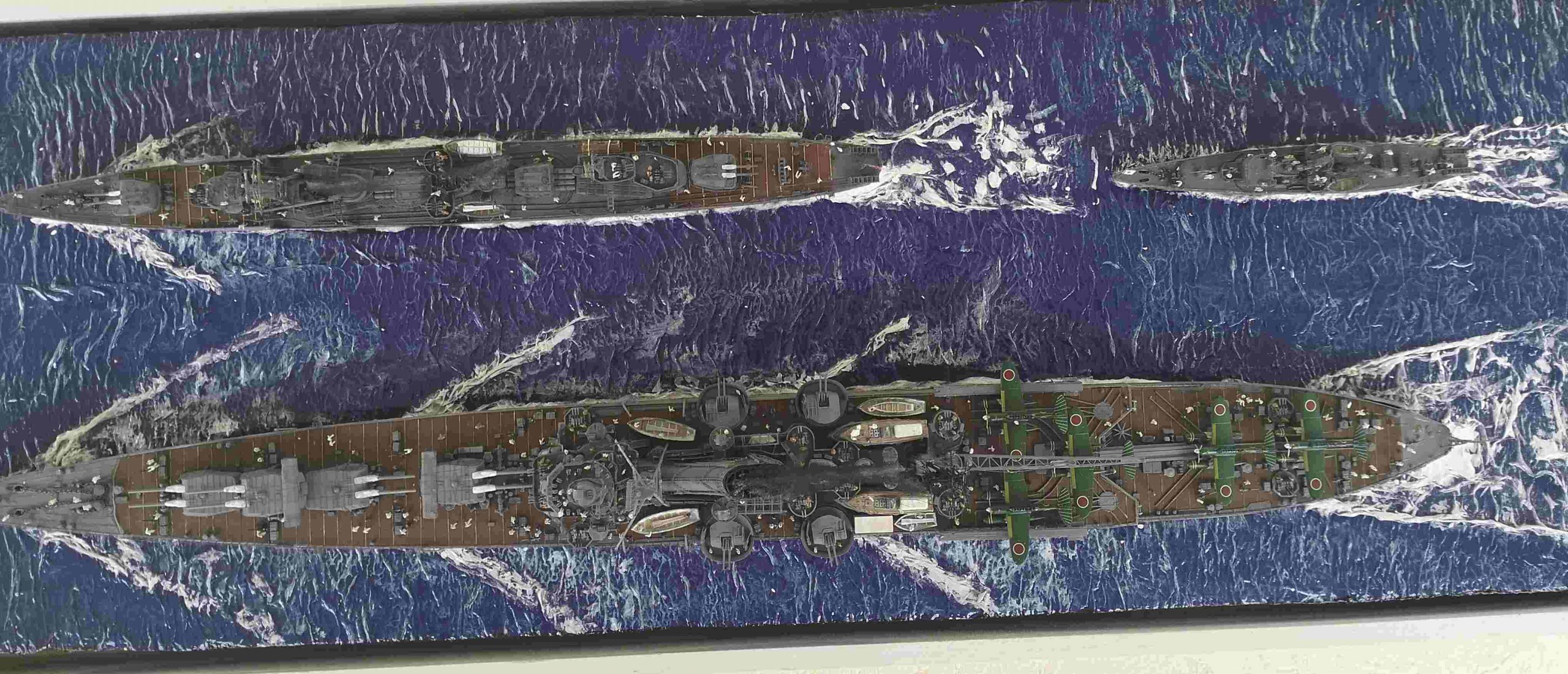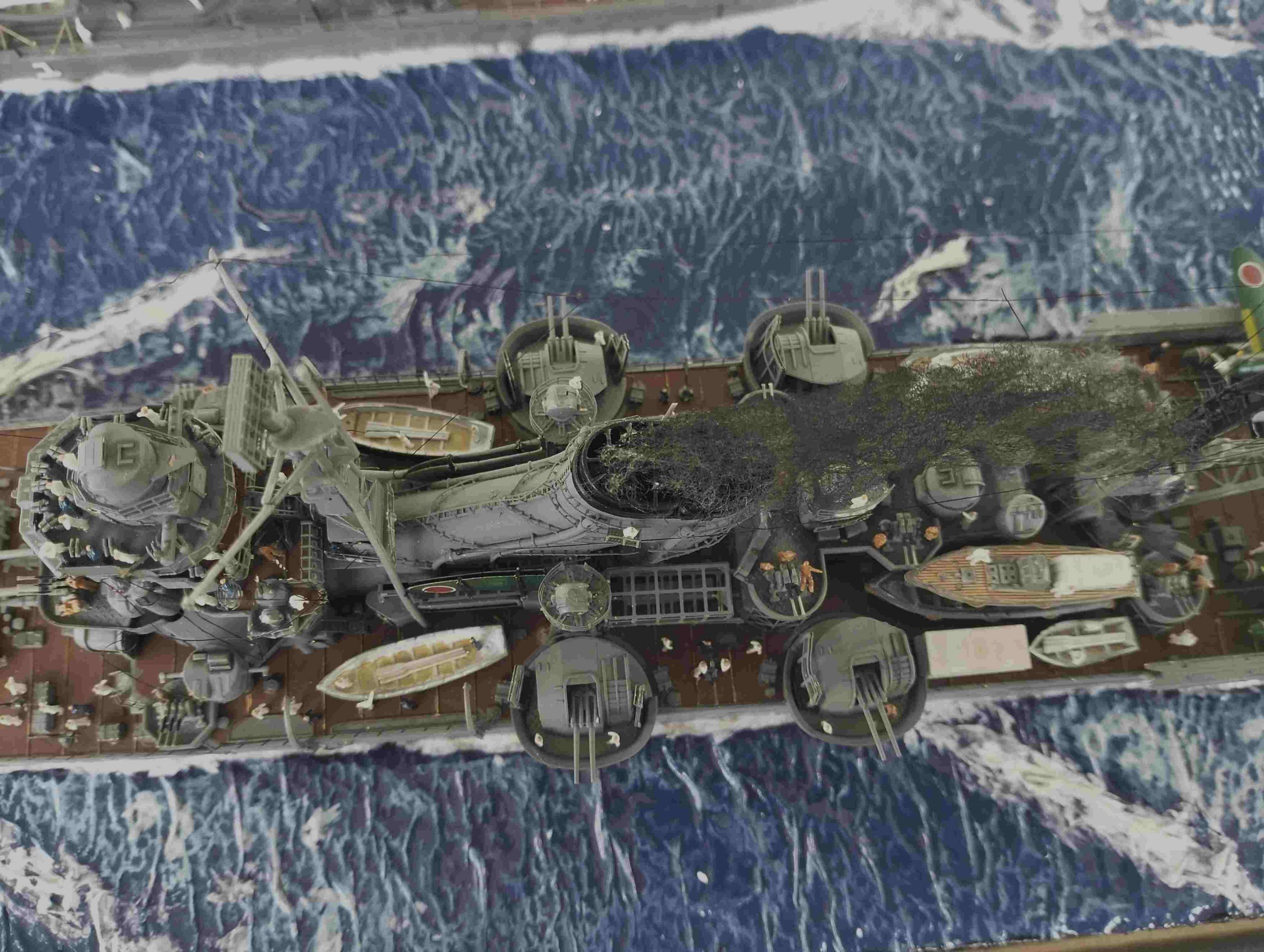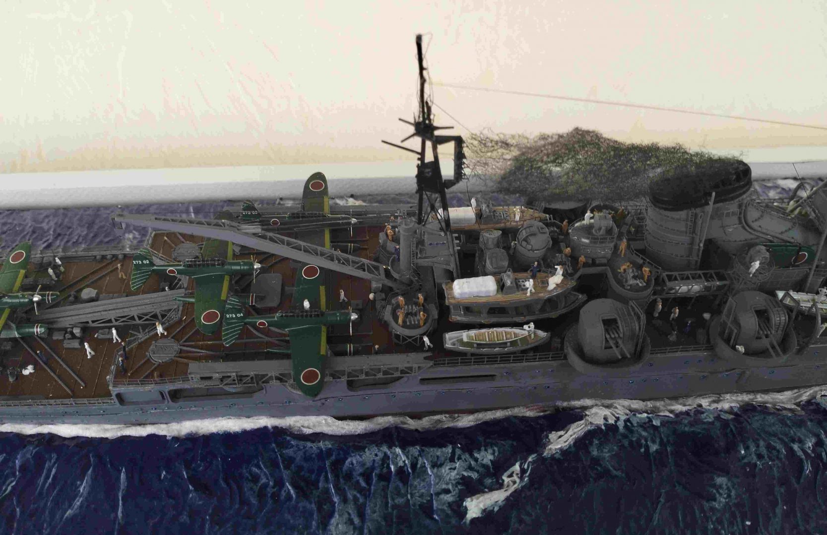 Le TONE est un croiseur lourd de 201,50 m ; il tire son nom de la rivière TONE située dans la région de Kanto au Japon. Il a un sister-ship, l’IJN CHIKUMA également disponible chez TAMIYA. Sa particularité, c’est la concentration de l’armement sur l’avant, pour laisser la place aux avions sur l’arrière. Mis en service en 1937, il fut coulé en 1945 lors du bombardement de l’arsenal de KURU (source wikipedia). The TONE is a heavy cruiser measuring 201.50 m; it is named after the Tone River located in the Kanto region of Japan. It has a sister ship, the IJN CHIKUMA, also available from TAMIYA. Its distinctive feature is the concentration of weaponry at the front, leaving space for aircraft at the rear. Commissioned in 1937, it was sunk in 1945 during the bombing of the KURU arsenal (source: Wikipedia).