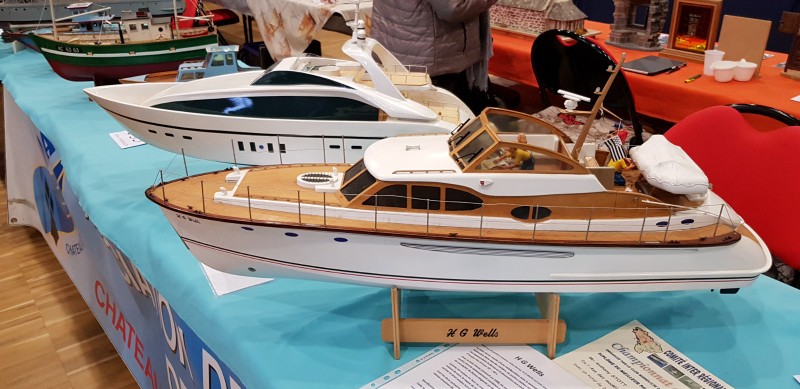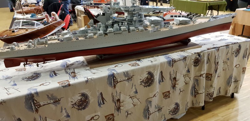 8 mètres de stand donc pour CAMPI. Préparation des tables et on pose les bateaux. Tout d’abord le Bismarck de notre ami Michel. Un peu bloqué dans sa coque de transport. Un petit coup de nerf de l’ami Michel et le voilà décoincé. Sauf que notre ami Camarétois ayant encore de la force, la mature s’écrase contre le plafond de la voiture. Dégâts! Beaucoup de dégâts quand même! (mats, antennes…)Je ne vous dis pas la tête de notre ami Michel. Décidément, cet an ci, c’est la fête des bateaux au club CAMPI!